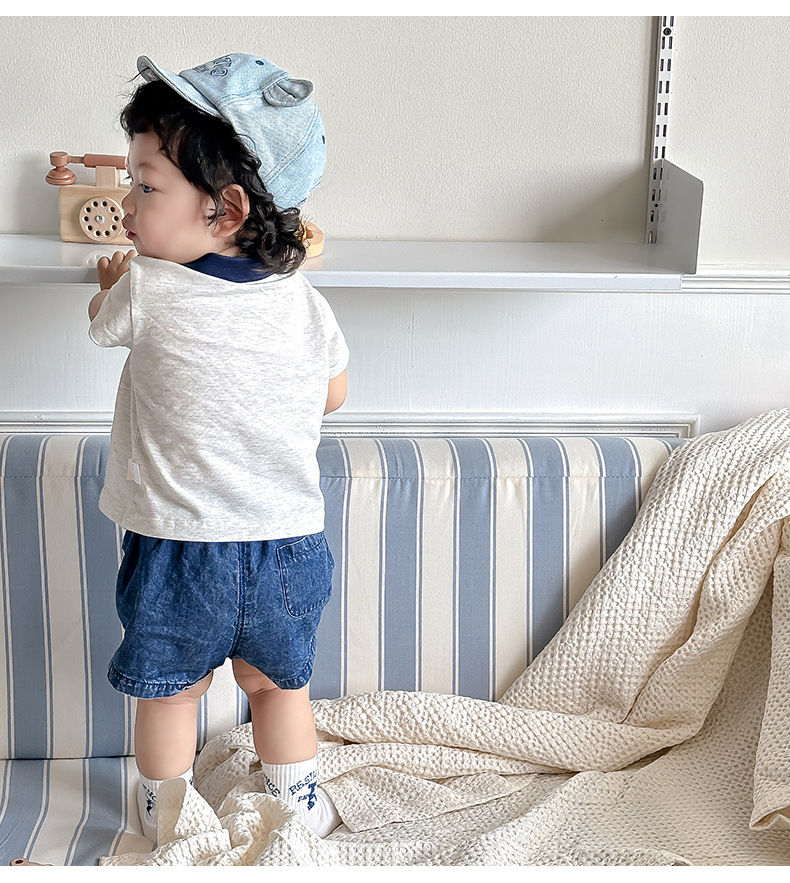 | Colores | Gris [Tops],Albaricoque 【Top】,Azul claro [pantalones cortos],Azul oscuro [pantalones cortos] |