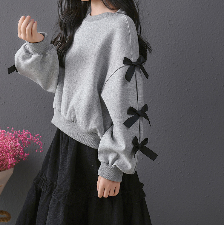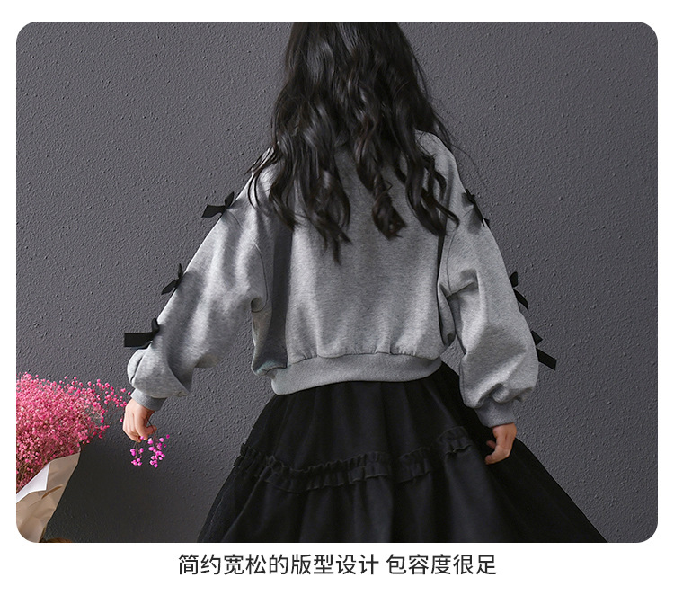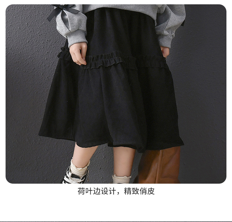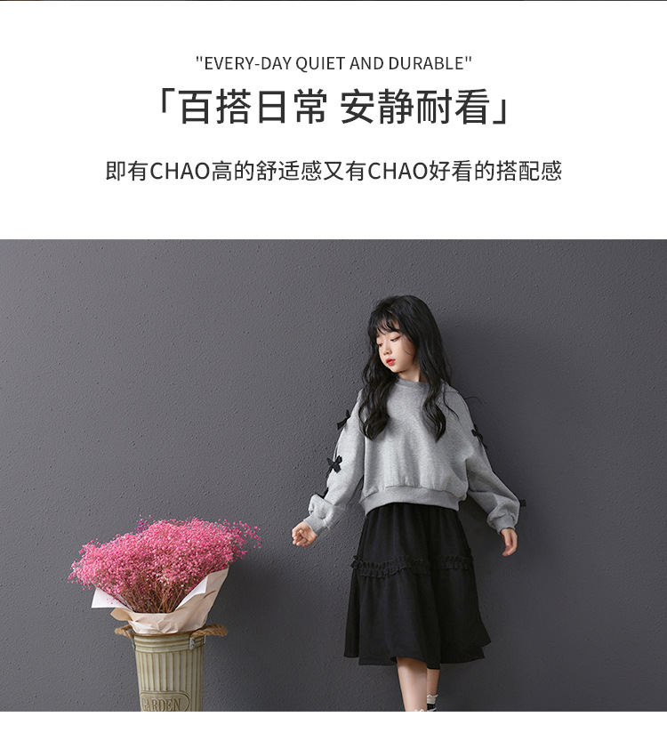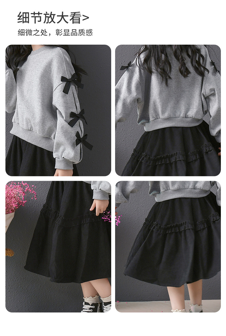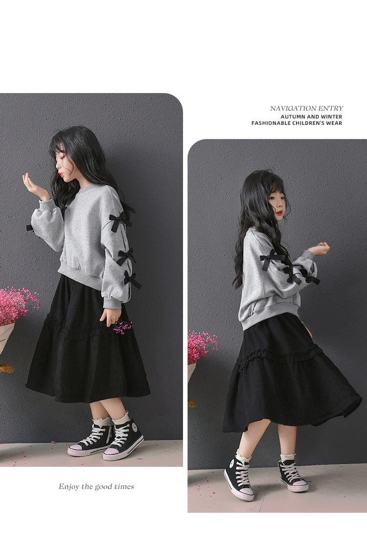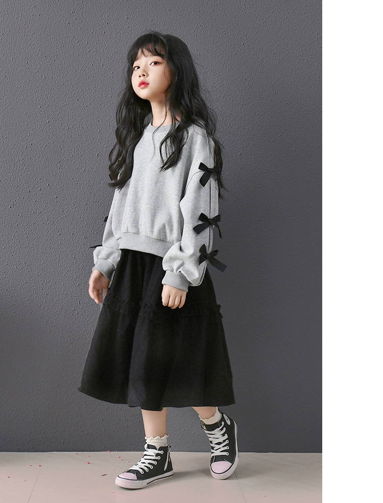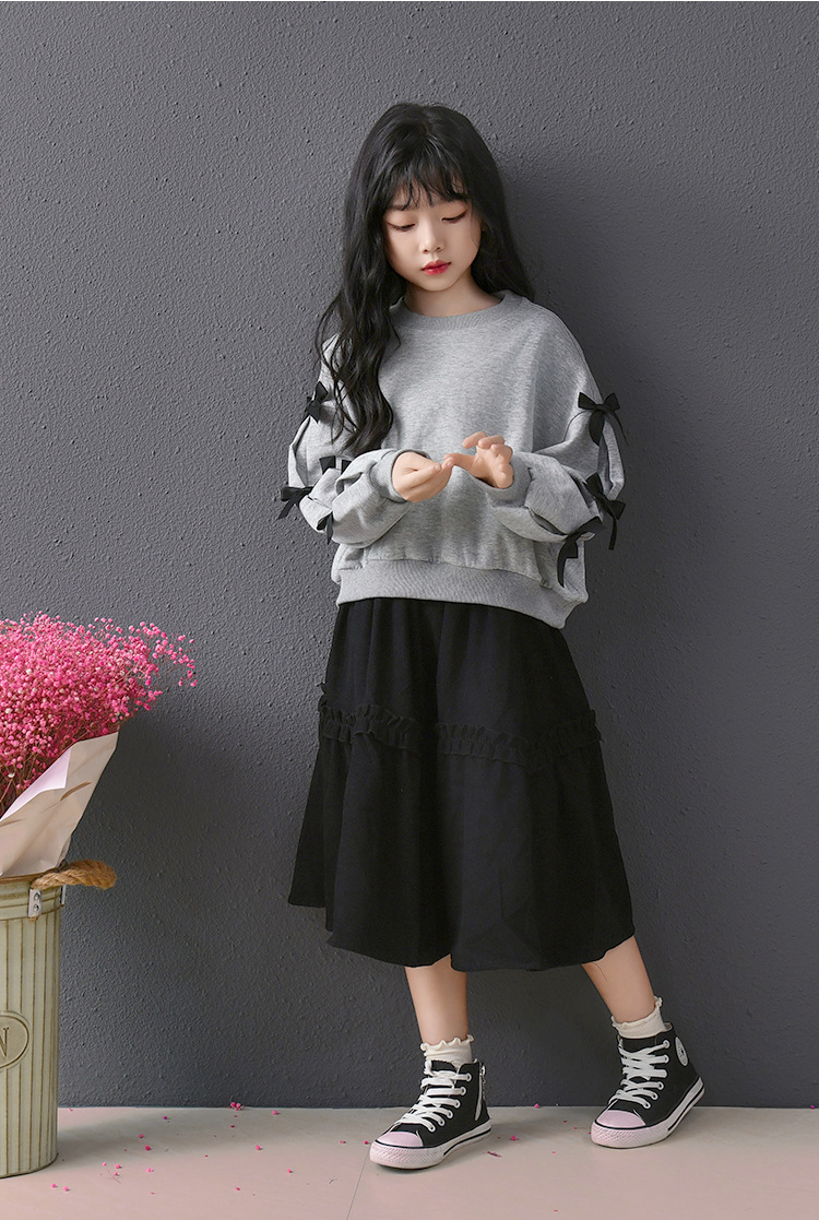 | Colores | Falda de pana negra,Sudadera gris con lazo |