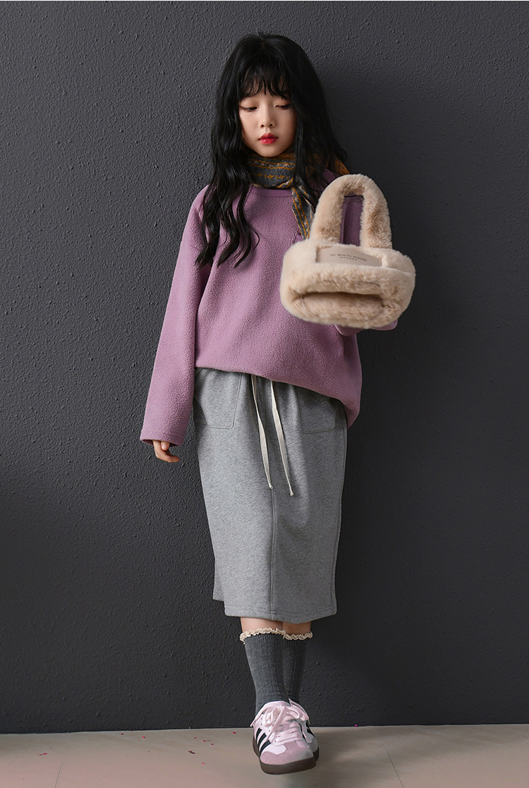 此款香芋紫摇粒绒卫衣限价79元,半身卫衣裙限价79元!