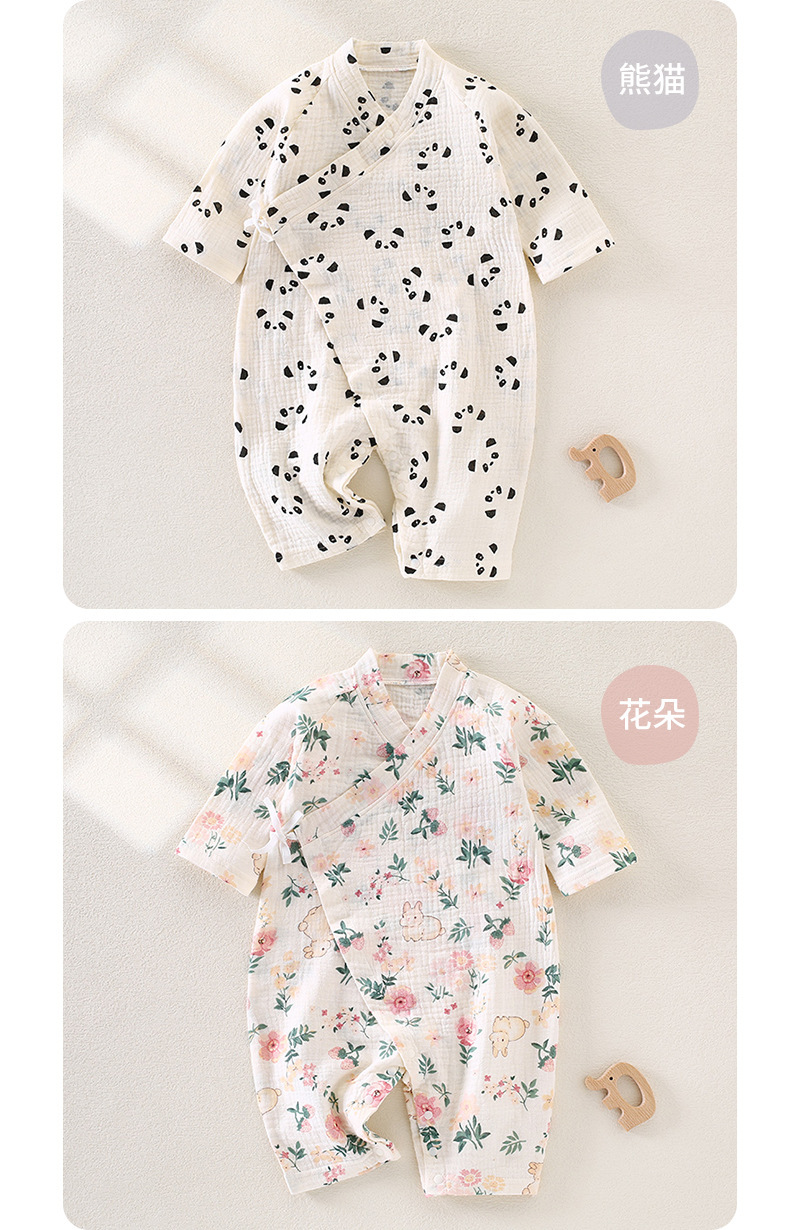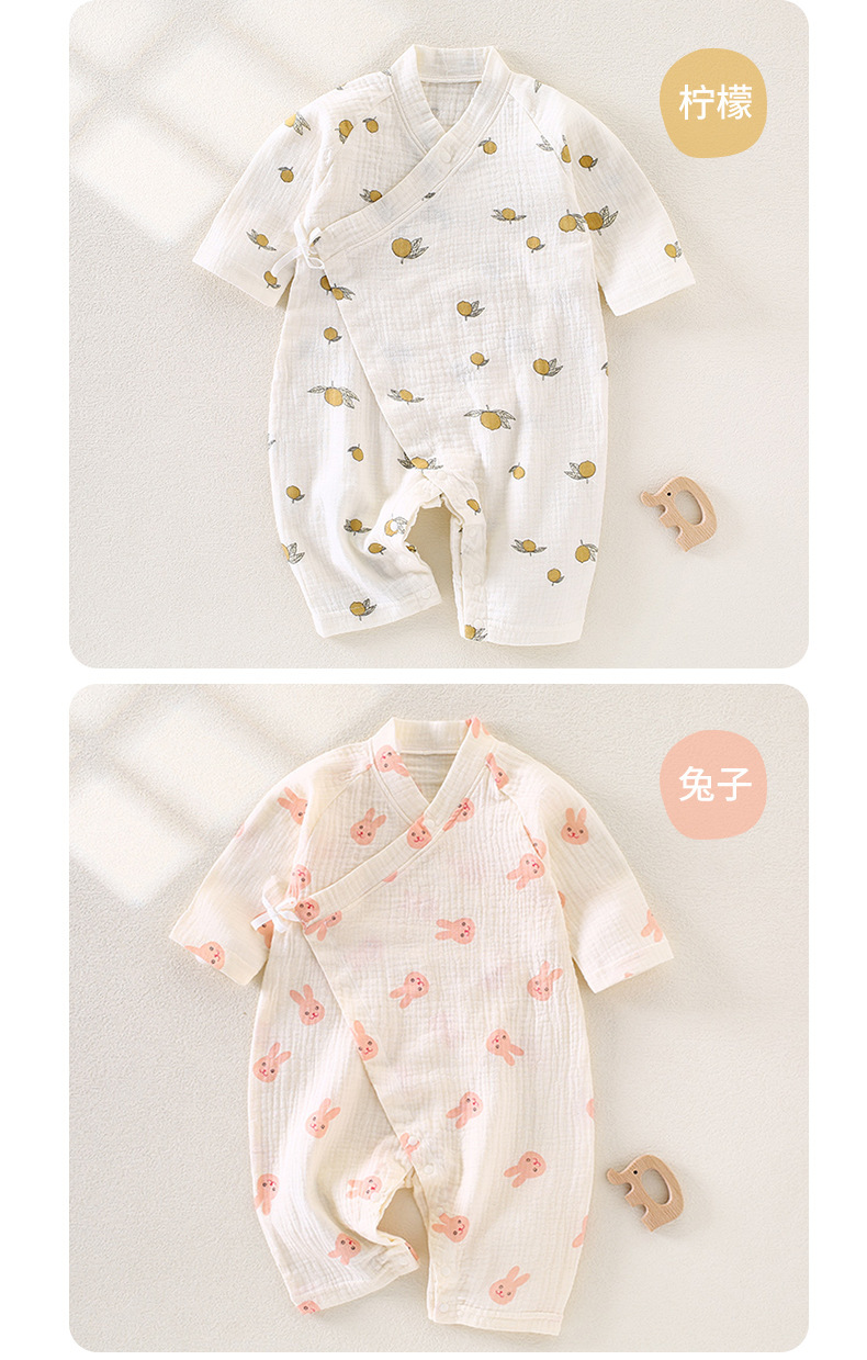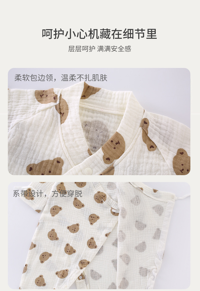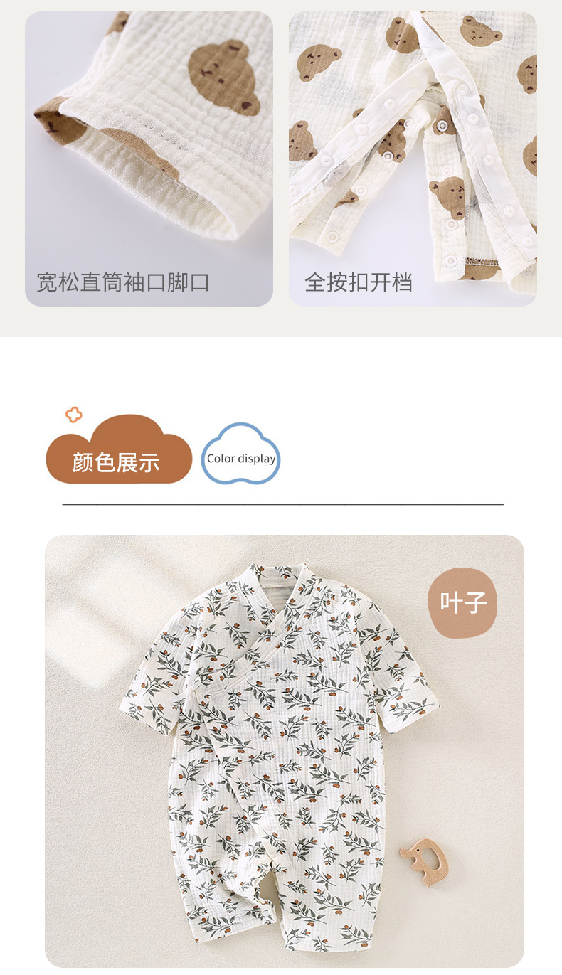 Mono de gasa de doble capa infantil de manga larga mameluco de verano Delgado pijamas de homewear sueltos para niños y niñas
