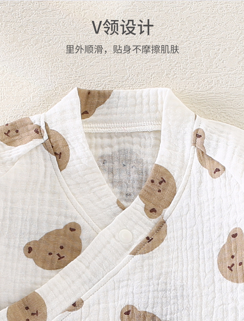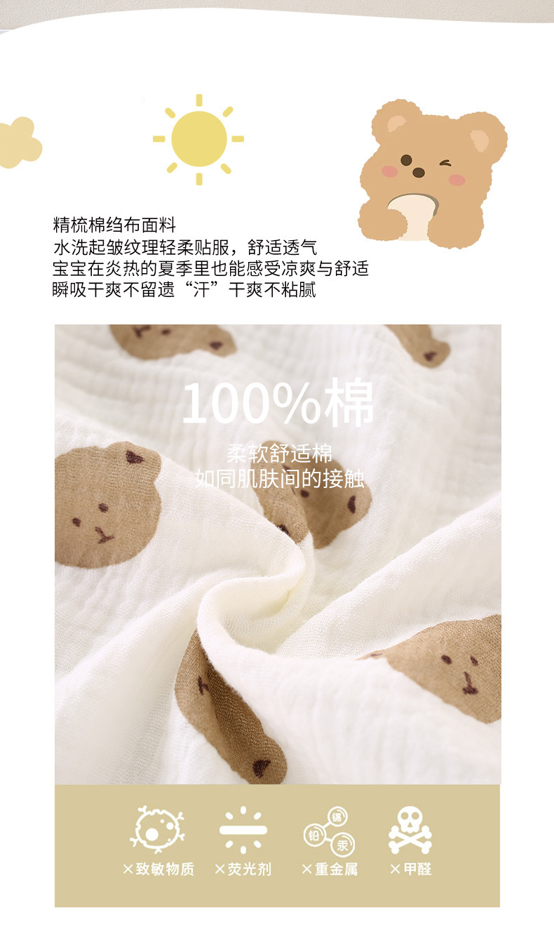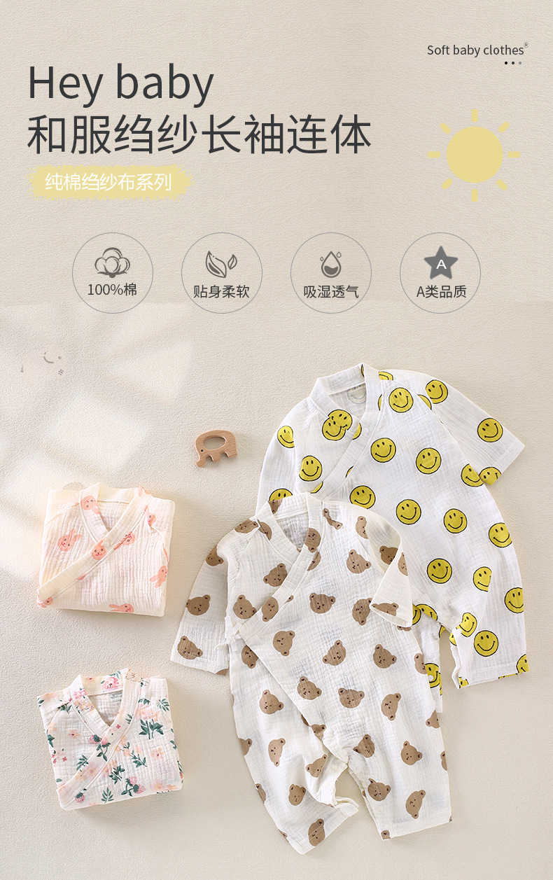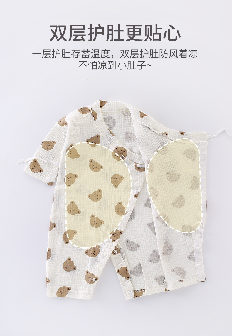 Mono de gasa de doble capa infantil de manga larga mameluco de verano Delgado pijamas de homewear sueltos para niños y niñas