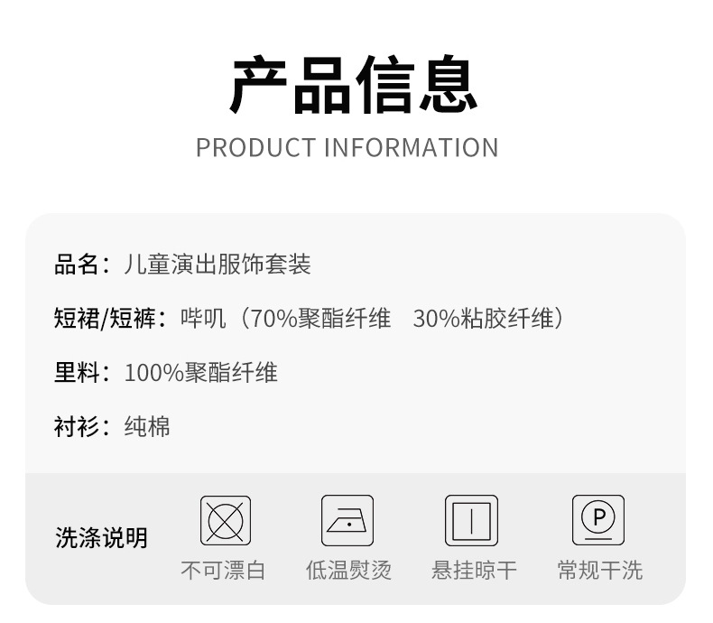 | Categoría de producto | Ropa de actuación infantil/ropa de baile |