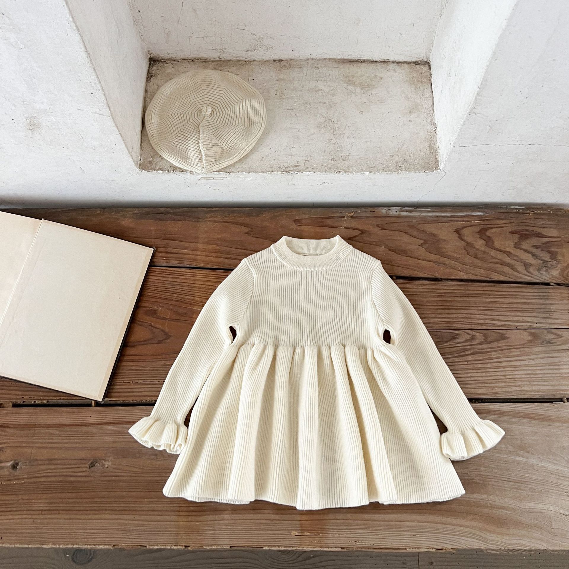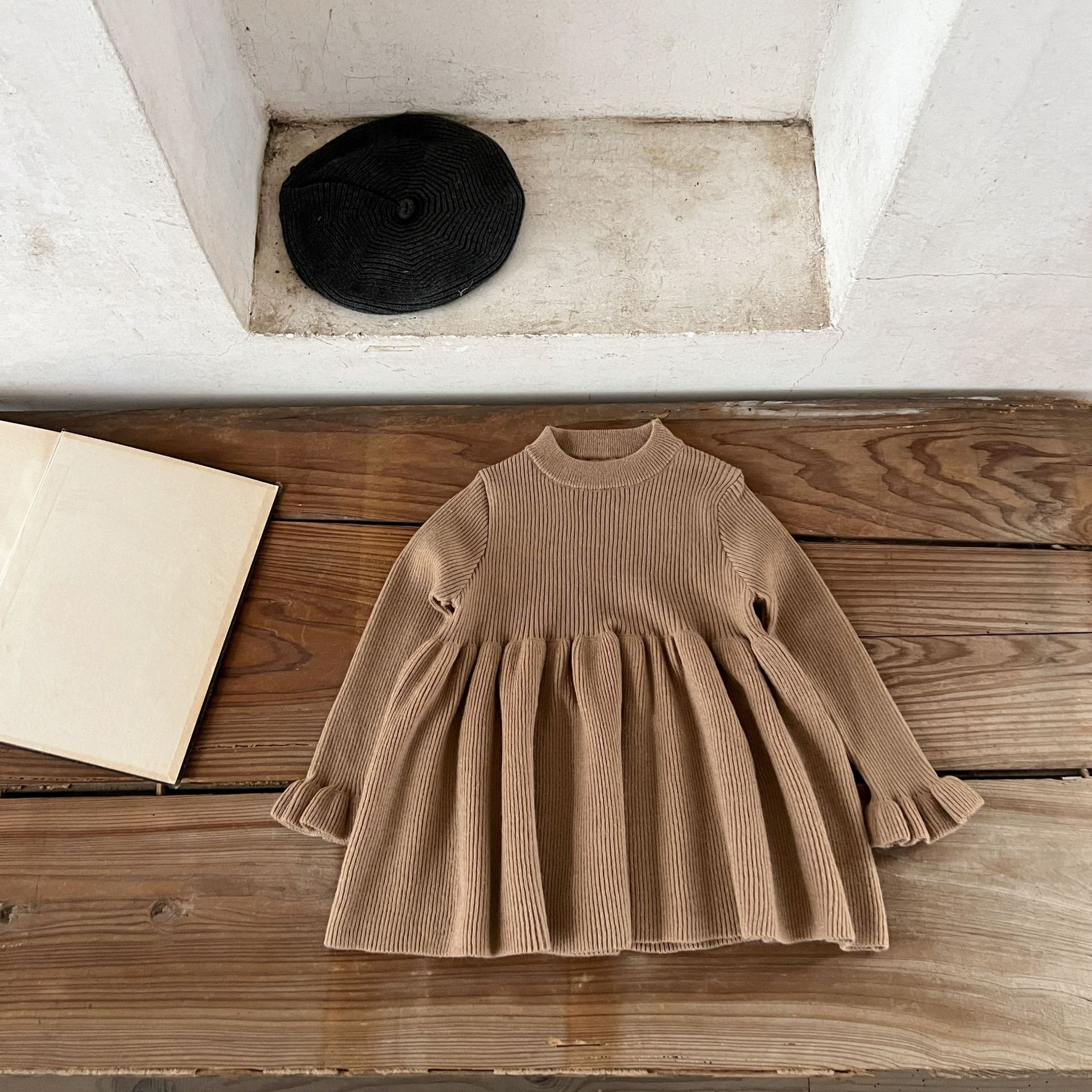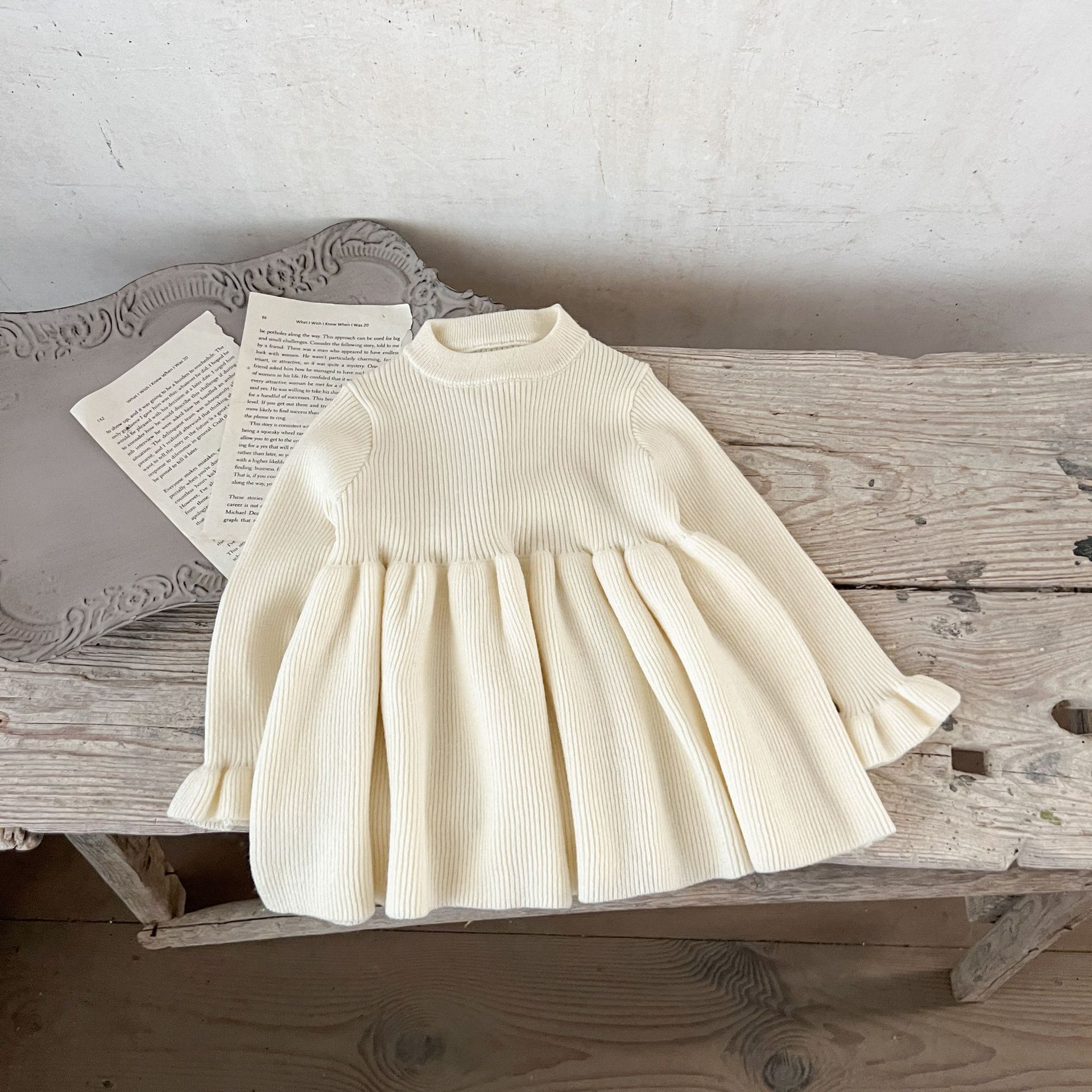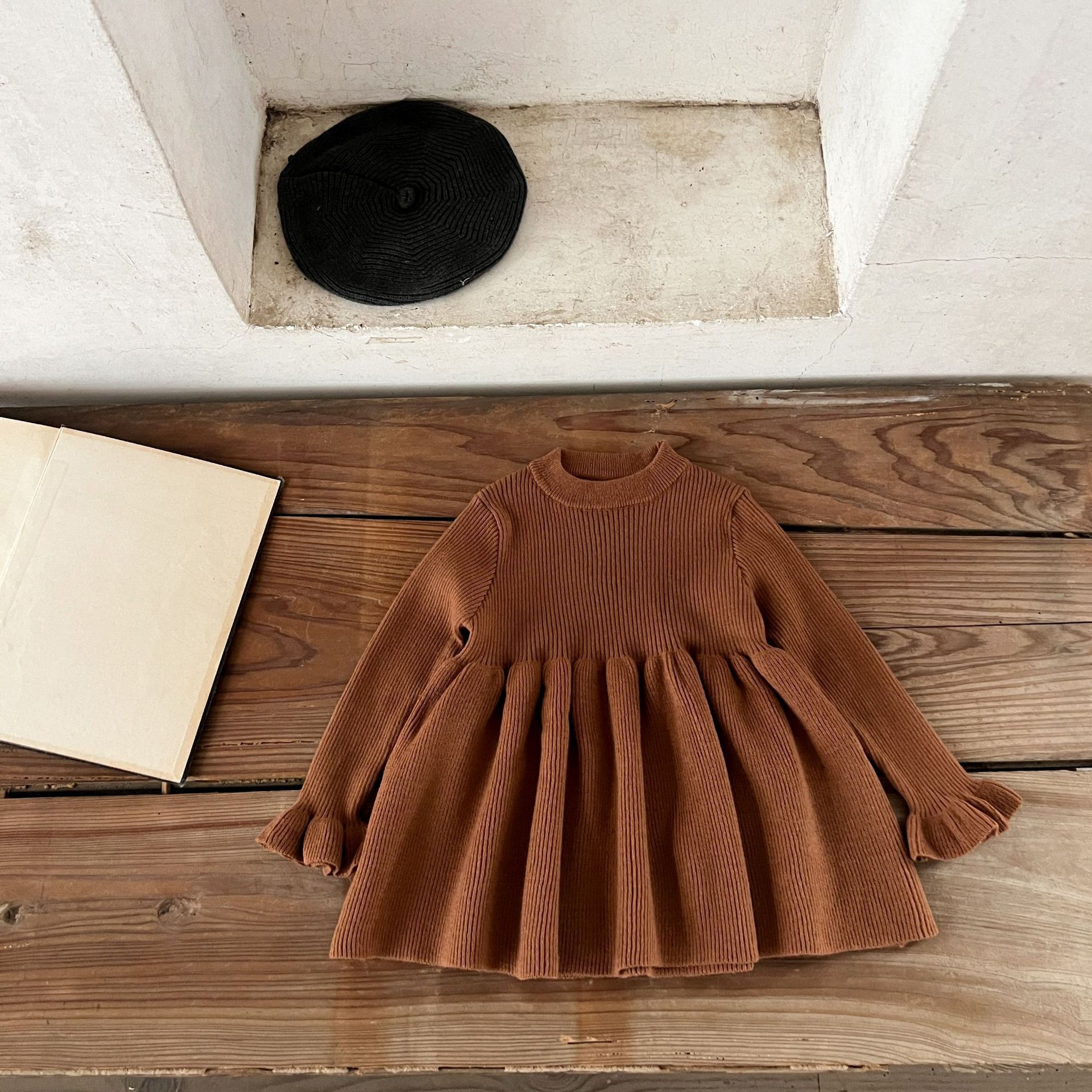 Ins vestido de lana con puños de algodón para niñas coreanas para bebés y niños pequeños vestido de suéter de primavera y otoño