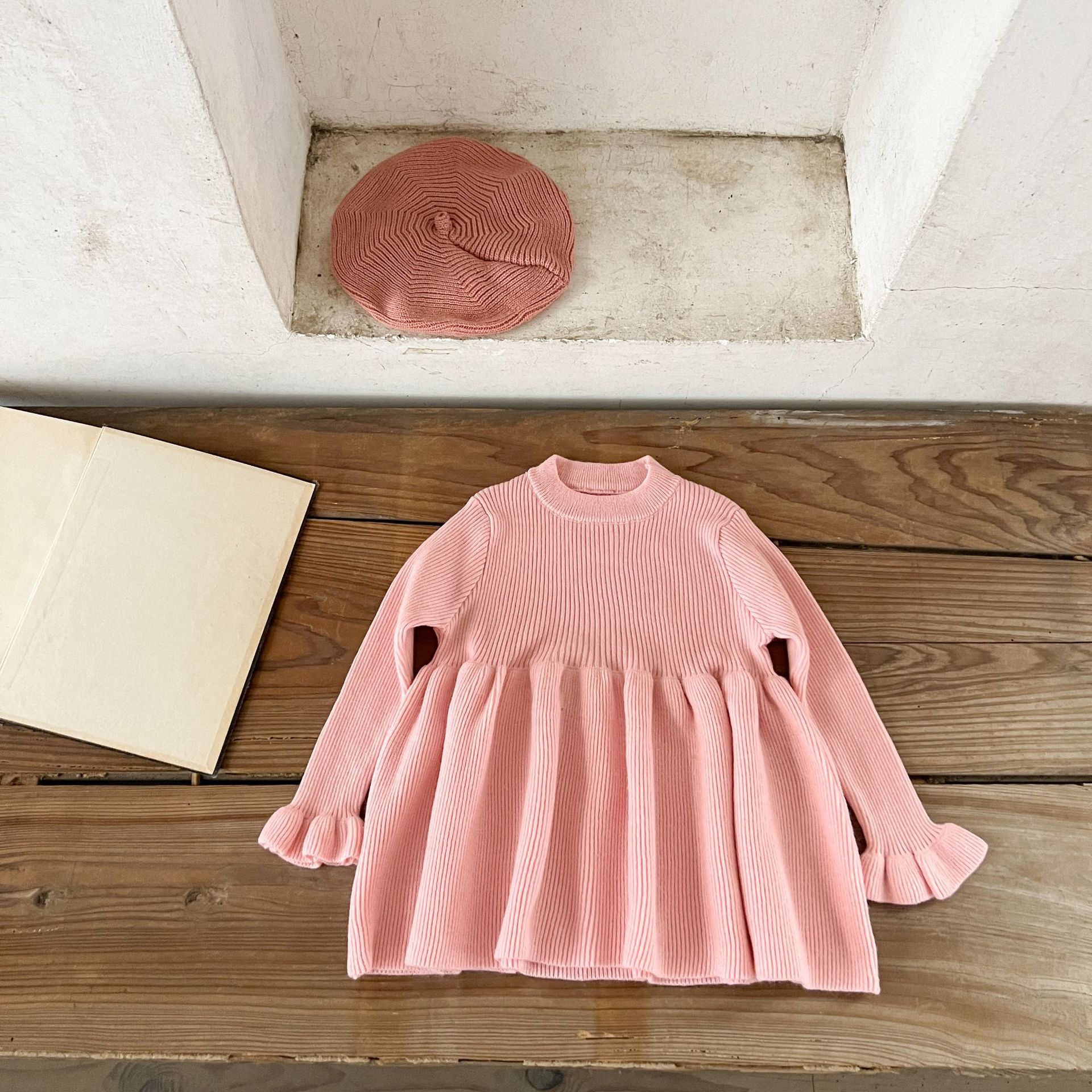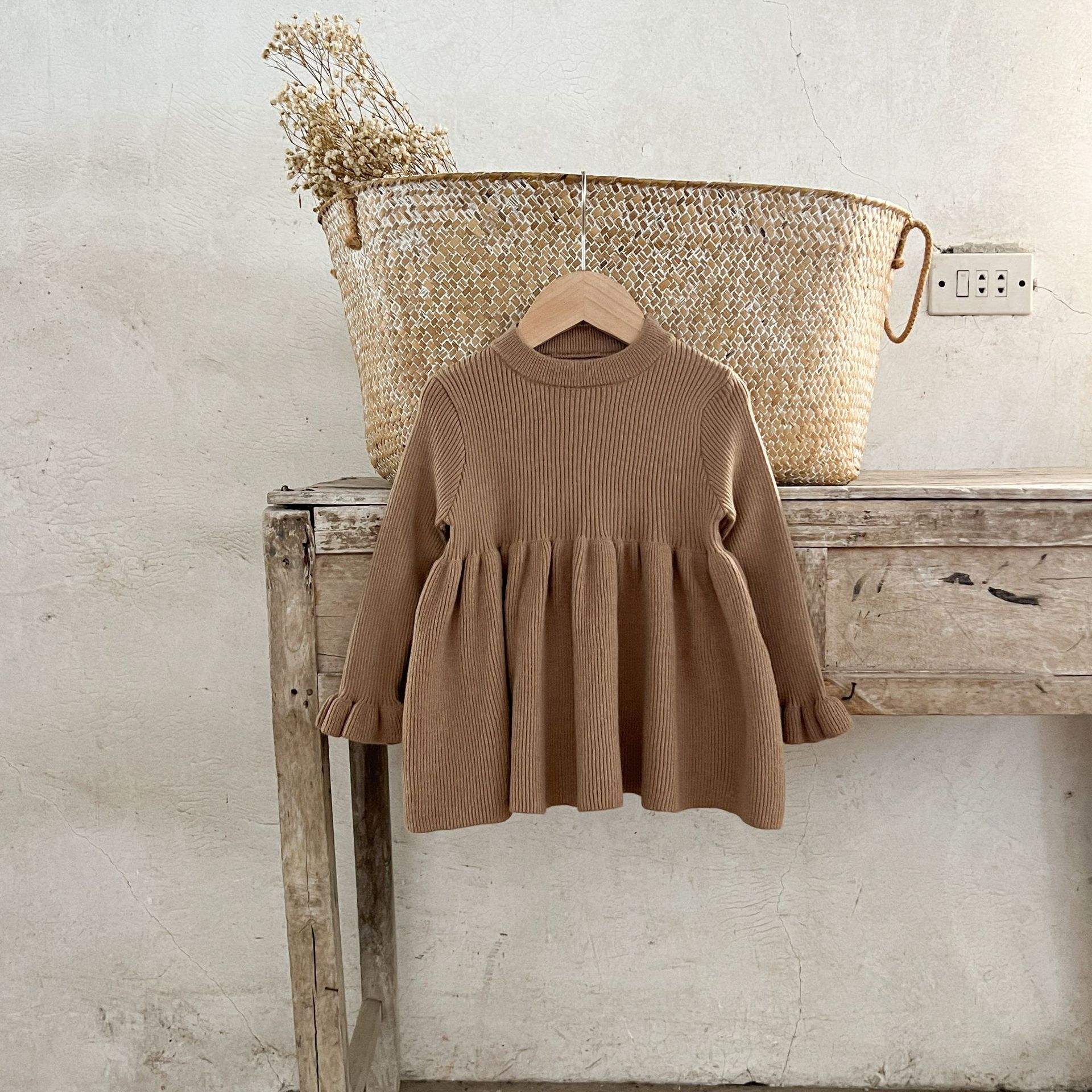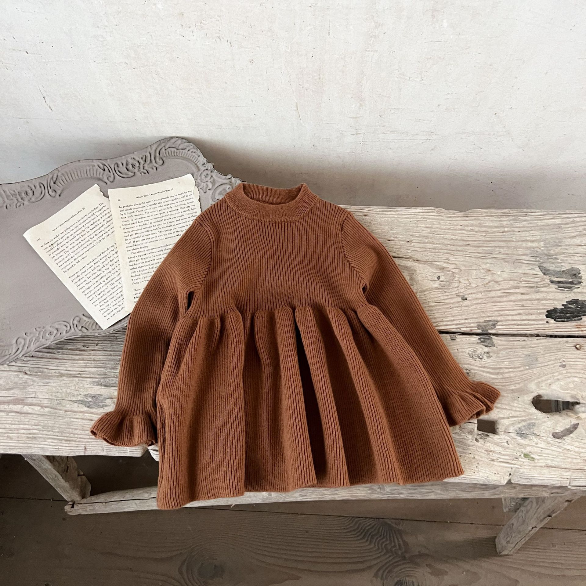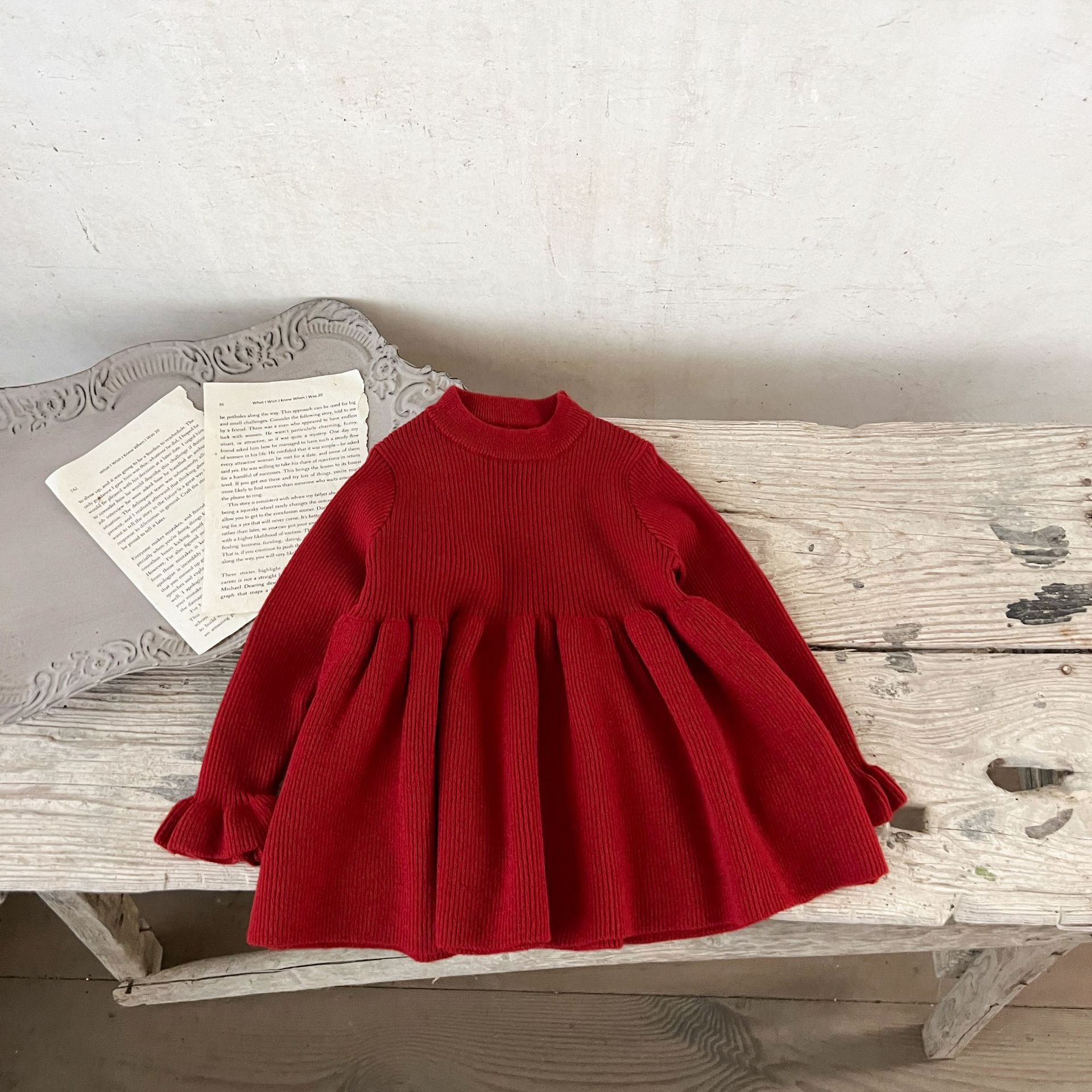 Ins vestido de lana con puños de algodón para niñas coreanas para bebés y niños pequeños vestido de suéter de primavera y otoño