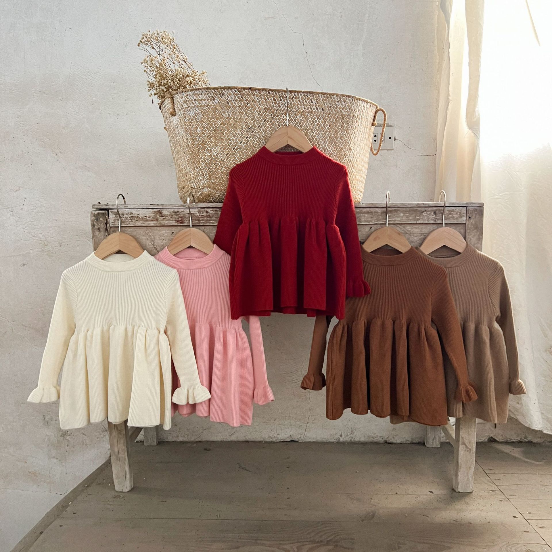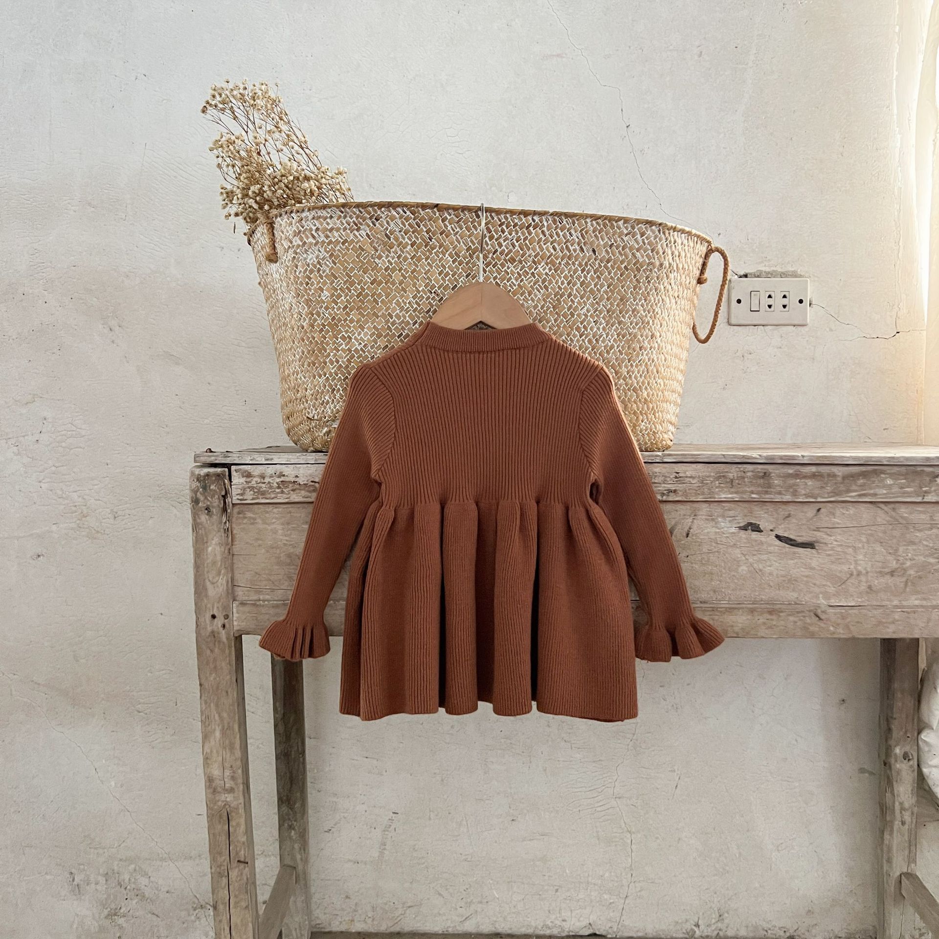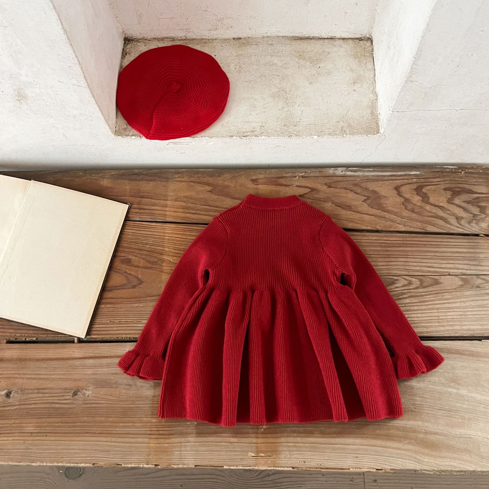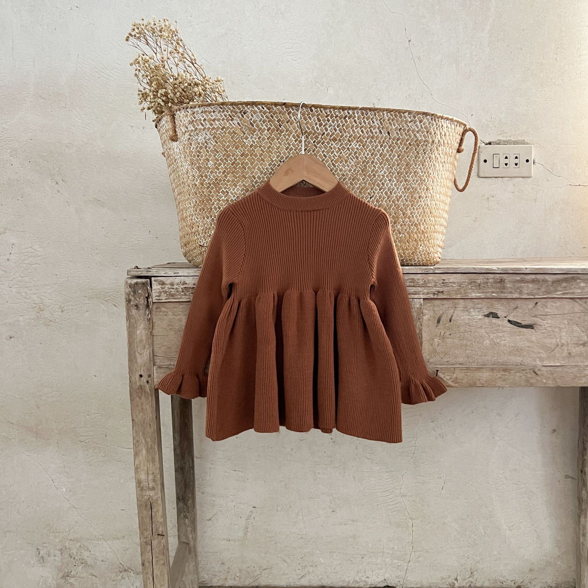 Ins vestido de lana con puños de algodón para niñas coreanas para bebés y niños pequeños vestido de suéter de primavera y otoño