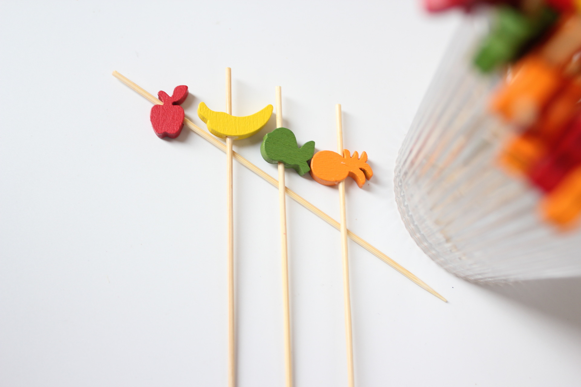 Venta al por mayor de fábrica colorido palo de fruta mixta palo de bambú lindo palo de hamburguesa cóctel decorativo signo sándwich signo de dibujos animados