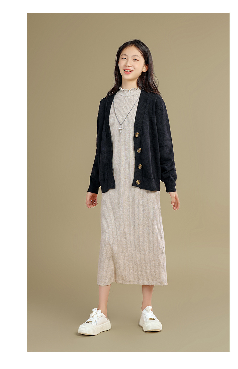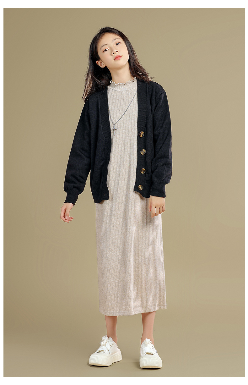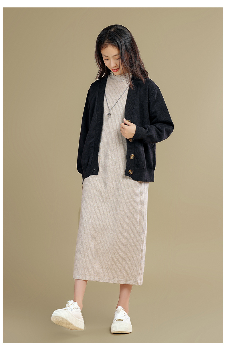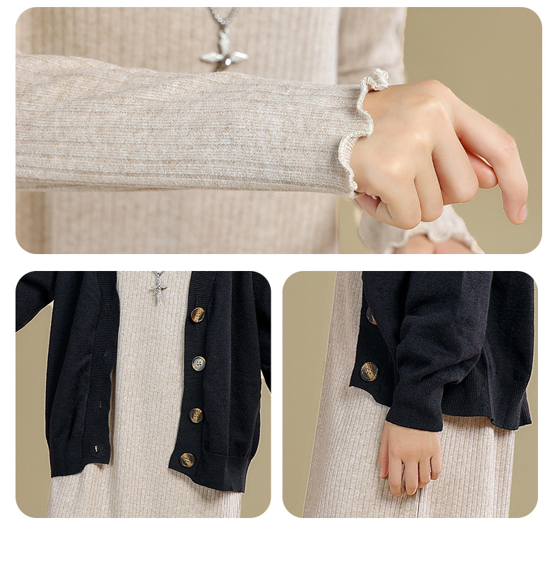 | Color | Vestido albaricoque,Suéter negro cardigan |