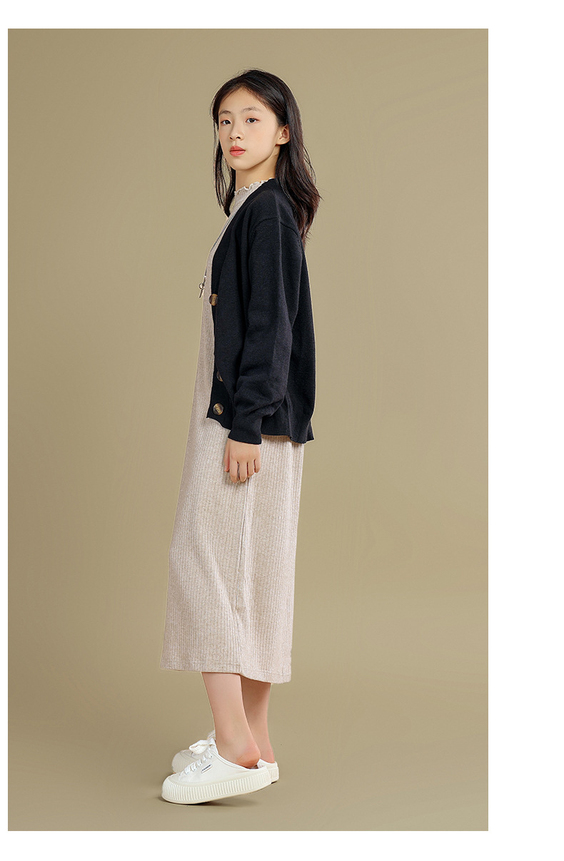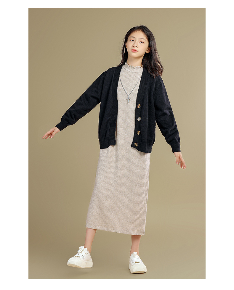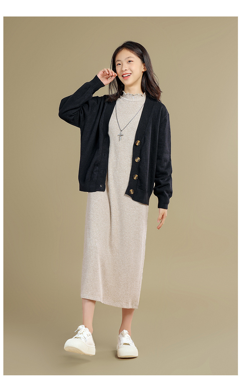 | Color | Vestido albaricoque,Suéter negro cardigan |