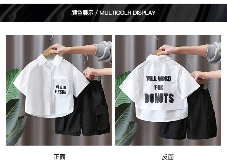 7935 traje de manga corta de verano para niños 2025 nuevo estilo para niños estilo occidental de moda verano delgado traje de dos piezas para niños bebé