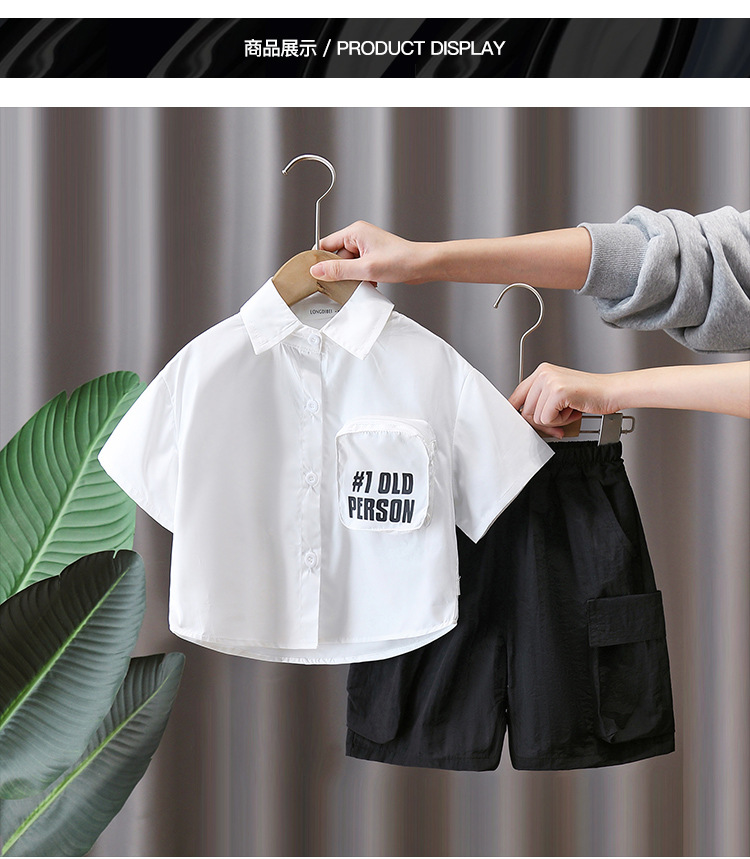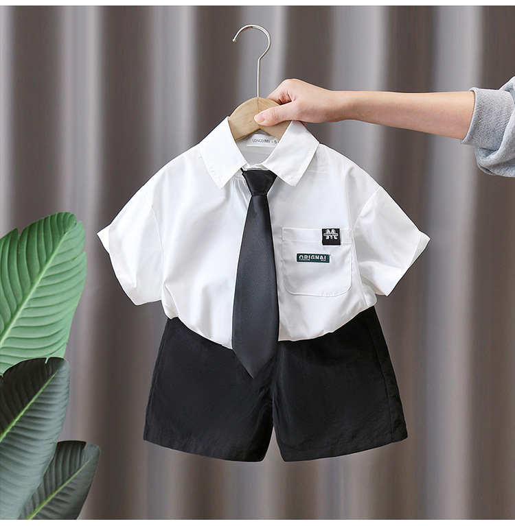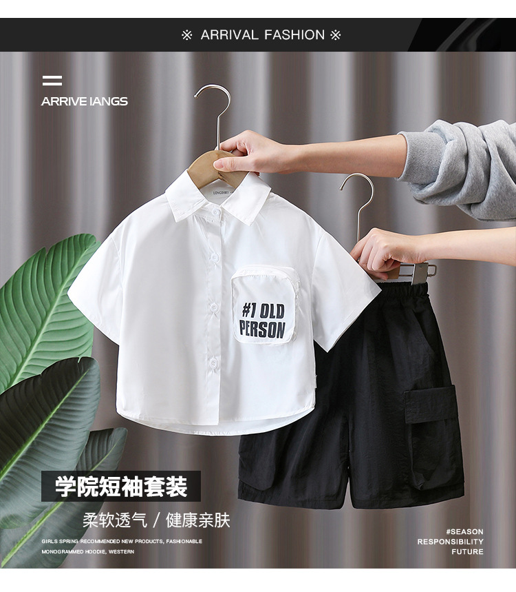 7158 Traje de camisa de verano para niños 2025 nueva ropa para niños coreanos de manga corta estilo universitario de dos piezas para niños