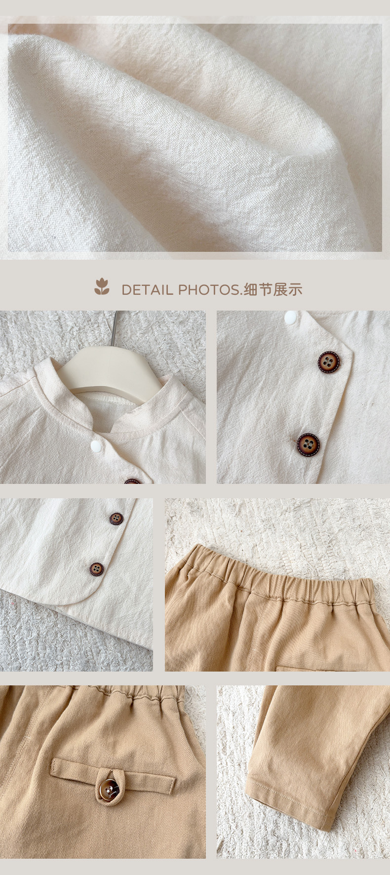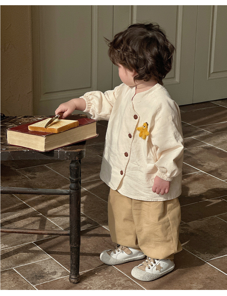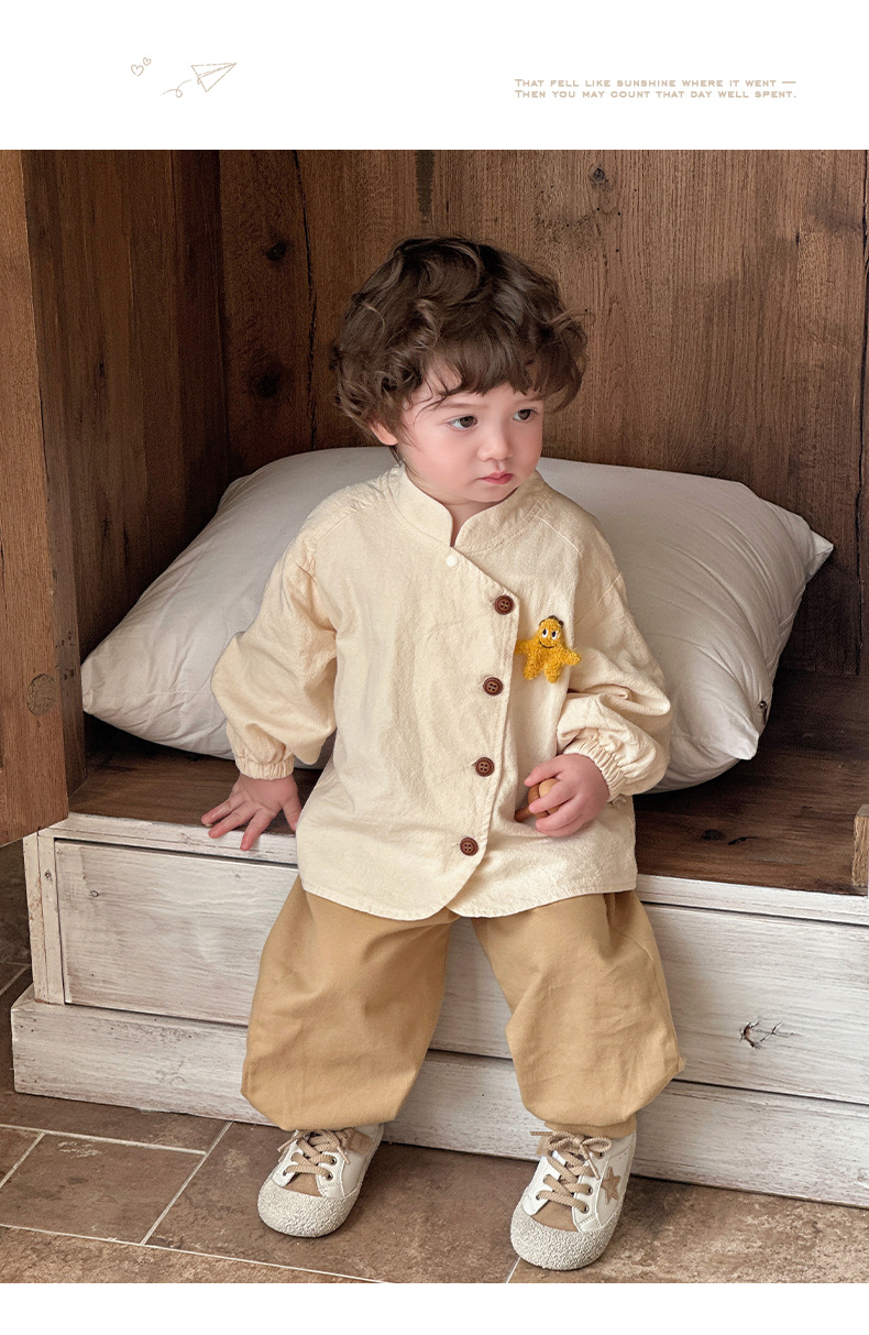 | Colores | Albaricoque [camisa],Caqui 【pantales】,Marrón [pantalones],Beige [pantalones] |