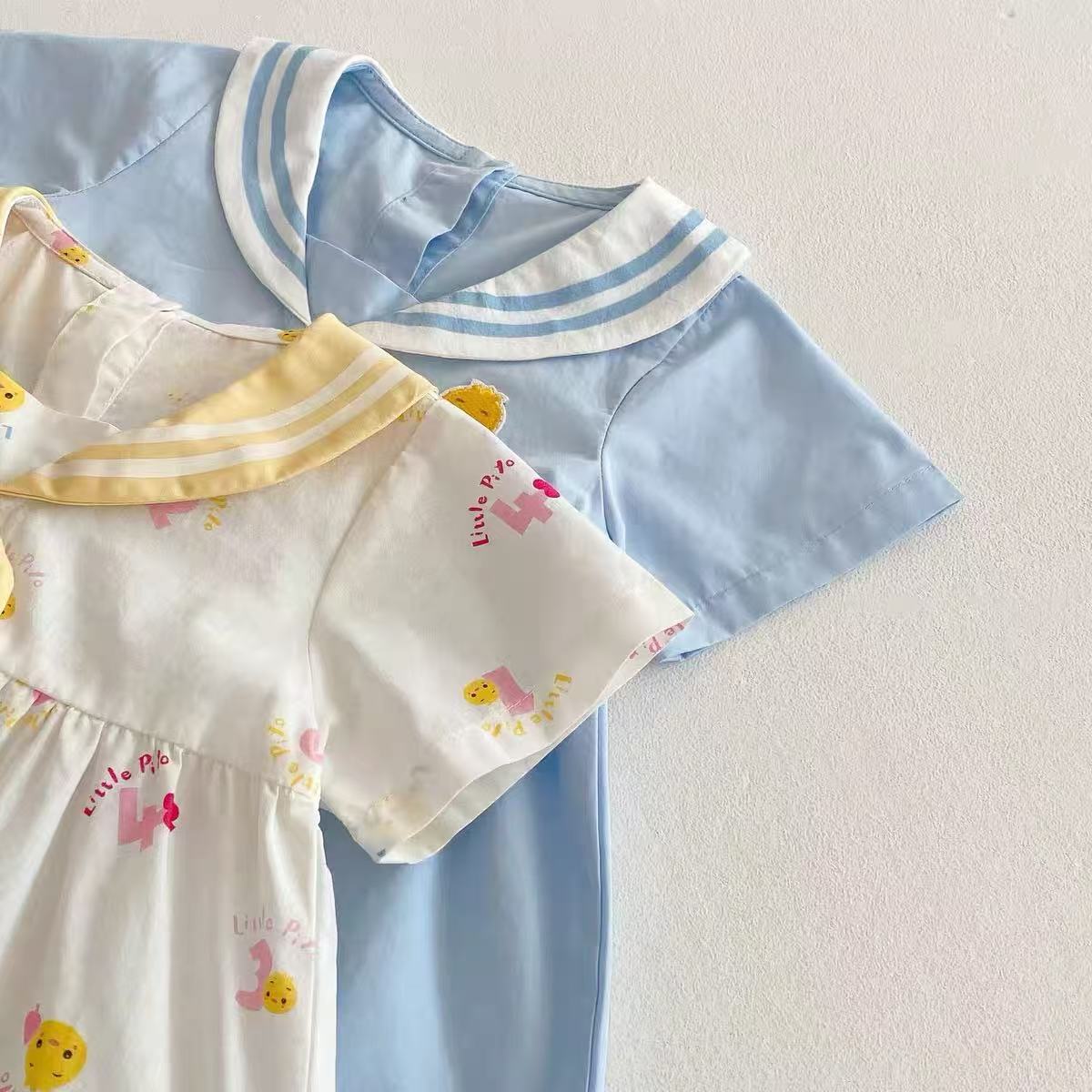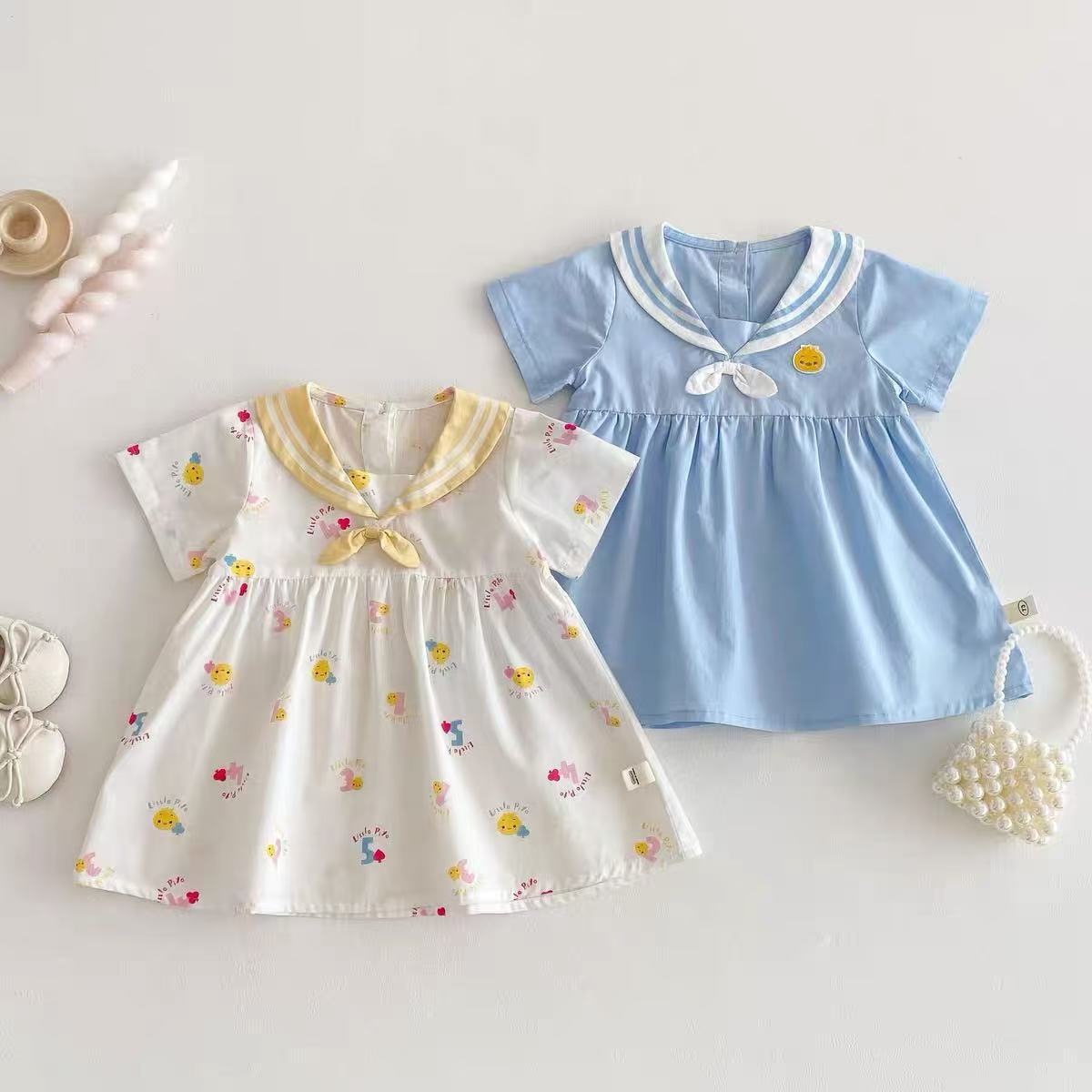 | Colores | Vestido azul cielo-gl patito azul marino,Vestido azul marino de patito gl blanco |