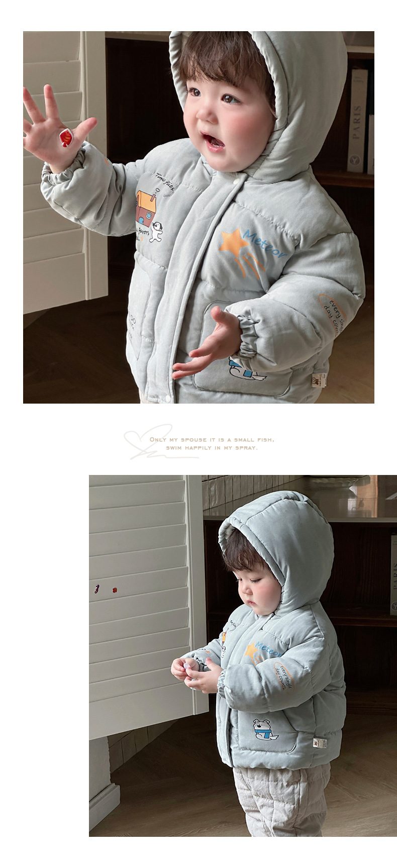 | Colores | Azul [abrigo],Albaricoque [abrigo],Gris [pantalones] |