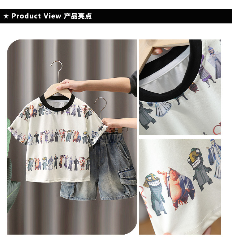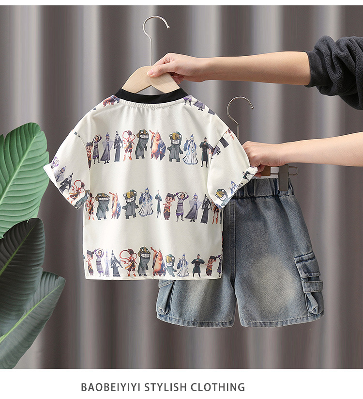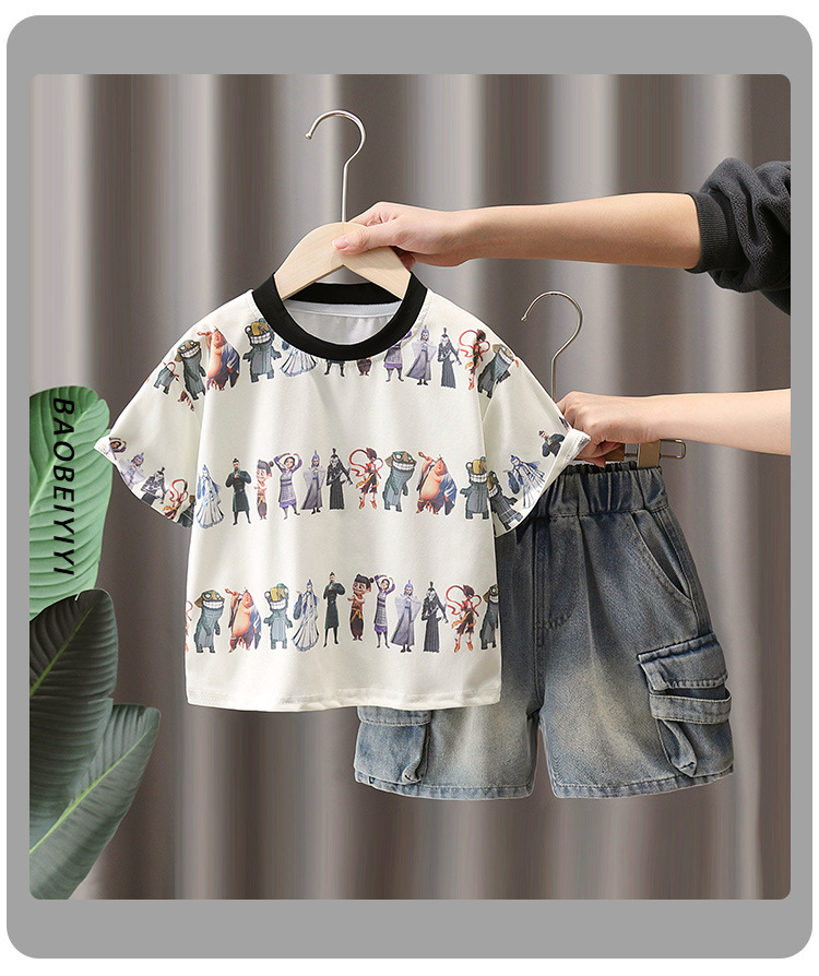 7272 Nezha ropa traje de verano para niños 2025 nuevo traje de dos piezas de moda de manga corta para niños
