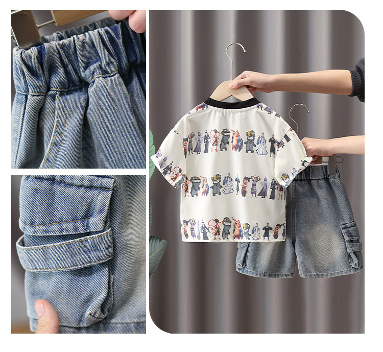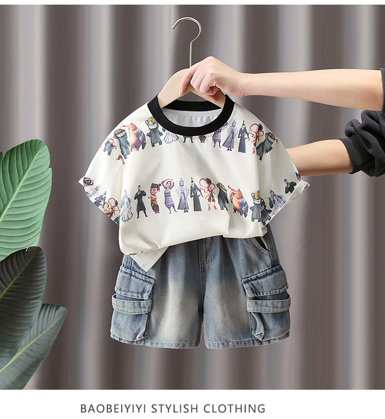 27 niños ropa de verano para niños nuevo traje para niños Camiseta de manga corta para niños pantalones intermedios conjunto de dos piezas al por mayor entrega de una pieza