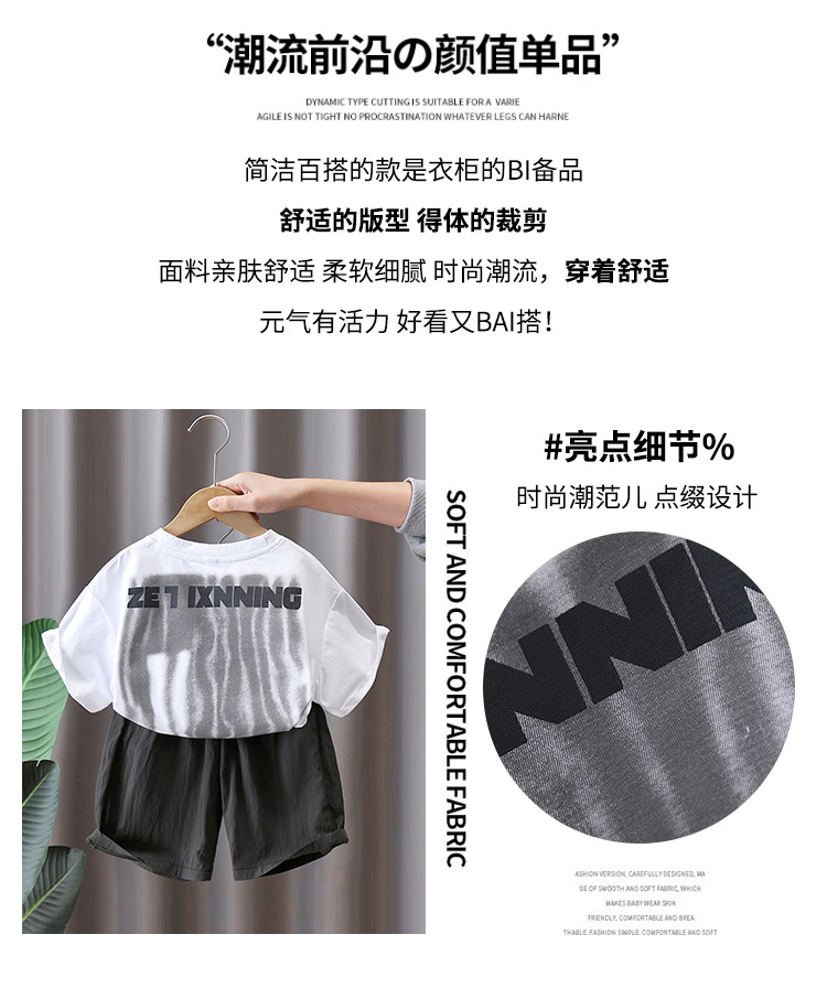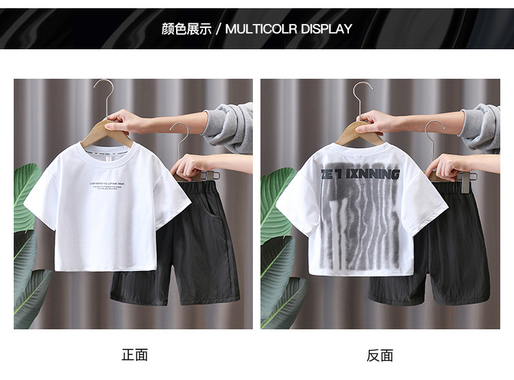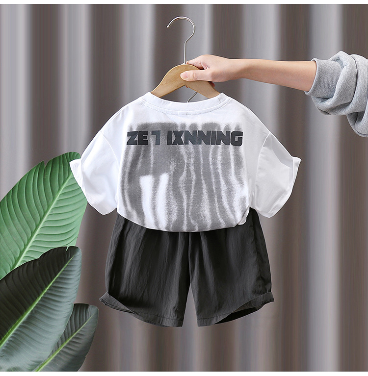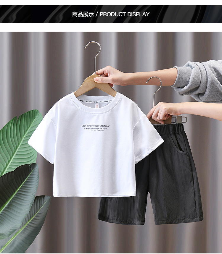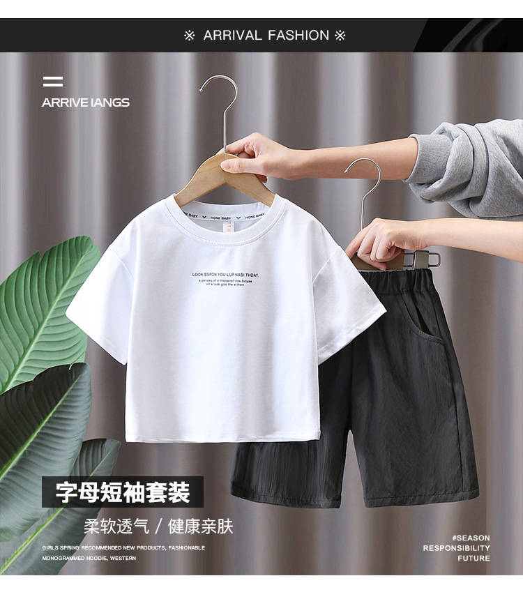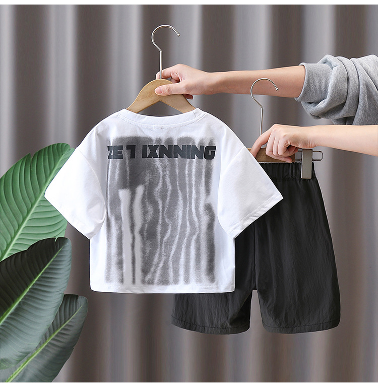 7420 Traje de camiseta de verano para niños 2025 Nuevo estilo de verano Ropa de manga corta de celebridades de Internet para niños Cool y guapo 6