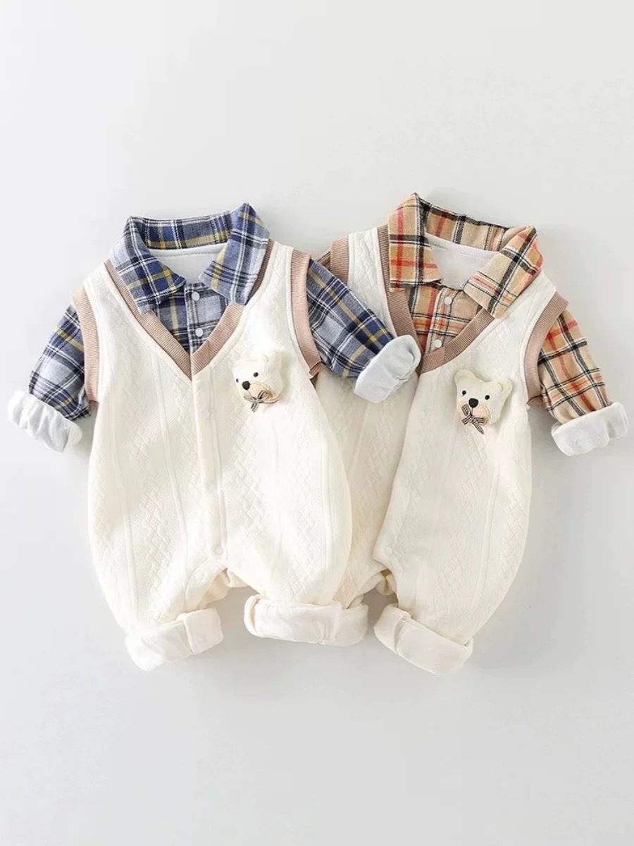 | Colores | Camisa a cuadros azul sbt falso de dos piezas con cabeza de oso,Camisa a cuadros de color café sbt falso de dos piezas con cabeza de oso |