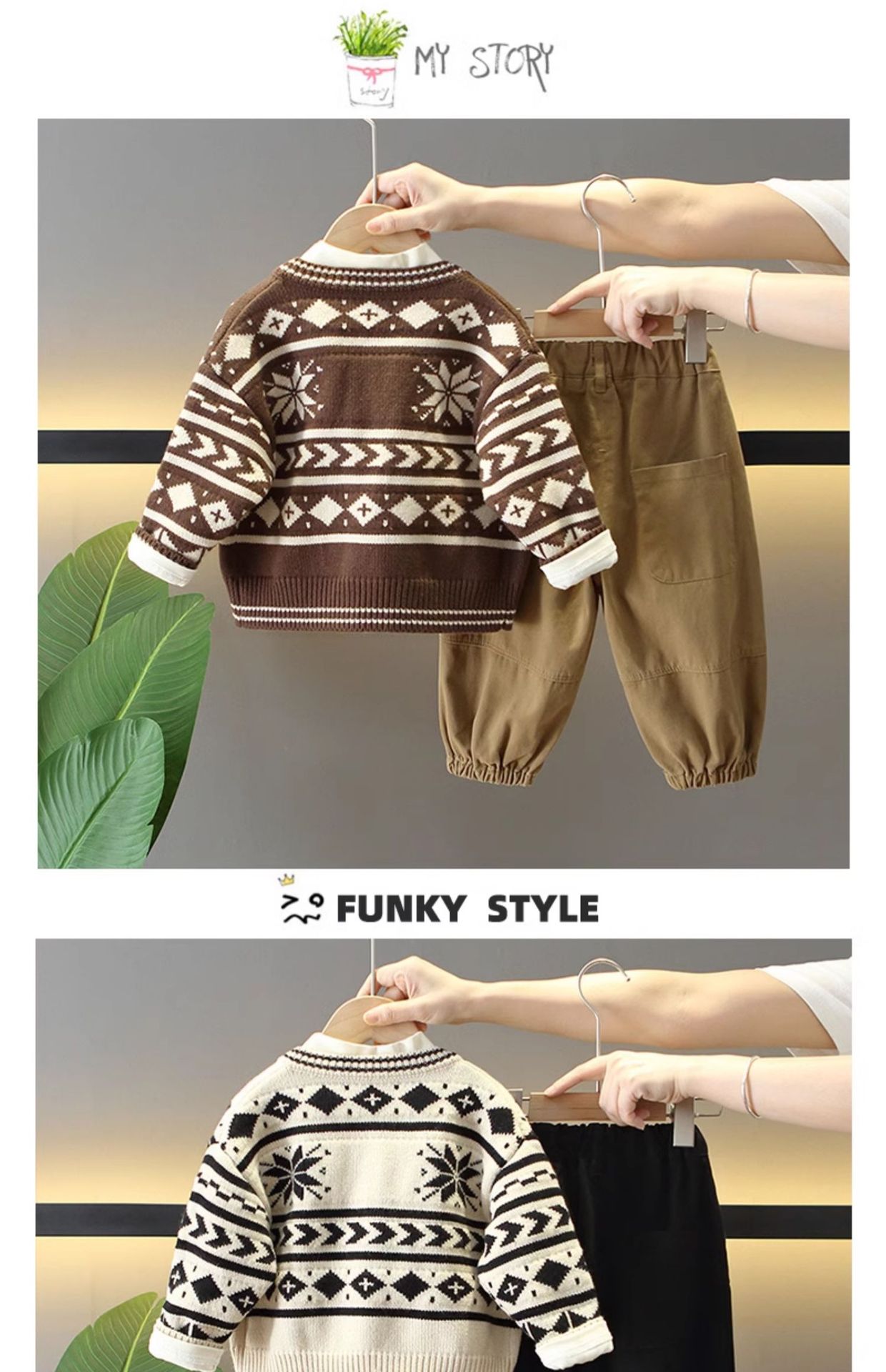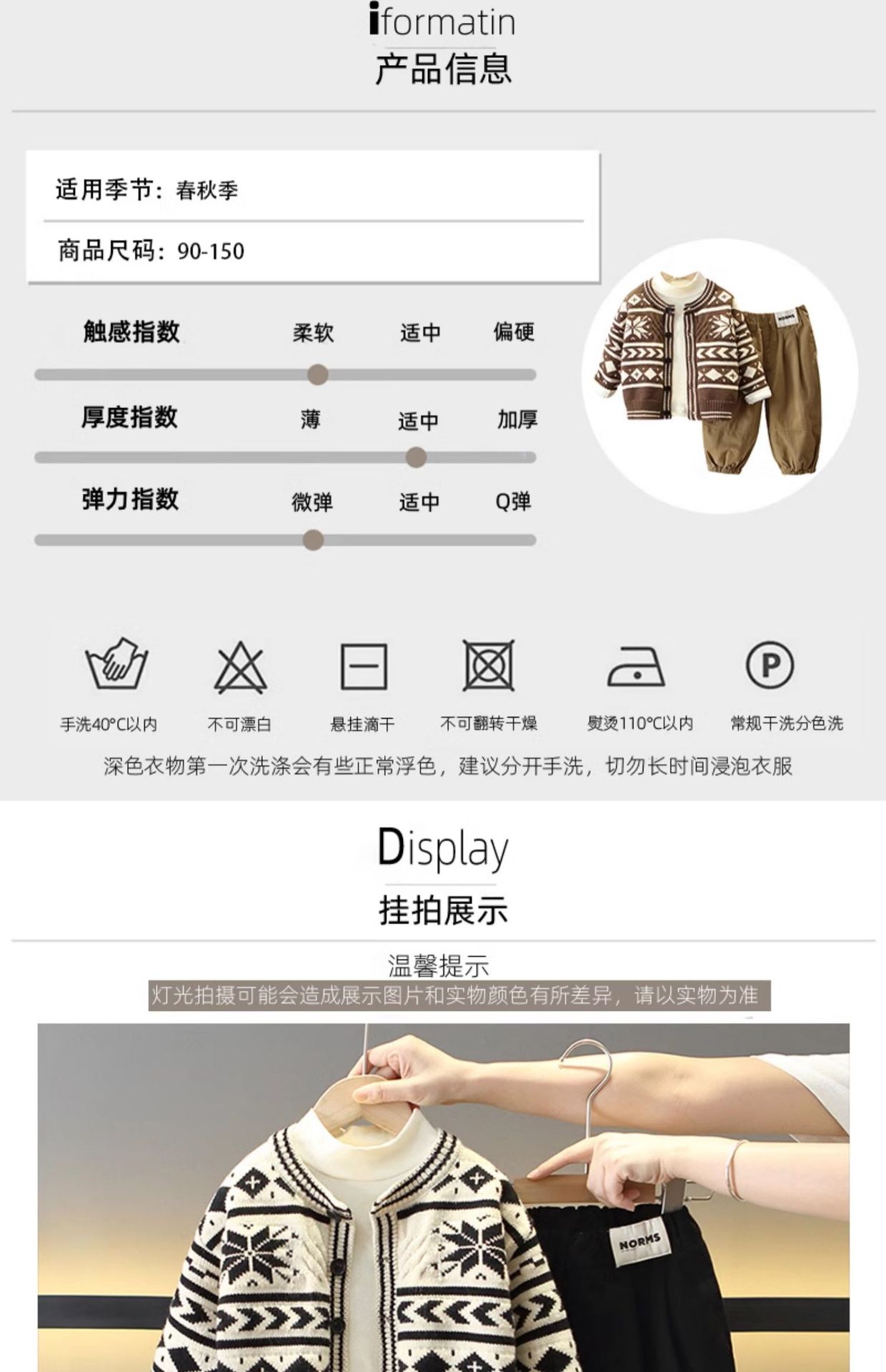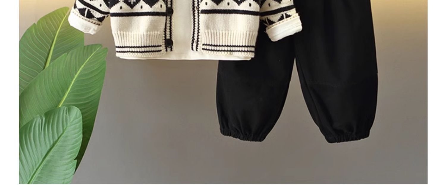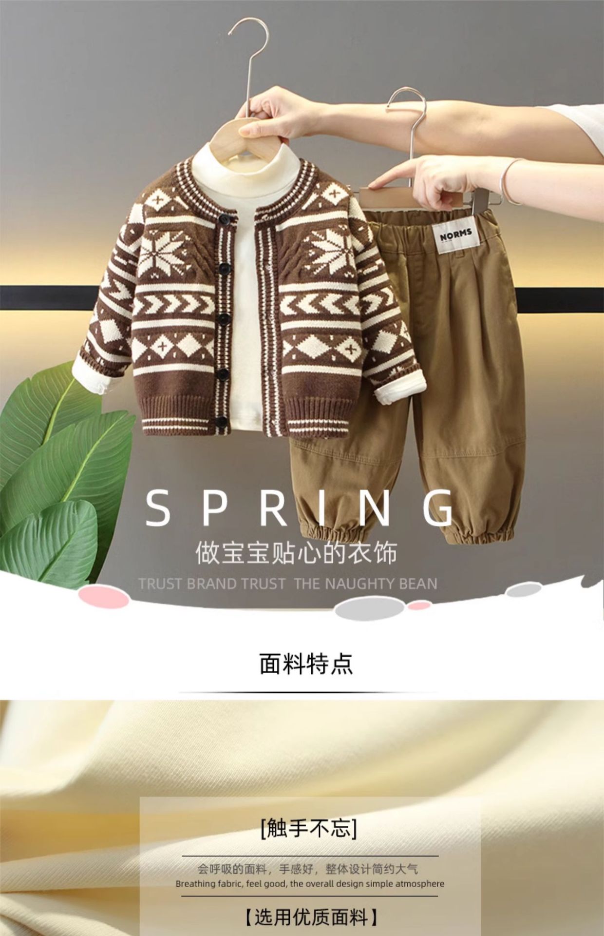 6134 traje de otoño para niños 2025 nuevo estilo bebé estilo occidental cárdigan suéter traje de tres piezas primavera y otoño para niños versión coreana