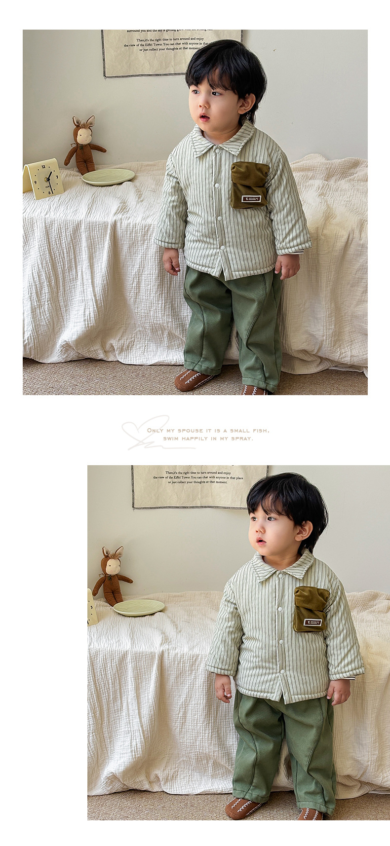 | Colores | Abrigo verde 【Acolchón】,Abrigo color café [acolchado],Pantalones casuales verde militar [más terciopelo],Pantalones casuales de café ligero [más terciopelo],Pantalones casuales de café profundo [más terciopelo] |