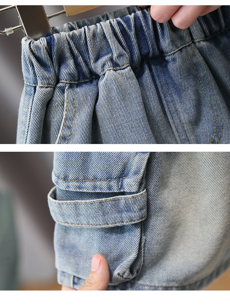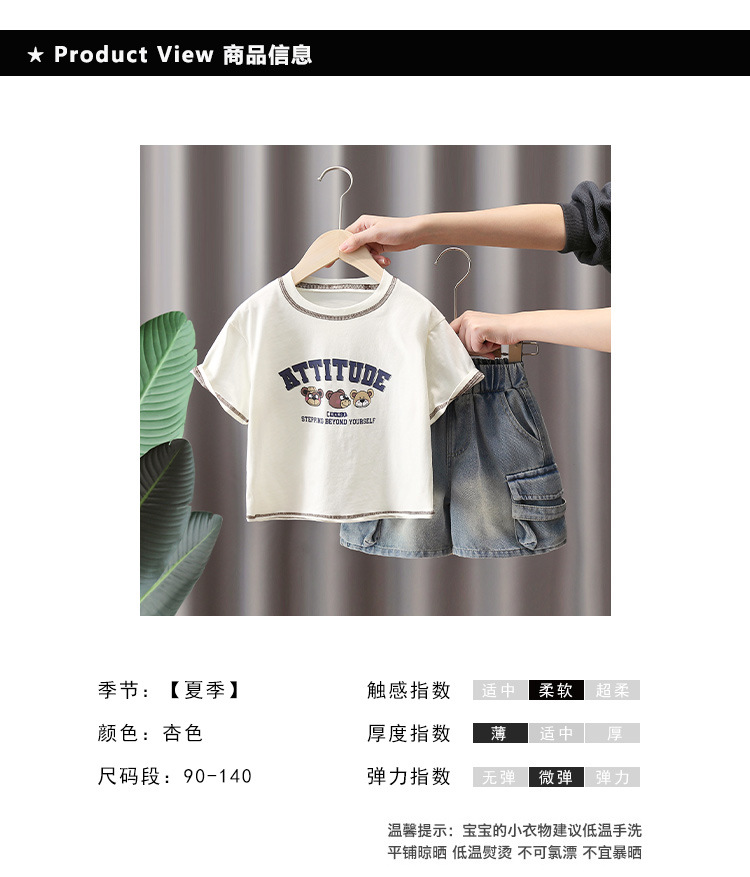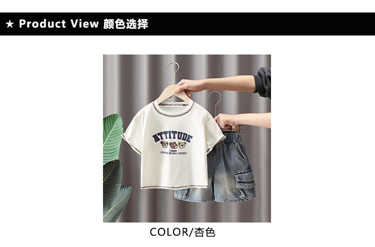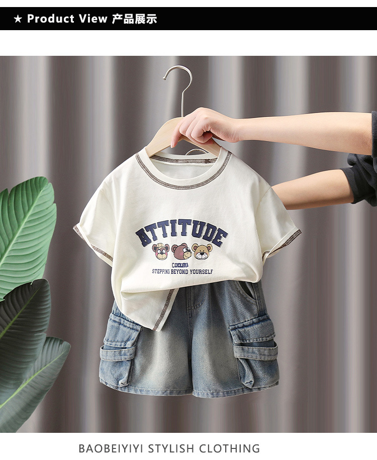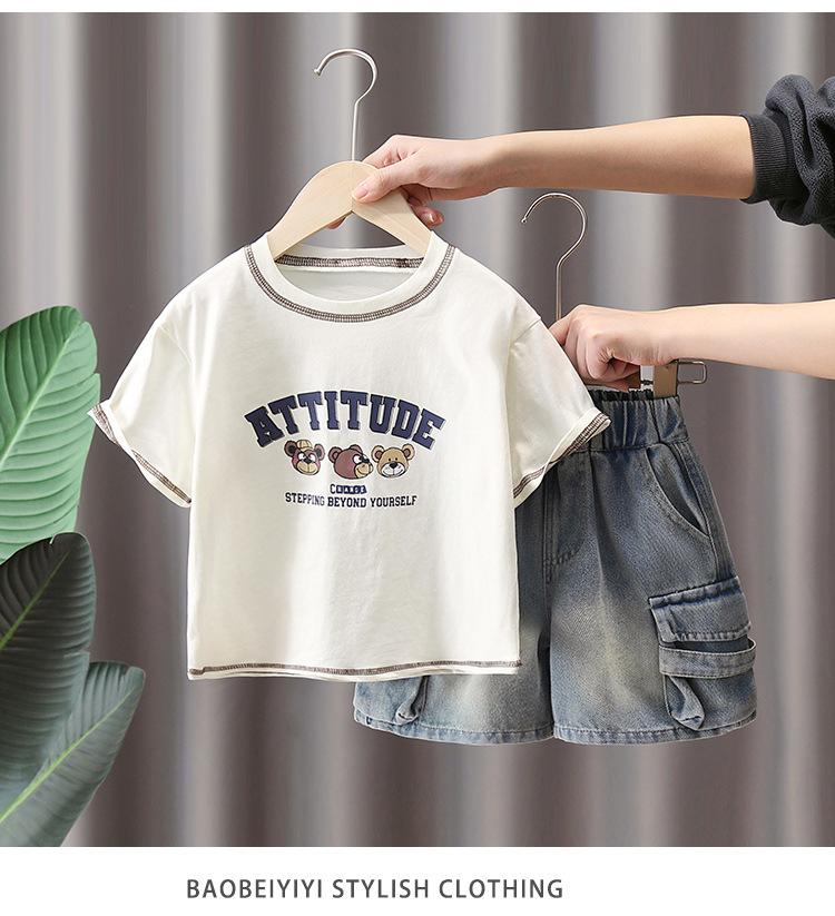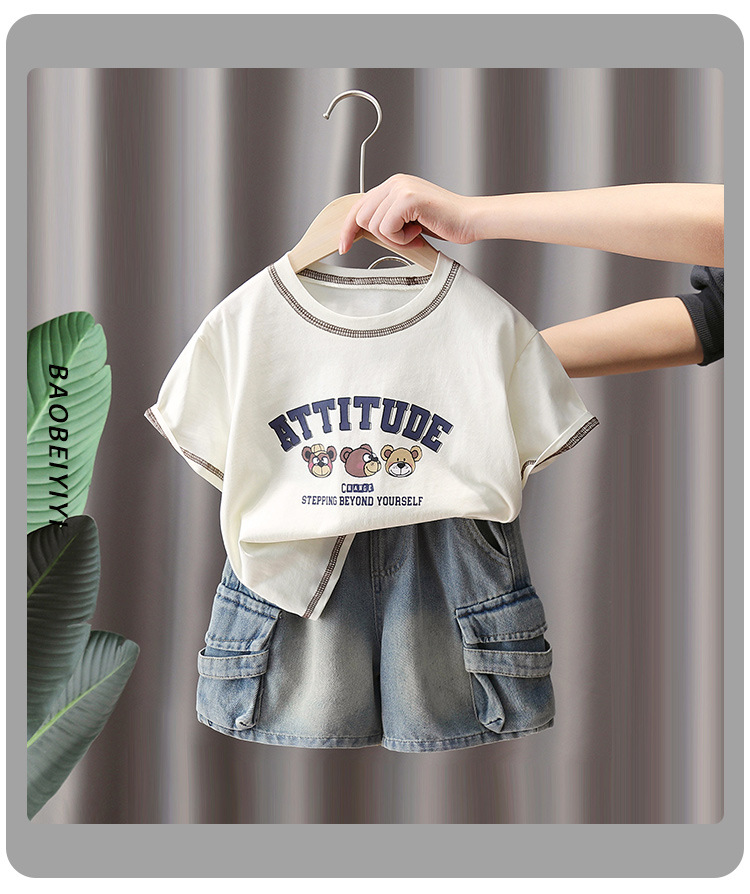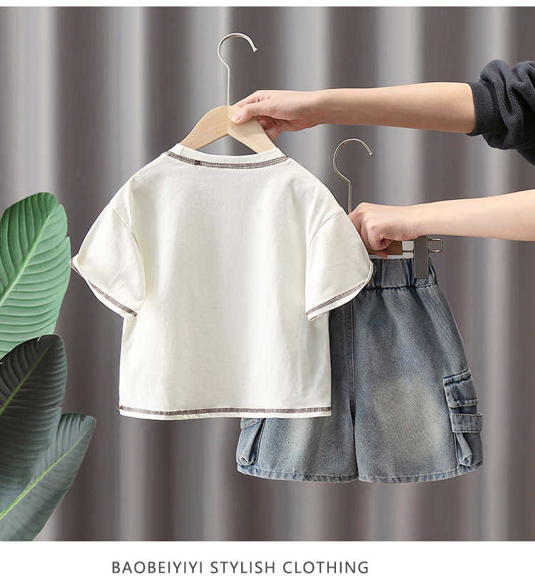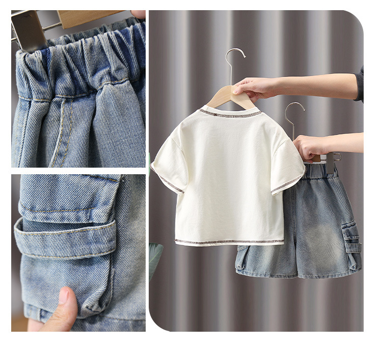 7914 traje de manga corta de verano para niños 2025 nuevos pantalones vaqueros coreanos para niños de dos piezas ropa de verano de moda para bebés
