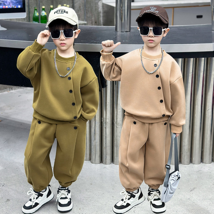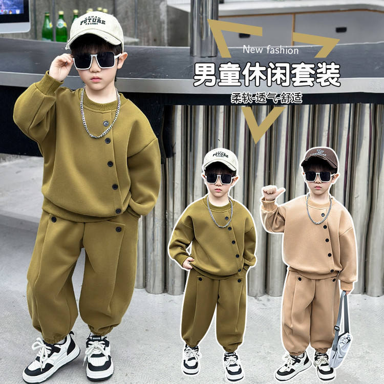 7673 traje de primavera para niños 2025 nuevo suéter de estilo occidental para niños de dos piezas ropa coreana de primavera y otoño para bebés