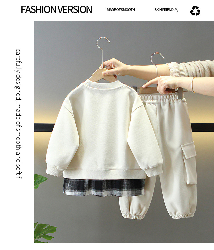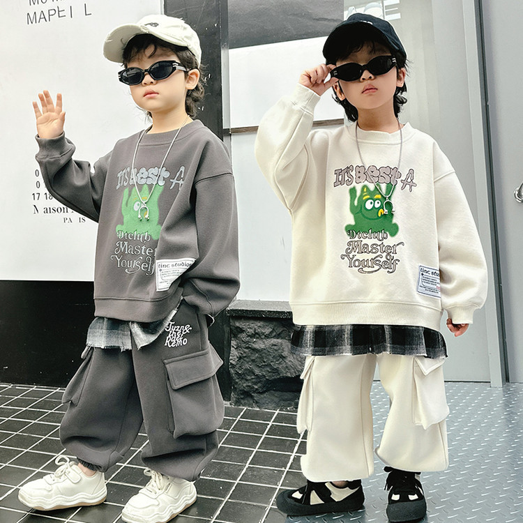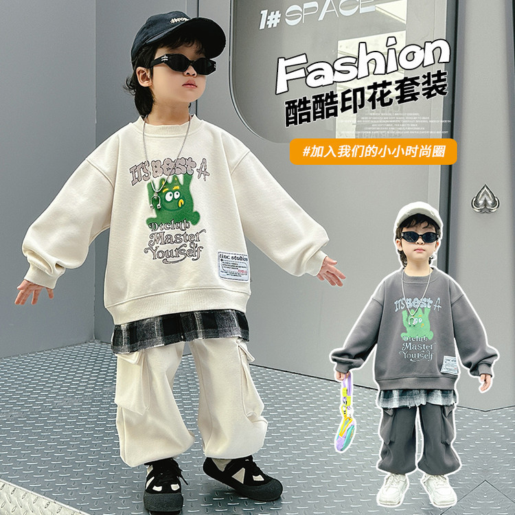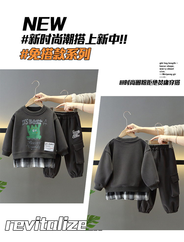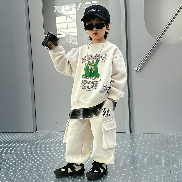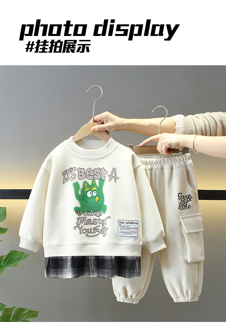 7676 Traje para niños para niños Primavera y otoño 2025 Nuevo suéter de primavera para niños de dos piezas Moda suelta Versión coreana