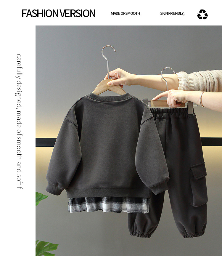 6354 Traje de otoño para niños 2025 Otoño Nuevo estilo Chaqueta de suéter con capucha para niños Traje de dos piezas de primavera y otoño para niños