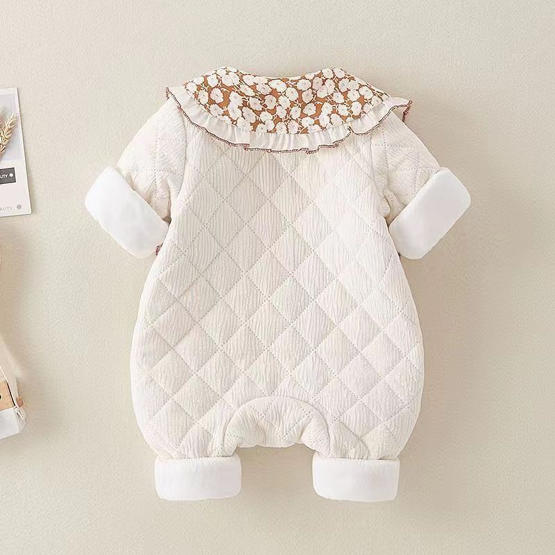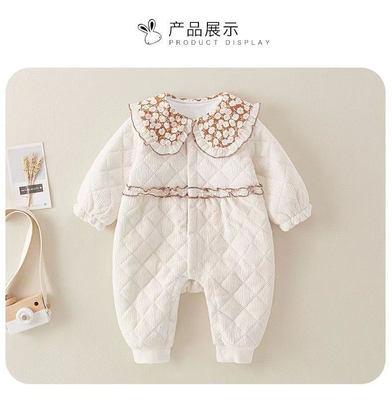 Estilo occidental del bebé ropa de invierno acolchado mameluco infantil dulce algodón fino mono Luna Llena recién nacido salida mameluco