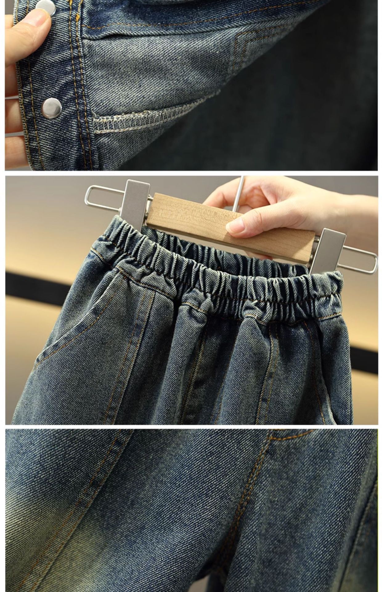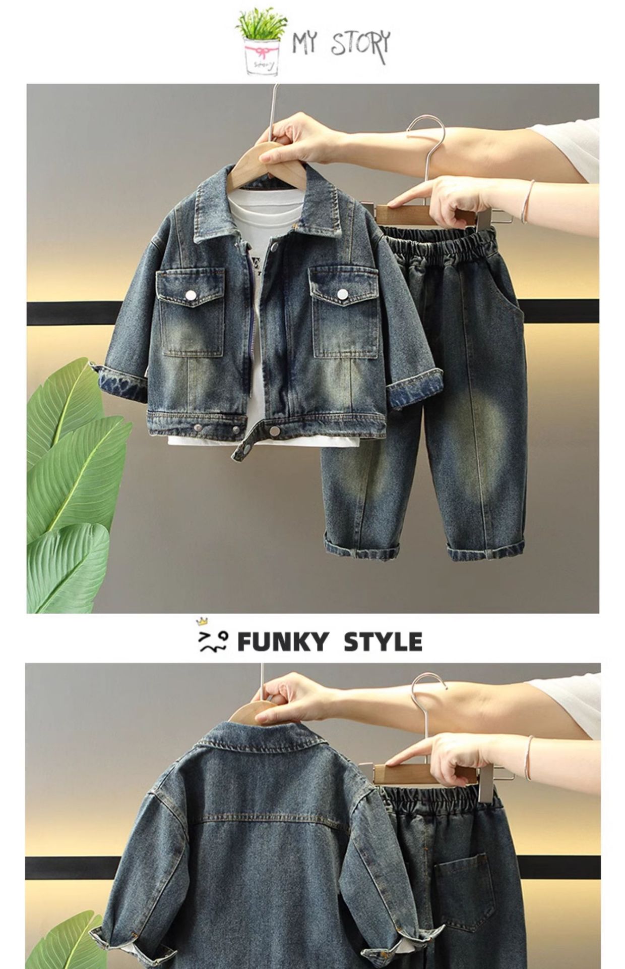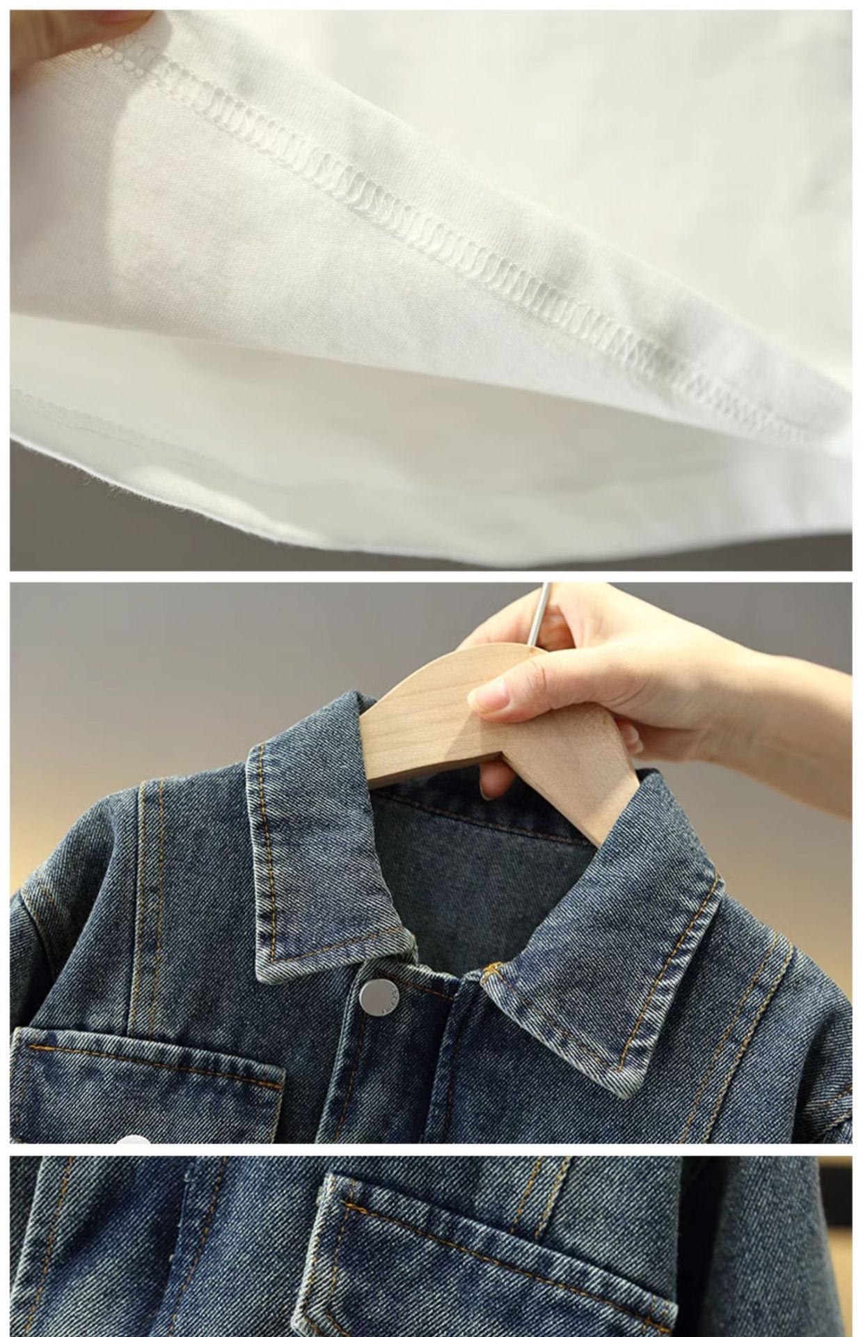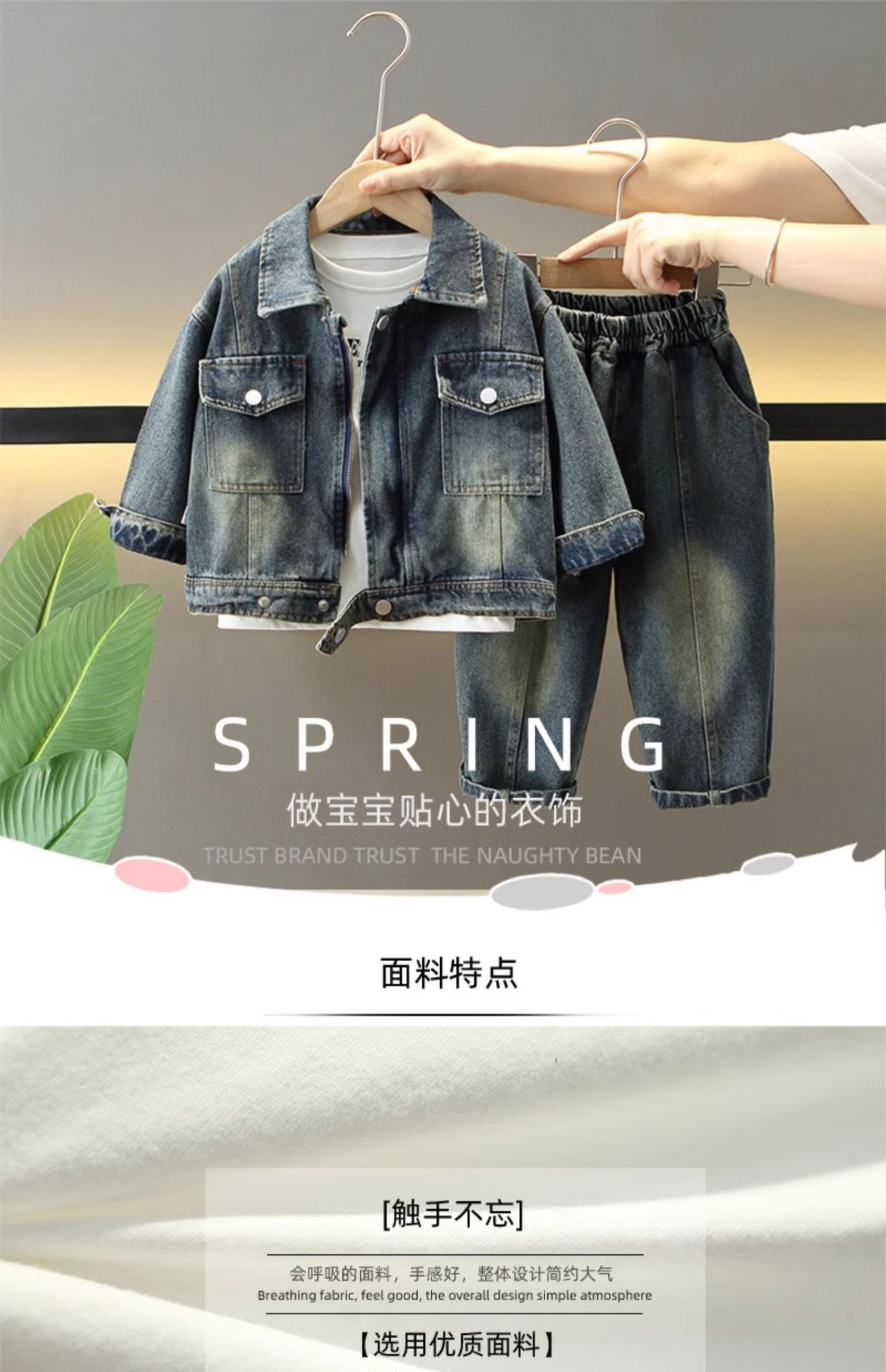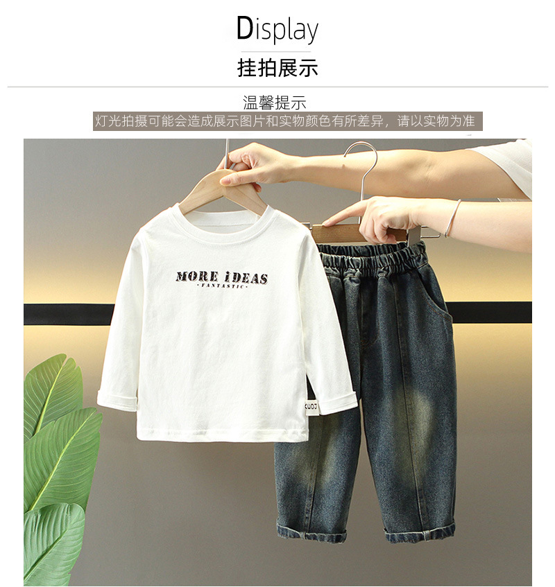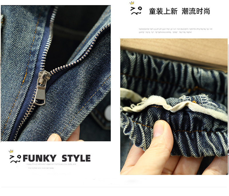7056 traje de mezclilla de primavera para niños 2025 nuevo estilo estilo occidental para niños fresco y guapo traje de tres piezas para niños primavera y otoño