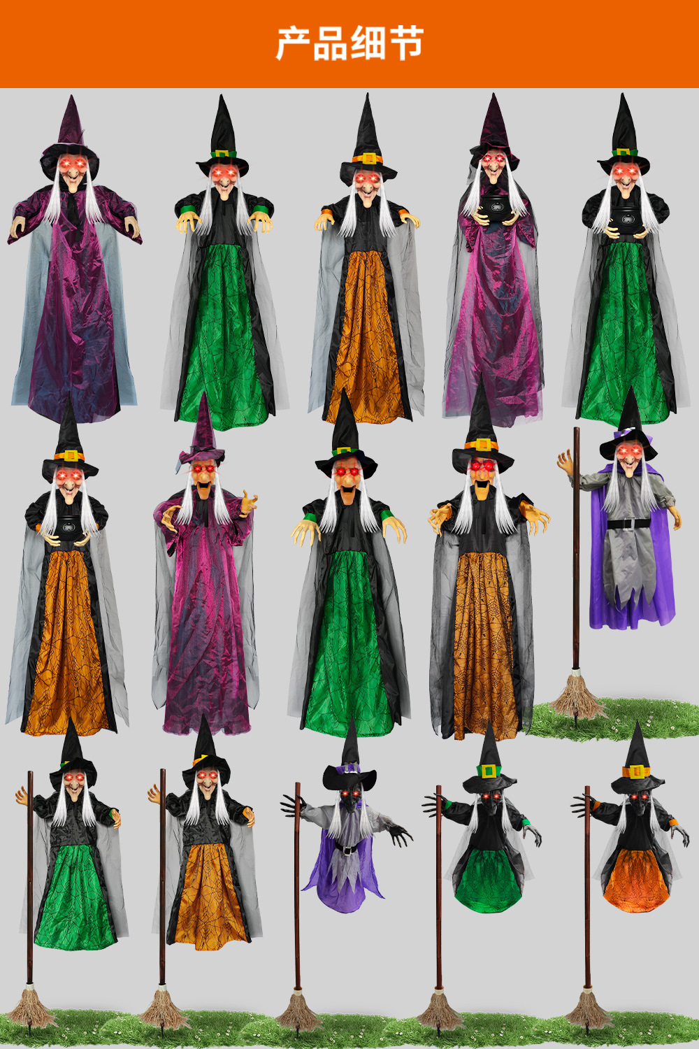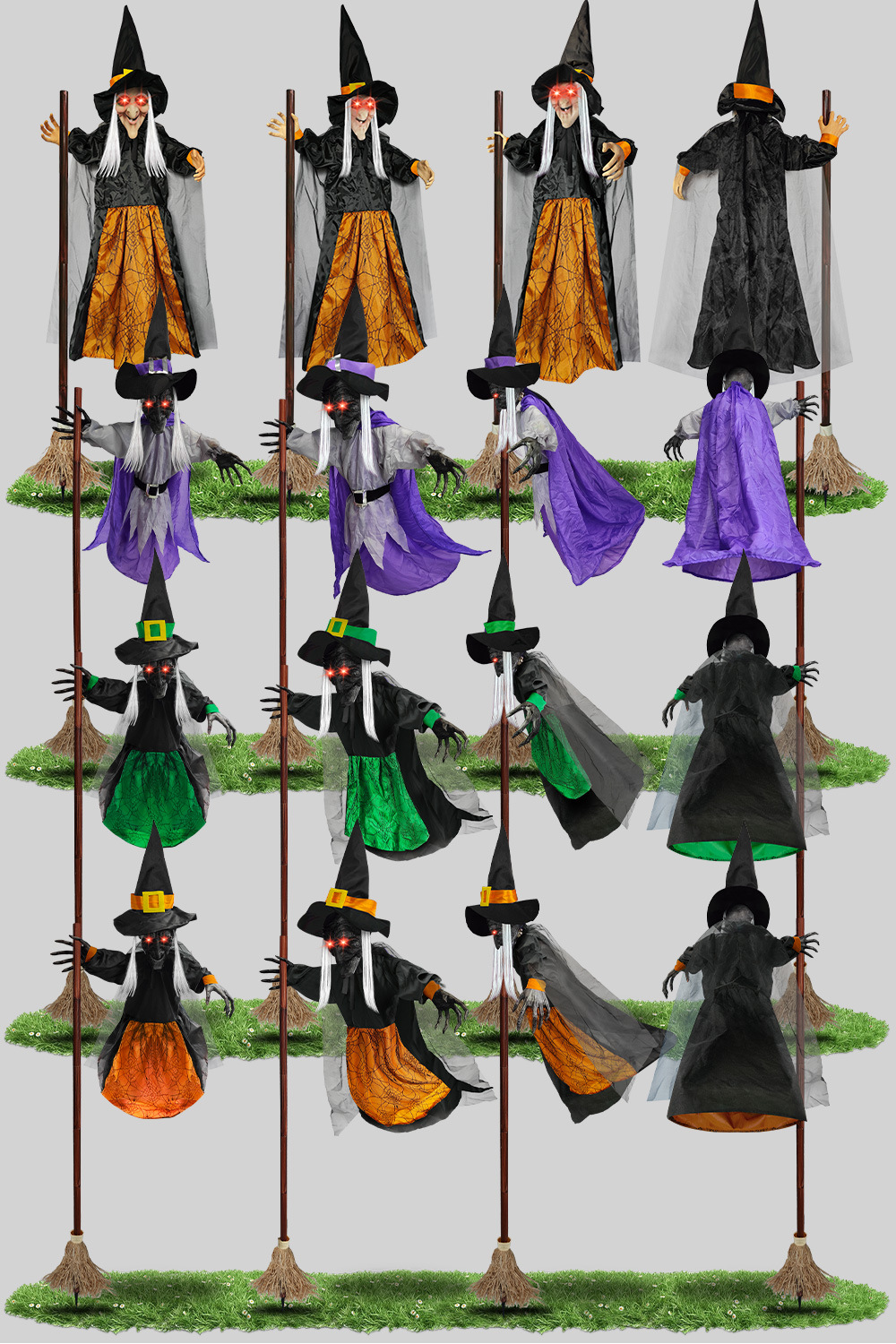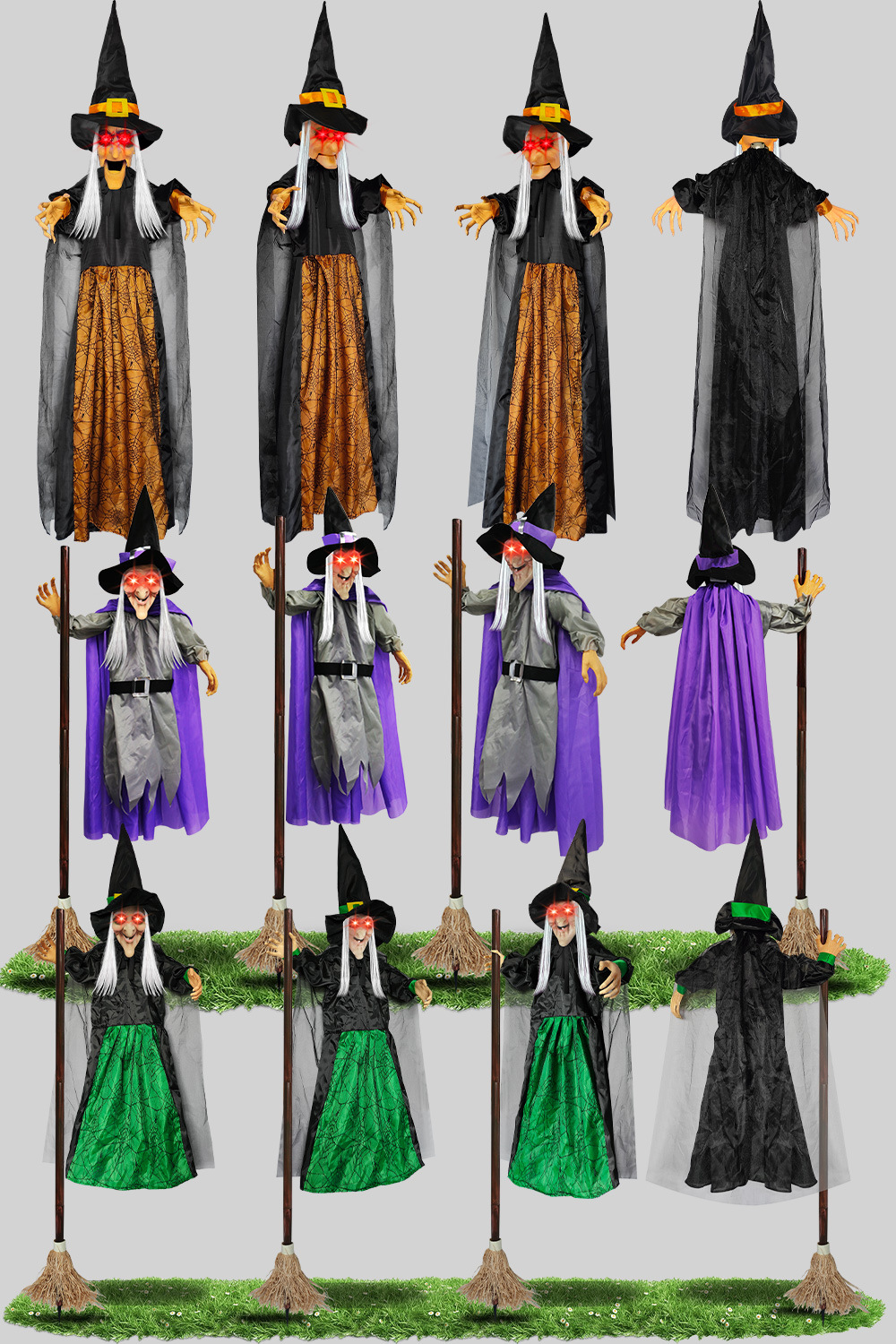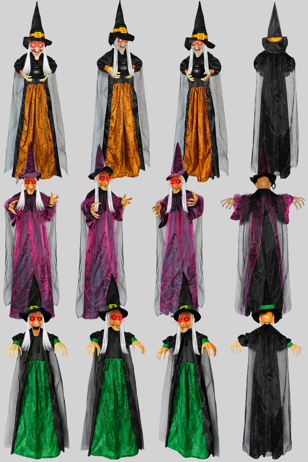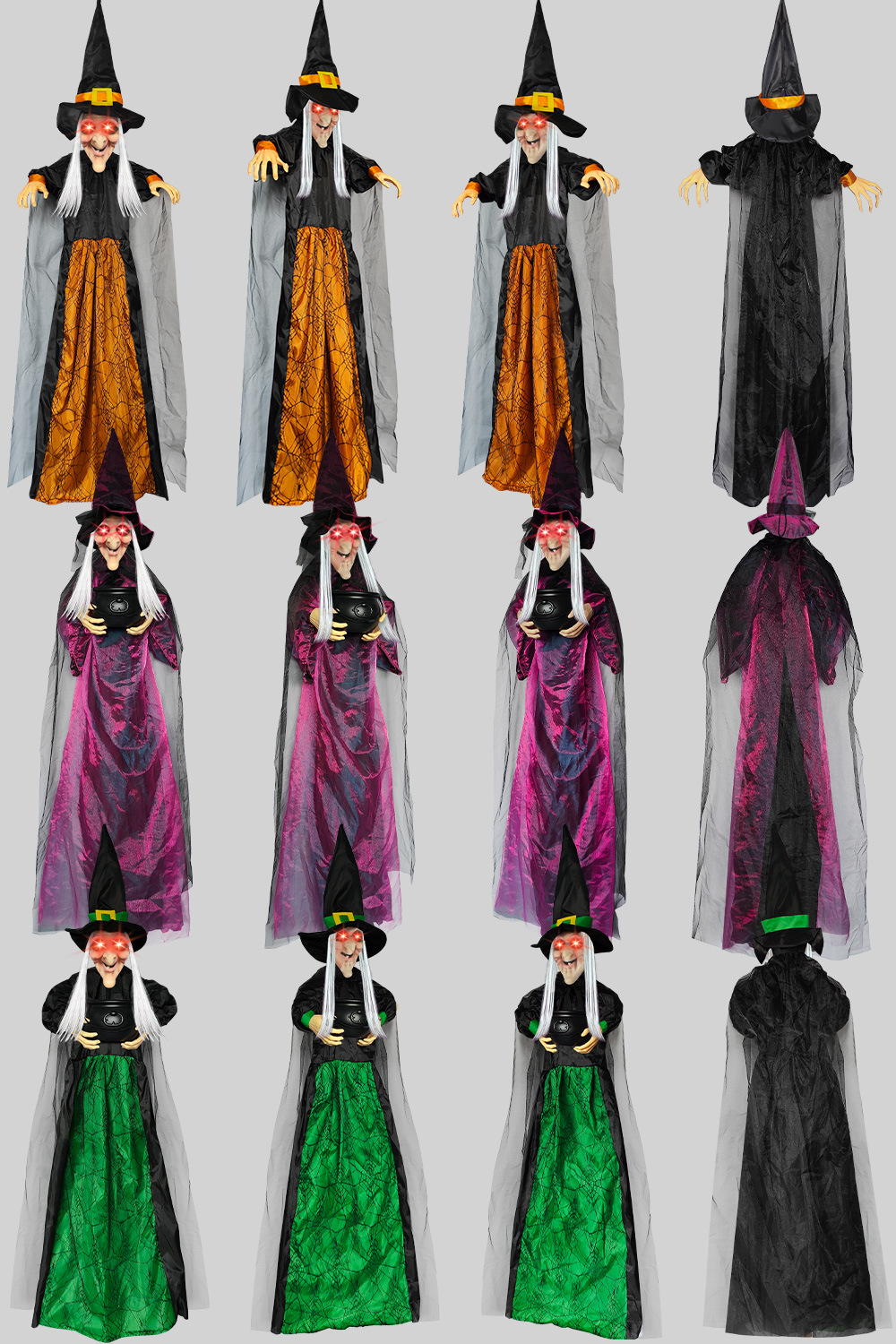 | Colores | Bruja fantasma colgante púrpura (llamada luminosa activada por voz),Bruja fantasma colgante verde (grito iluminado activado por voz),Bruja fantasma colgante amarilla (grito iluminado activado por voz),Púrpura sosteniendo un cuenco de bruja (voz activada para gritar),Bruja verde sosteniendo un cuenco (grito iluminado activado por voz),Bruja amarilla sosteniendo un cuenco (grito iluminado activado por voz),Bruja morada con boca móvil (grito brillante con boca móvil controlado por voz),Bruja Verde con Boca Móvil (Boca Móvil Activada por Sonido, Grito con Luces),Bruja Amarilla con Boca Móvil (Boca Móvil Activada por Sonido, Grito con Luces),Bruja de escoba morada (grito iluminado activado por voz),Bruja de Escoba Verde (Grito Iluminado Activado por Voz),Bruja Escoba Amarilla (Grito Iluminado Activado por Voz),Bruja fantasma colgante de repuesto (grito iluminado controlado por voz),Bruja fantasma colgante negra (llamada luminosa activada por voz),Bruja gris púrpura con boca móvil (boca móvil controlada por voz, brillante y gritando) |