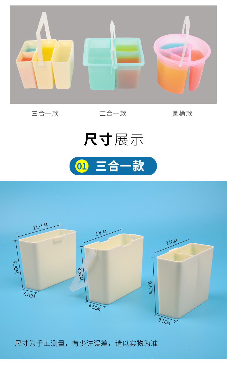 | Colores | Cubo redondo de silicona [color aleatorio],Mini cubo [rosa roja],Mini cubo [negro],Mini cubo [Gris],Mini cubo [azul],Mini cubo [púrpura],Cubo transparente comprimido grande,Cubo transparente comprimido pequeño,Cubo de separación grande,Cubo de separación de trompeta,Regadera,Toalla de arte,Gran paleta ovalada,Paleta ovalada de nueve agujeros |