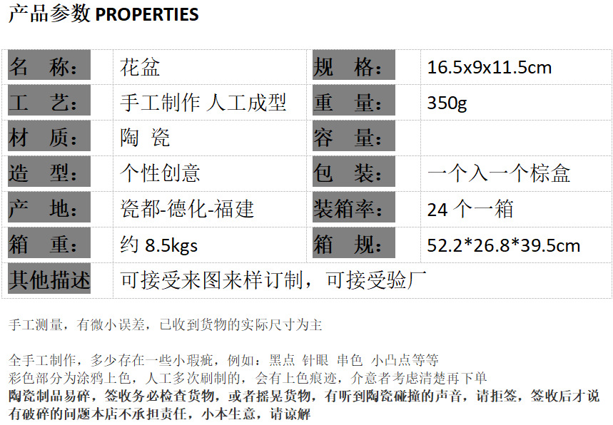 | Tamaño | Lavabo colgante de mapache,Lavabo colgante panda,Mono colgante,Oveja colgando,Owl maceta,Maceta de cordero |