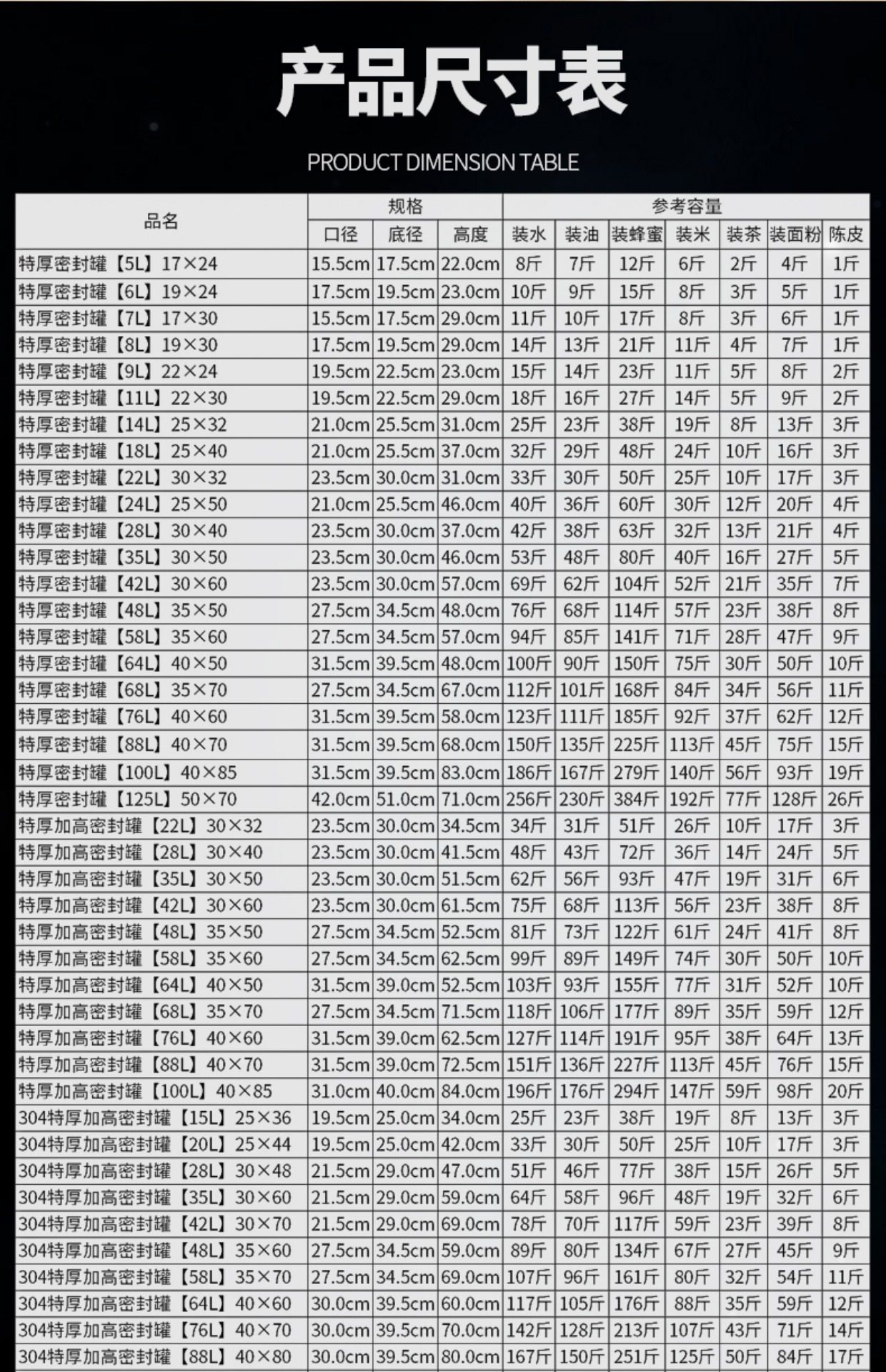 | Color | 特厚密封罐【5L】17×24⚑⚑,特厚密封罐【6L】19×24⚑⚑,特厚密封罐【7L】17×30⚑⚑,特厚密封罐【8L】19×30⚑⚑,特厚密封罐【9L】22×24⚑⚑,特厚密封罐【11L】22×30⚑⚑,特厚密封罐【14L】25×32⚑⚑,特厚密封罐【18L】25×40⚑⚑,特厚密封罐【22L】30×32⚑⚑,特厚密封罐【24L】25×50⚑⚑,特厚密封罐【28L】30×40⚑⚑,特厚密封罐【35L】30×50⚑⚑,特厚密封罐【42L】30×60⚑⚑,特厚密封罐【48L】35×50⚑⚑,特厚密封罐【58L】35×60⚑⚑,特厚密封罐【64L】40×50⚑⚑,特厚密封罐【68L】35×70⚑⚑,特厚密封罐【76L】40×60⚑⚑,特厚密封罐【88L】40×70⚑⚑,特厚密封罐【100L】40×85⚑⚑,特厚密封罐【125L】50×70⚑⚑,特厚加高密封罐【22L】30×32⚑⚑,特厚加高密封罐【28L】30×40⚑⚑,特厚加高密封罐【35L】30×50⚑⚑,特厚加高密封罐【42L】30×60⚑⚑,特厚加高密封罐【48L】35×50⚑⚑,特厚加高密封罐【58L】36×60⚑⚑,特厚加高密封罐【64L】40×50⚑⚑,特厚加高密封罐【68L】35×70⚑⚑,特厚加高密封罐【76L】40×60⚑⚑,特厚加高密封罐【88L】40×70⚑⚑,特厚加高密封罐【100L】40×85⚑⚑,304特厚加高密封罐【15L】25×36⚑⚑,304特厚加高密封罐【20L】25×44⚑⚑,304特厚加高密封罐【28L】30×48⚑⚑,304特厚加高密封罐【35L】30×60⚑⚑,304特厚加高密封罐【42L】30×70⚑⚑,304特厚加高密封罐【48L】35×60⚑⚑,304特厚加高密封罐【58L】35×70⚑⚑,304特厚加高密封罐【64L】40×60⚑⚑,304特厚加高密封罐【76L】40×70⚑⚑,304特厚加高密封罐【88L】40×80⚑⚑,304特厚加高密封罐【125L】50×74⚑⚑ |