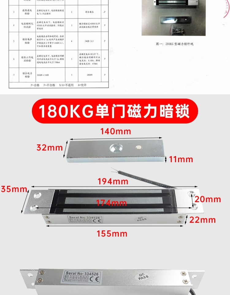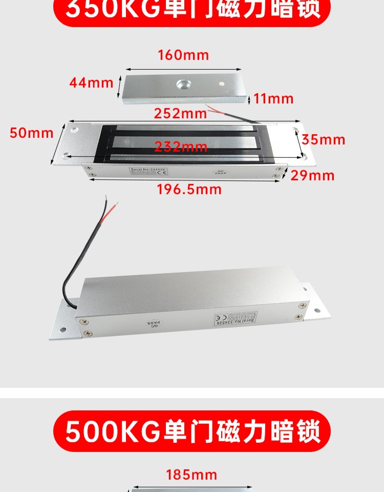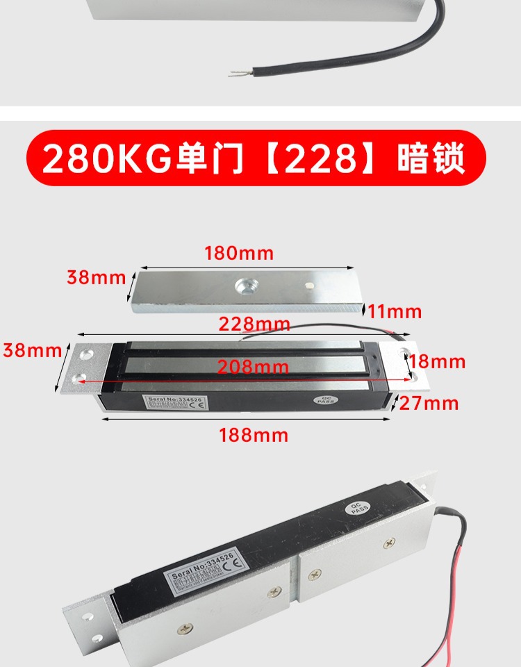 280kg cerradura magnética de una sola puerta 60kg cerradura de cámara secreta 180kg cerradura de succión electromagnética 350kg cerradura de control de acceso 500kg cerradura de control eléctrico