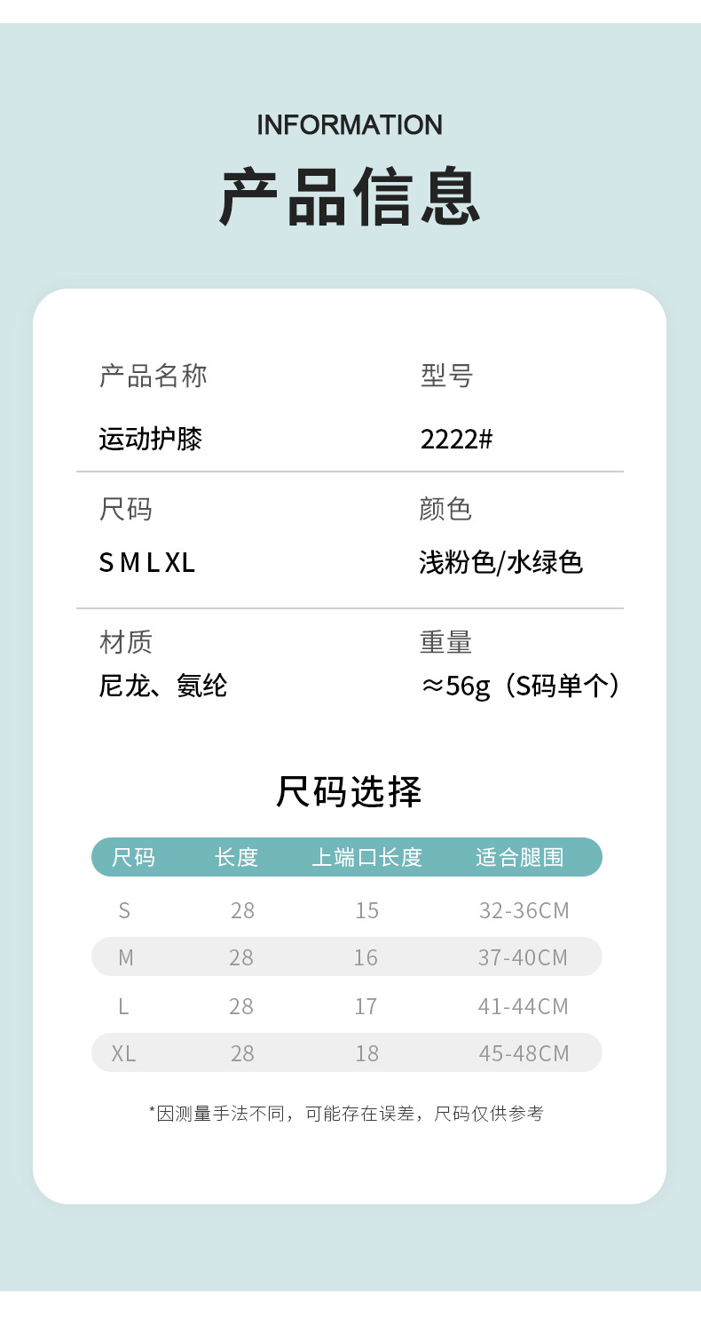 | Especificaciones | Código S (circunferencia de pierna recomendada 32-36cm),Código M (circunferencia de pierna recomendada 36-40cm),Código L (circunferencia de pierna recomendada 40-44cm),Talla XL (circunferencia de la pierna recomendada 44-48cm) |