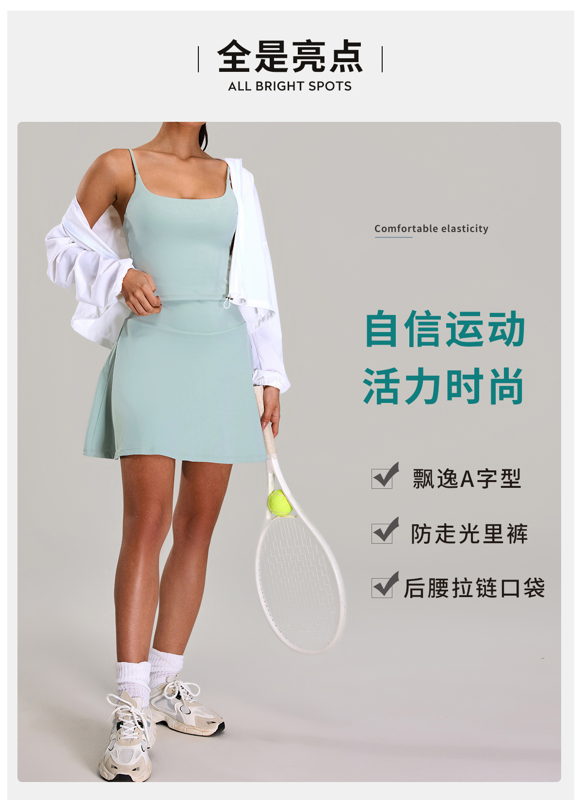 | Estilo inferior | Falda deportiva corta |