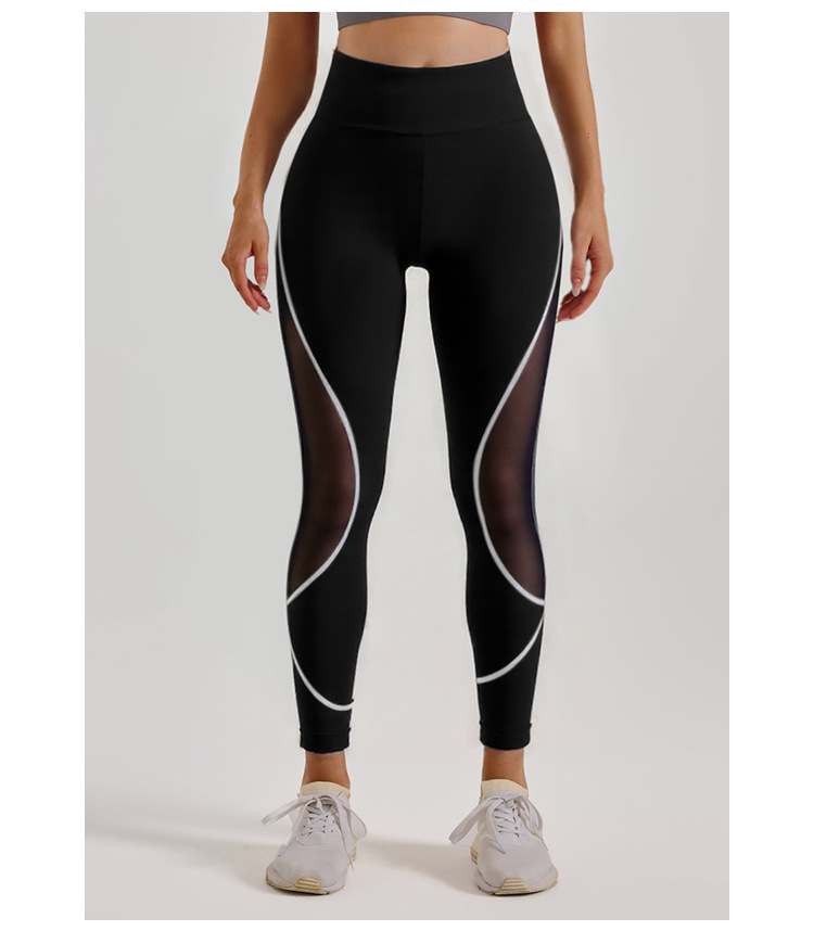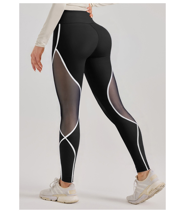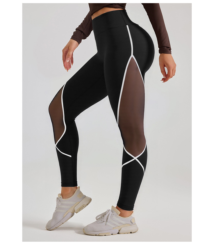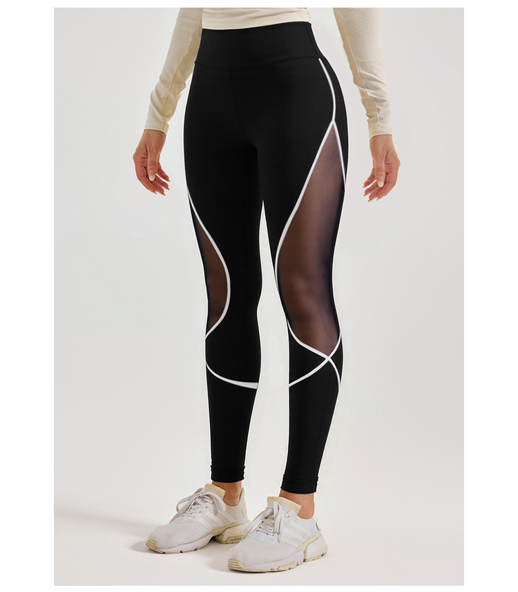 Pantalones de yoga de malla a juego de color de zona transfronteriza, costuras europeas y americanas, cintura alta, glúteos, pantalones deportivos para correr, mujeres