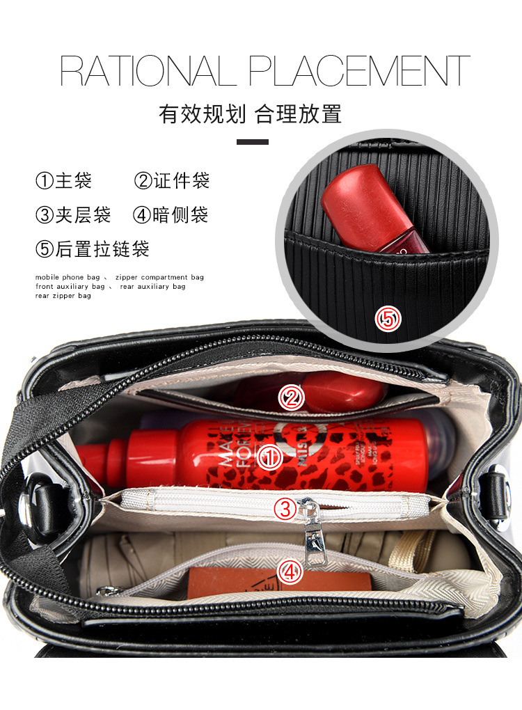 | Estructura interna del paquete | Bolsa de teléfono móvil, bolsa de documentos, bolsa de cremallera entrepiso |