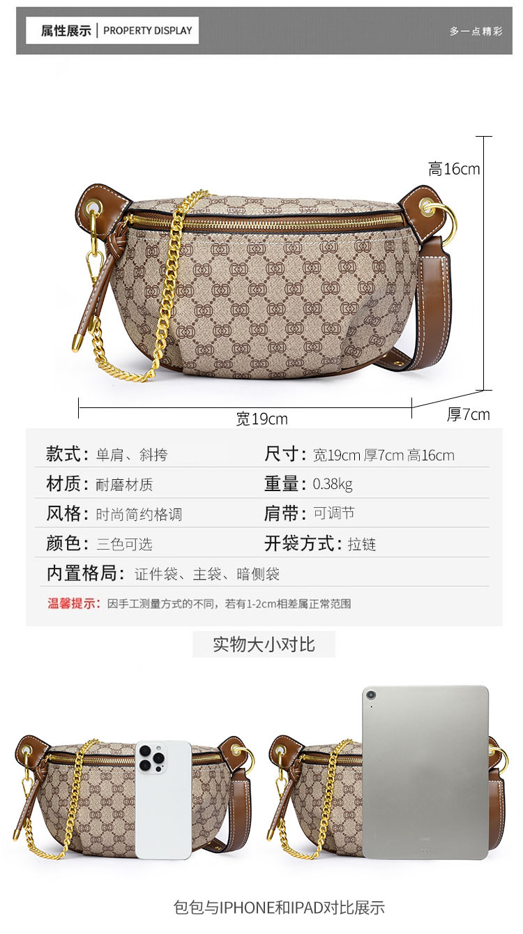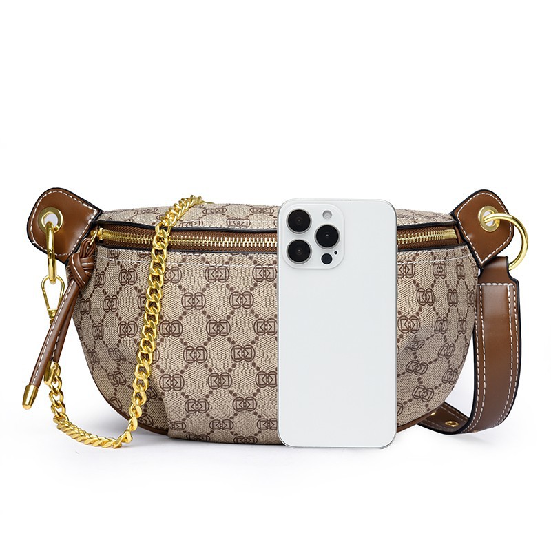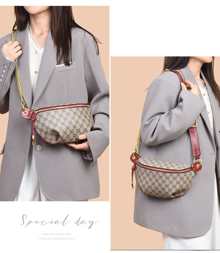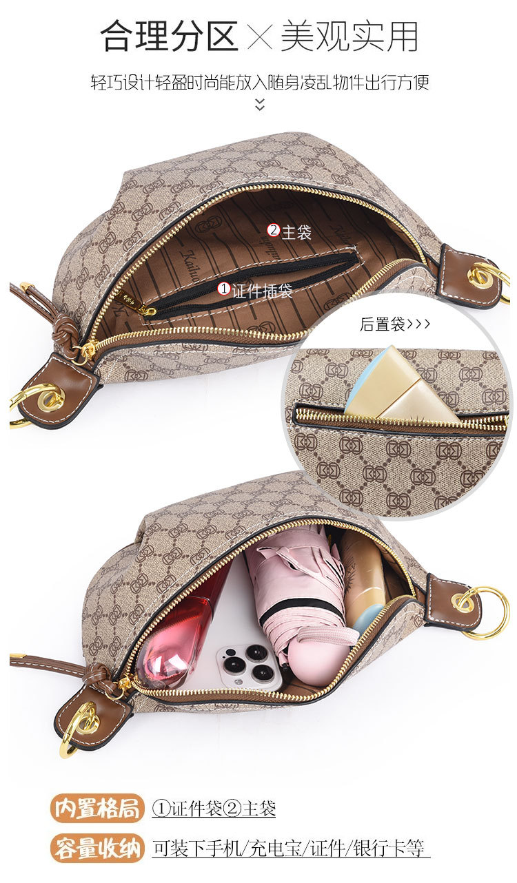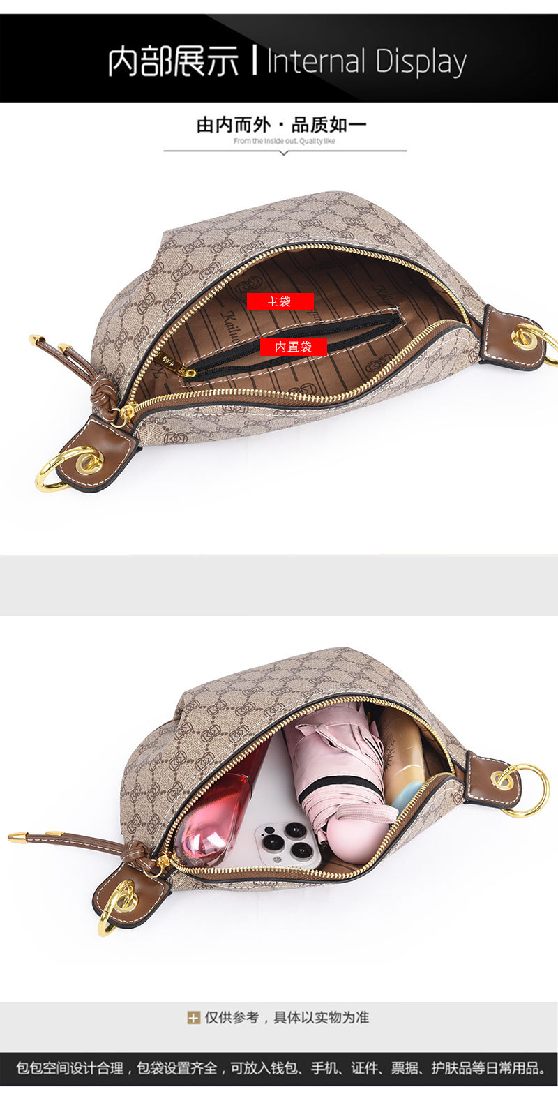 2024 nuevo bolso de pecho retro, temperamento impreso, bolso de bola de masa de media luna, bolso de hombro de gran capacidad, bolso de mensajero, bolso de mujer