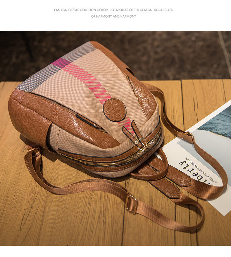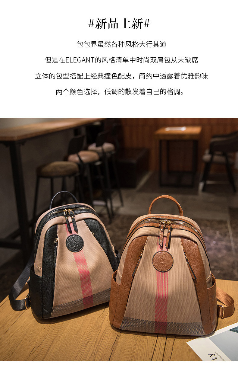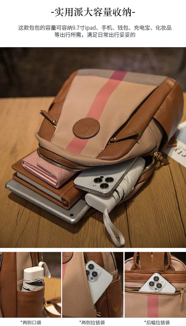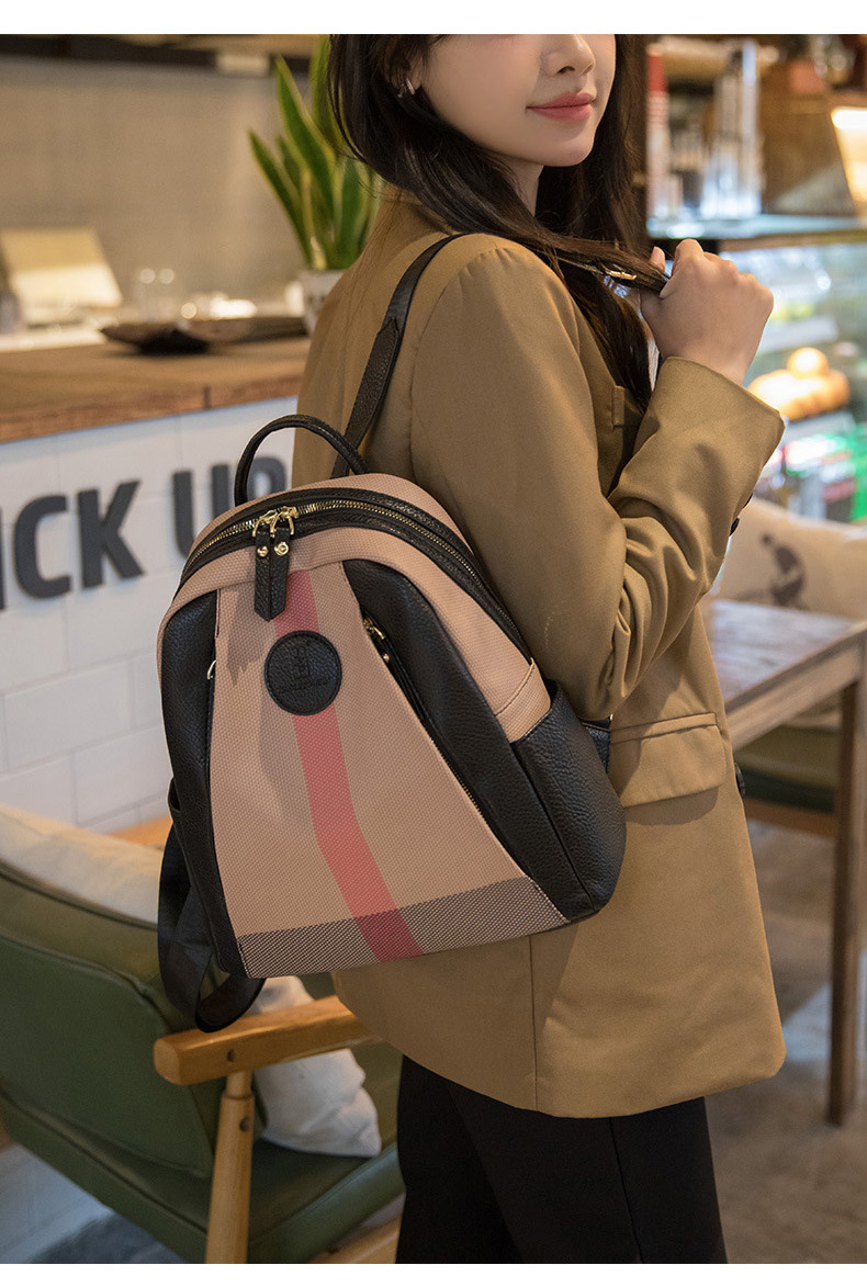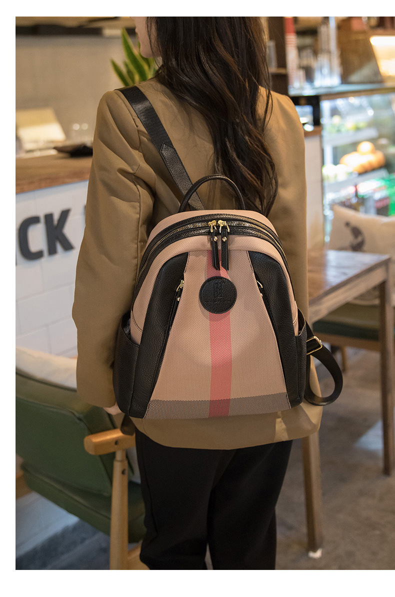 Spot wholesale 2025 nueva mochila antirrobo para mujer moda color de contraste mochila de nailon de viaje ligero bolso de doble uso