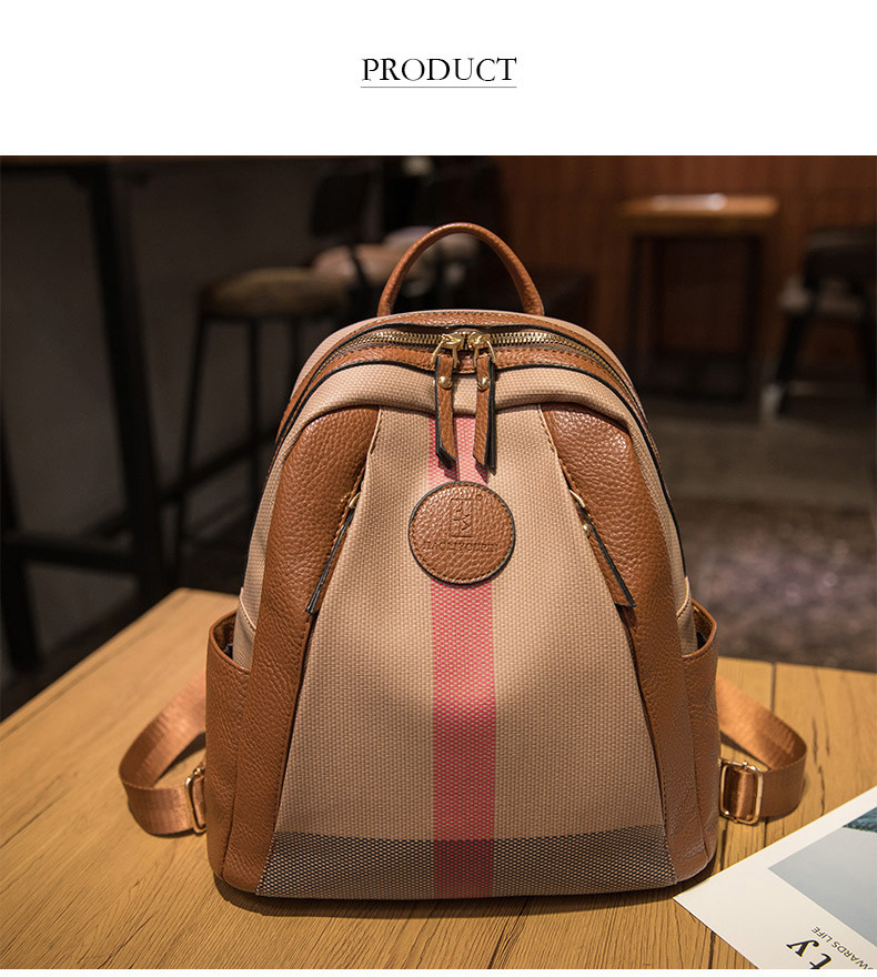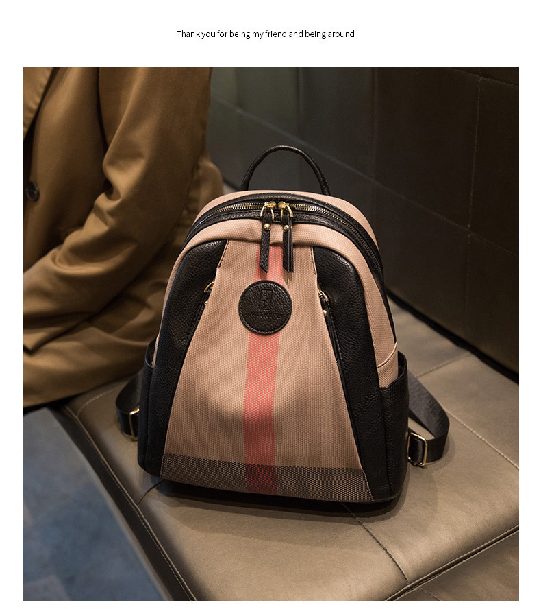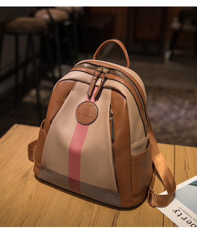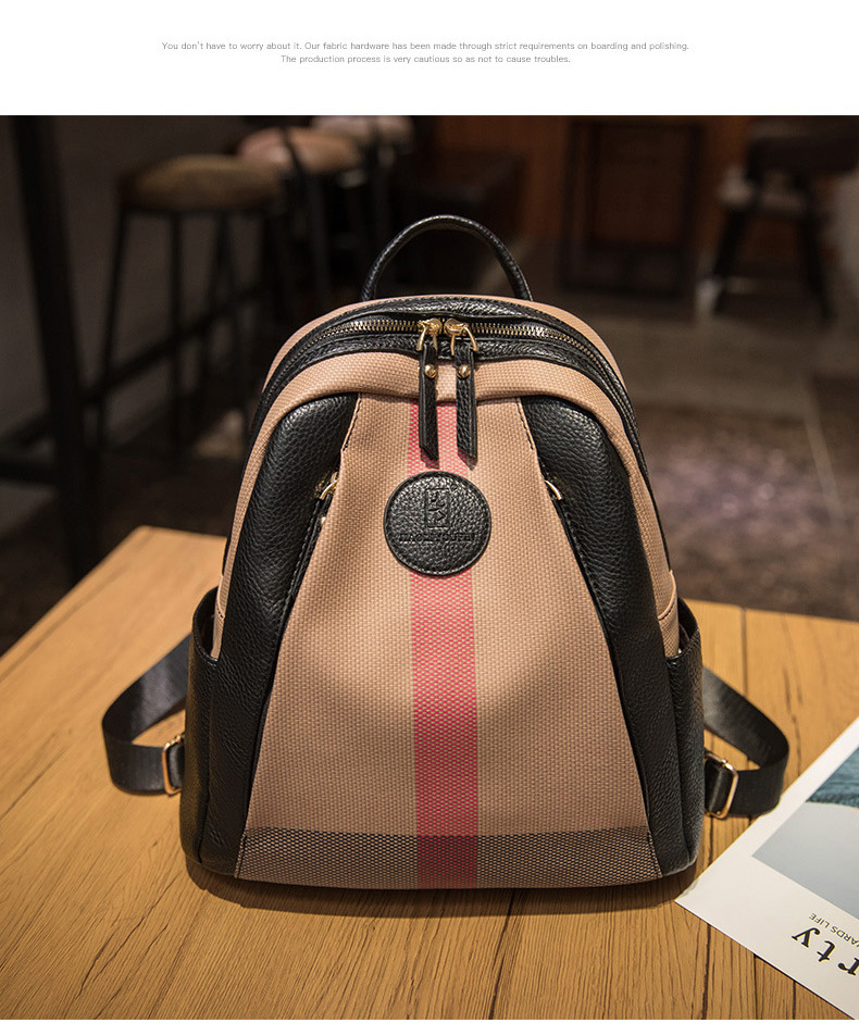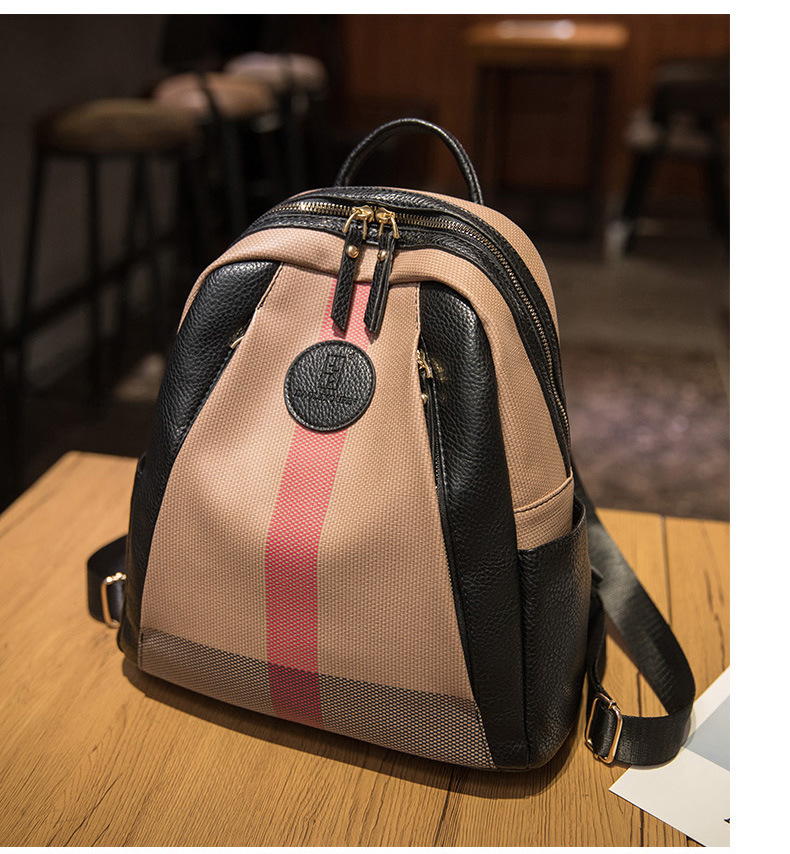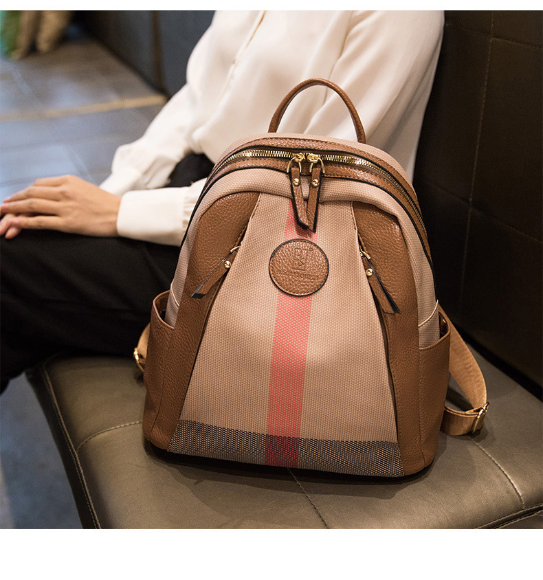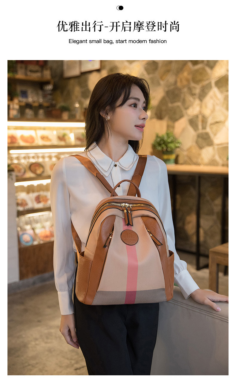 Spot wholesale 2025 nueva mochila antirrobo para mujer moda color de contraste mochila de nailon de viaje ligero bolso de doble uso