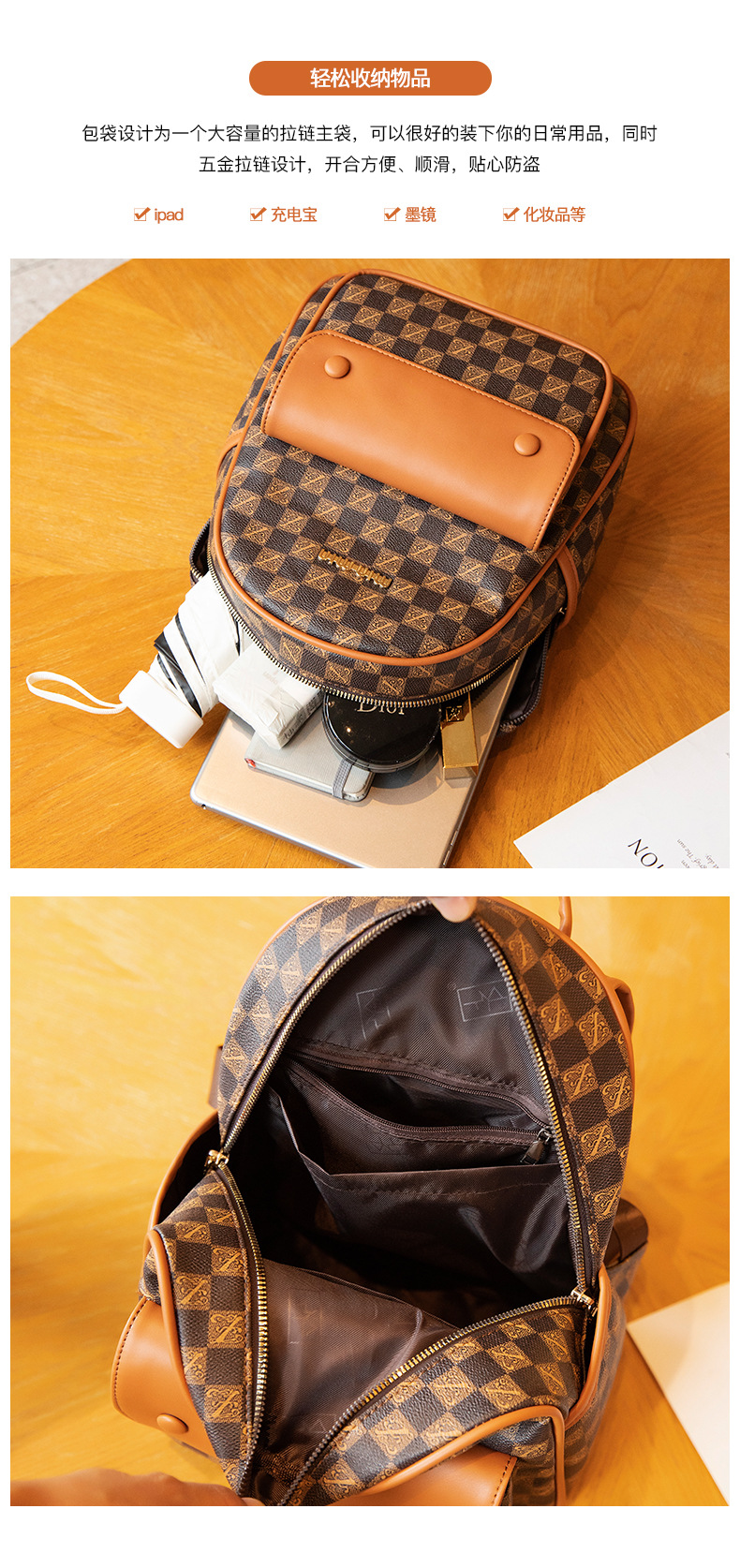 | Estructura interna del paquete | Bolsa de teléfono móvil, bolsa de documentos, bolsa de cremallera entrepiso |