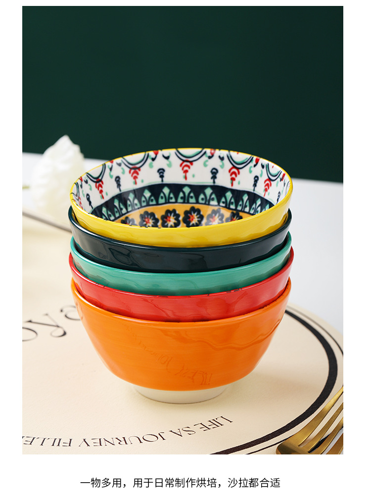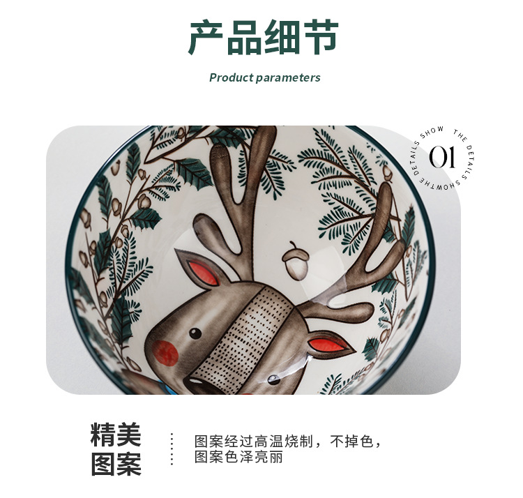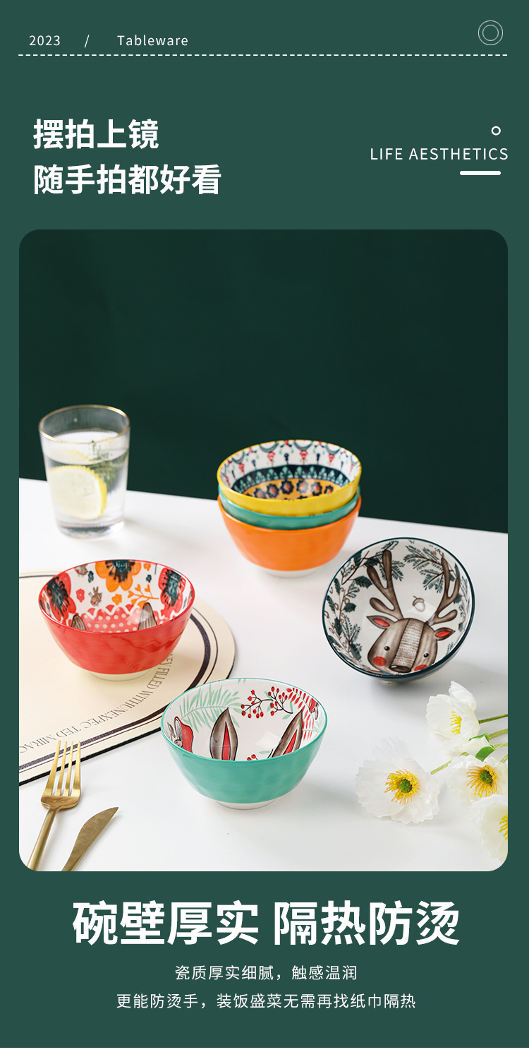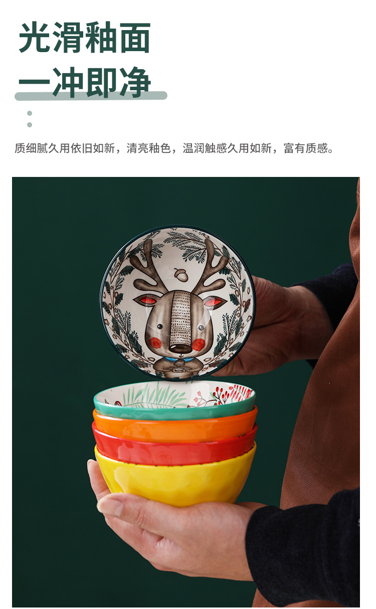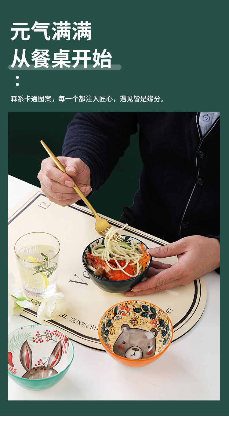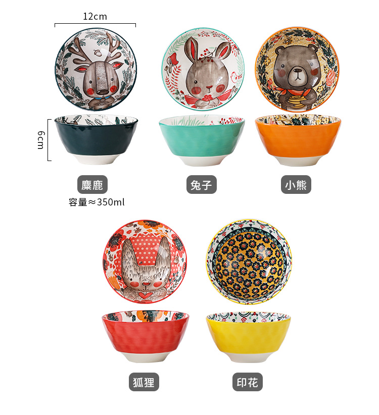 Tazón de Cerámica con Diseño de Animales del Bosque, 4.75 Pulgadas, con Patrón de Piedra, Lindo Tazón para Arroz, Vajilla para el Hogar, Tazón Pequeño, Adorable Conejo de Orejas Largas.