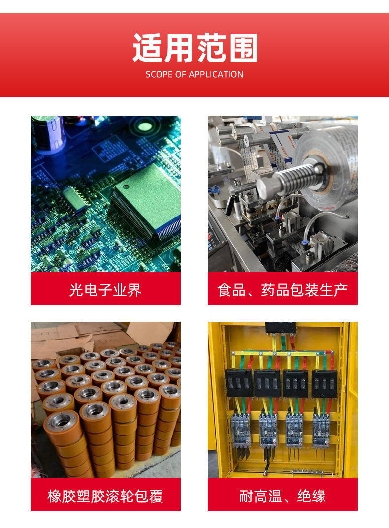 | Ámbito de aplicación | F Máquina de sellado, revestimiento de rodillos, embalaje de plástico, separación de moldes y aislamiento térmico |