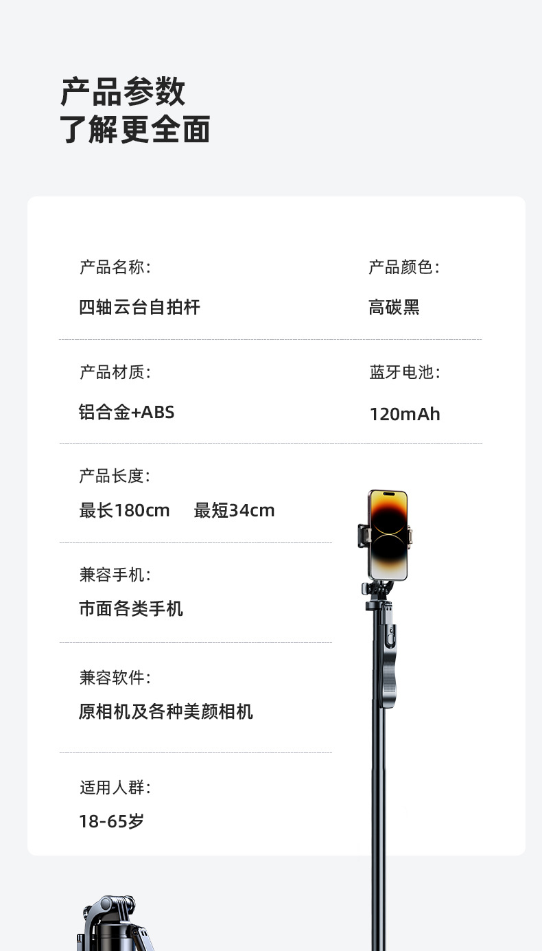 | Colores | 1.8 m [antivibración de cuatro ejes] Bolsa de almacenamiento de control remoto Bluetooth gratis,1.8 m [modelo Douyin anti-vibración de cuatro ejes] Bolsa de almacenamiento de control remoto Douyin universal gratis,1.8 m [modelo de belleza anti-vibración de cuatro ejes] Bolsa de almacenamiento de control remoto Bluetooth con luz de belleza gratuita,1.8 m [modelo Douyin de belleza anti-vibración de cuatro ejes] Bolsa de almacenamiento de control remoto Douyin con luz de belleza gratuita,1.8 m [modelo de transmisión en vivo anti-vibración de cuatro ejes] Bolsa de almacenamiento de luz de relleno muscular de transmisión en vivo con control remoto Bluetooth gratis,1.8 m [modelo Douyin en vivo anti-vibración de cuatro ejes] Bolsa de almacenamiento de luz de relleno de transmisión en vivo con control remoto Douyin,2,2 m [antivibración de aleación de cuatro ejes] Bolsa de almacenamiento de control remoto de carga universal gratuita,2,2 m [antivibración de aleación de cuatro ejes] Bolsa de almacenamiento de luz de belleza de control remoto de carga universal gratuita,2,2 m [antivibración de aleación de cuatro ejes] Bolsa de almacenamiento de luz de piel en vivo con control remoto de carga universal |