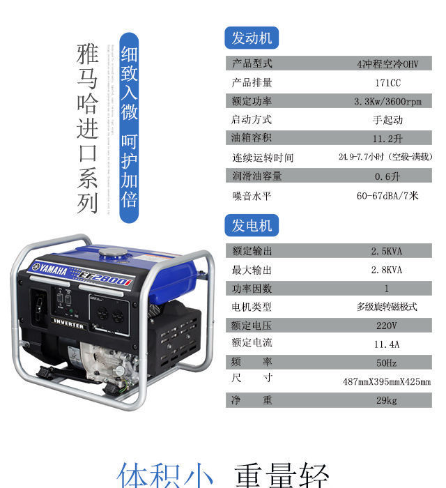 Original importado Yamaha YAMAHA generador de gasolina EF2800i, conversión de frecuencia silenciosa, cantidad