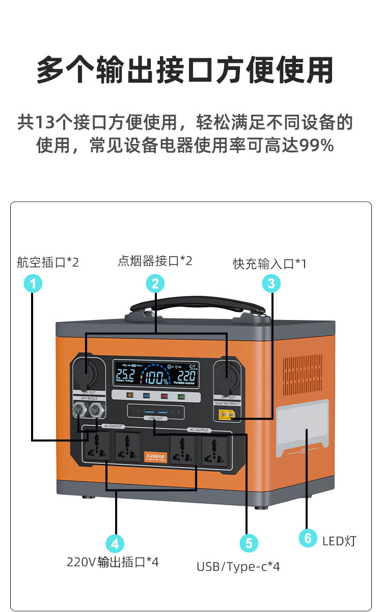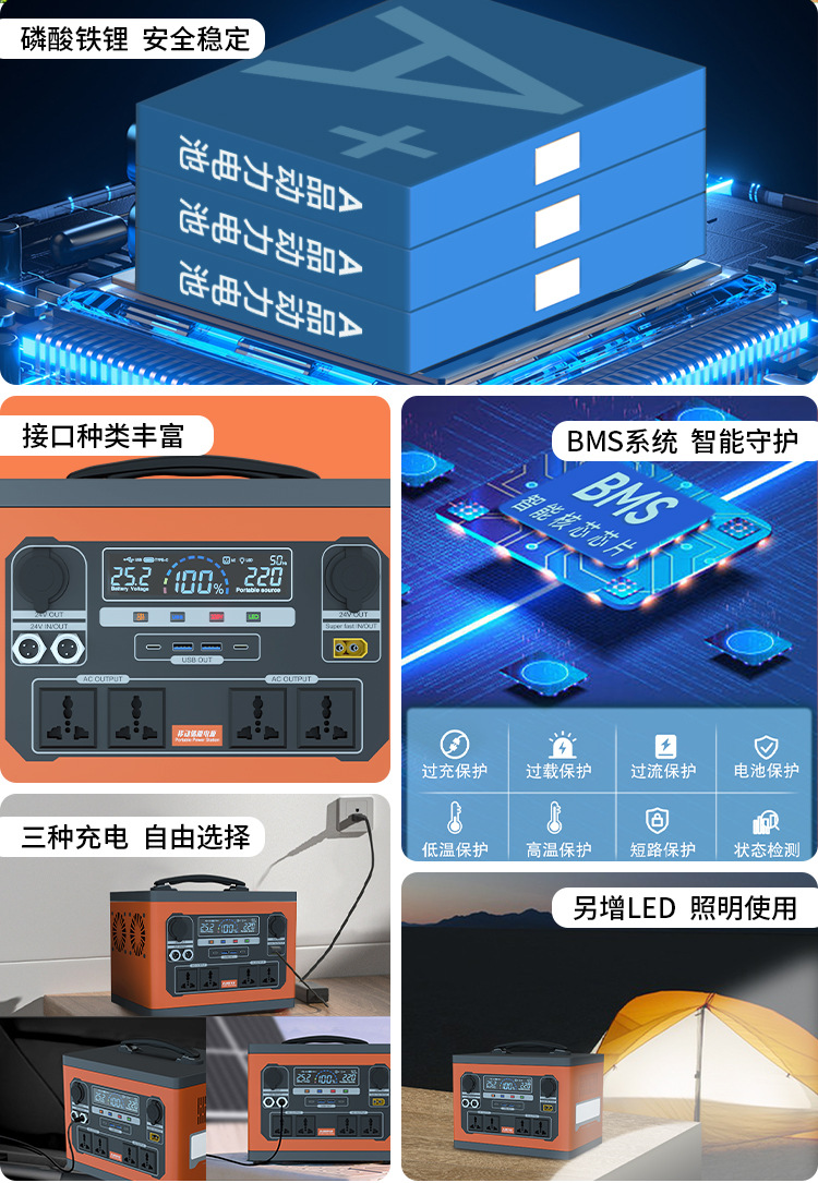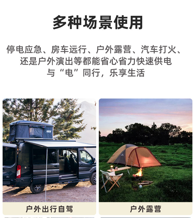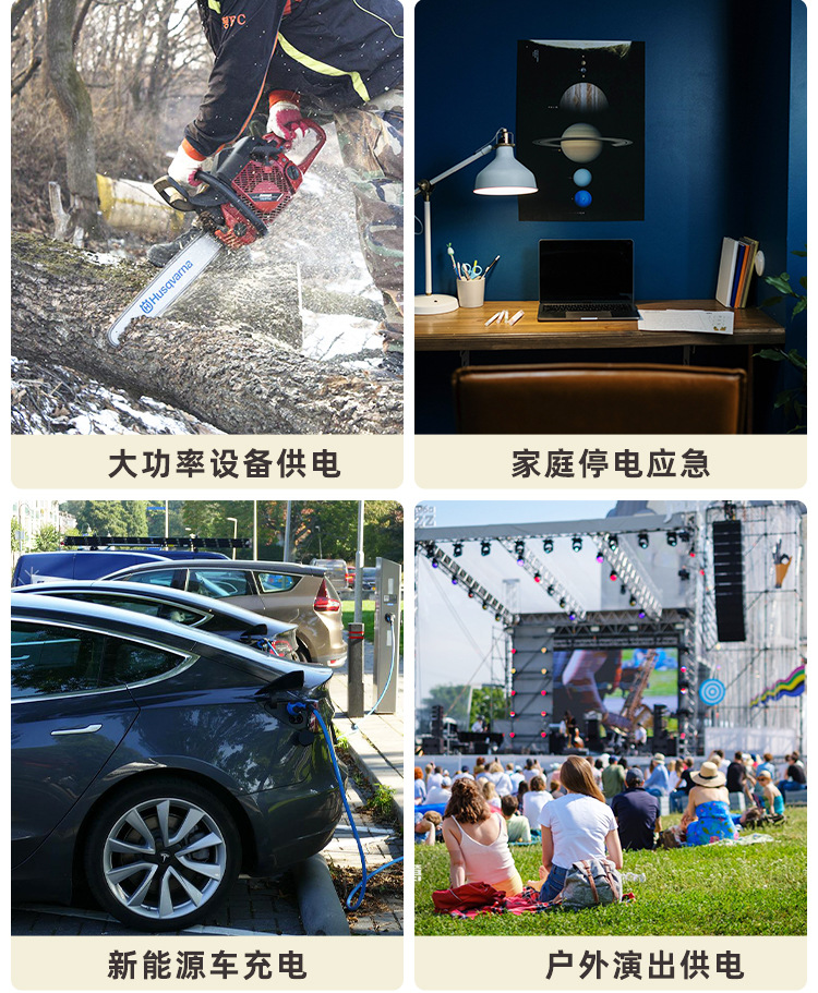 | Ámbito de aplicación | Camping al aire libre, tour sin conductor, puesto de pesca en vivo, carga de teléfono móvil, coche de oficina, cocina, almacenamiento de energía familiar, respaldo de emergencia, etc. |