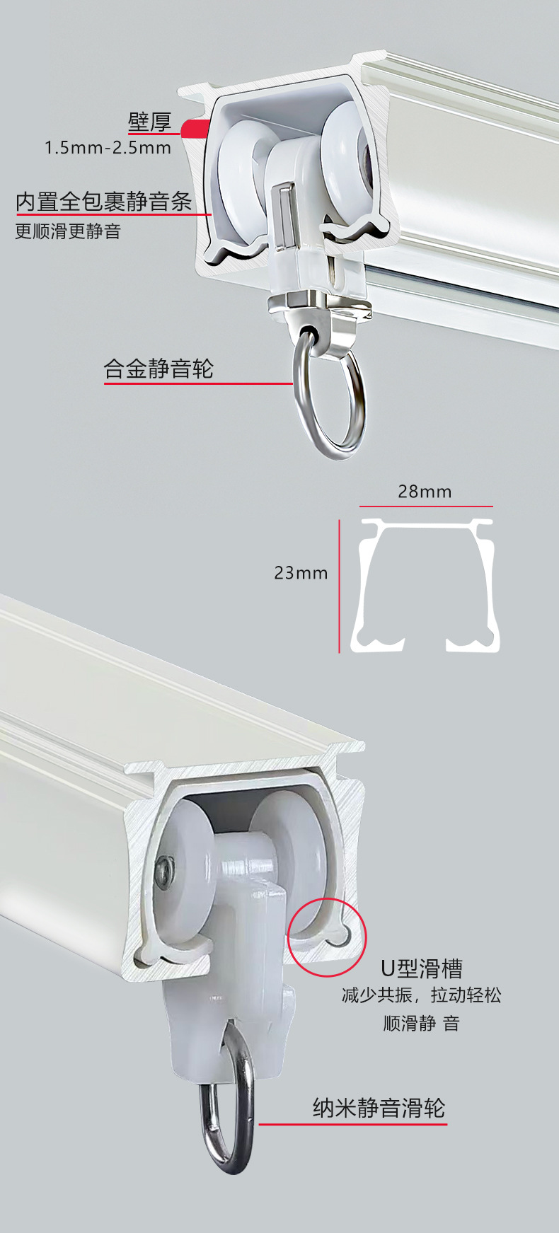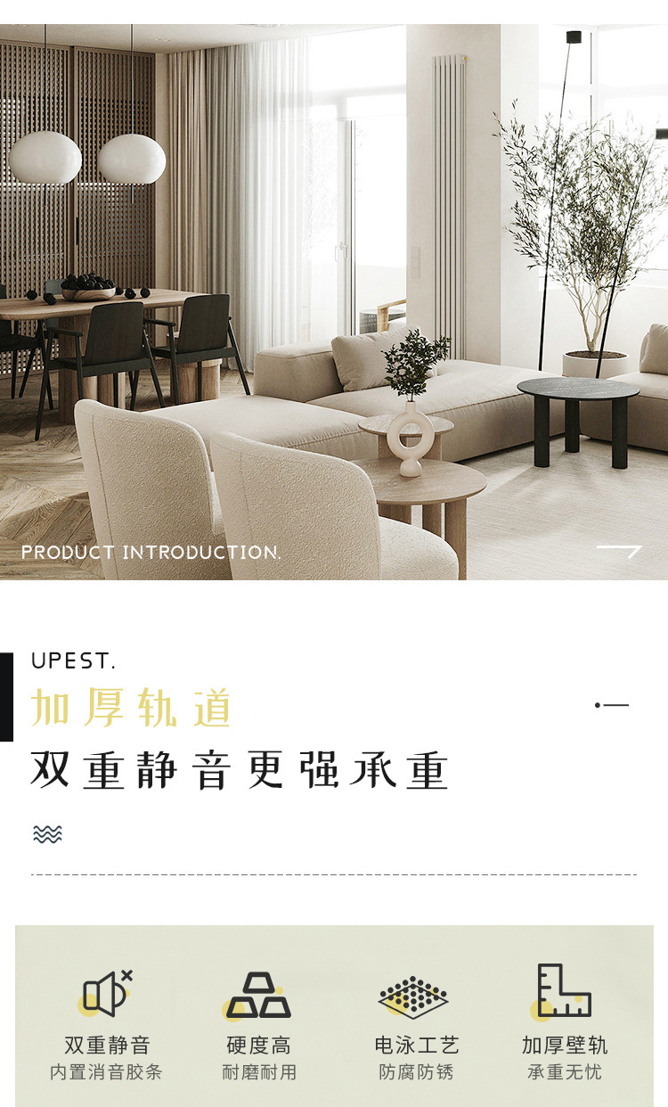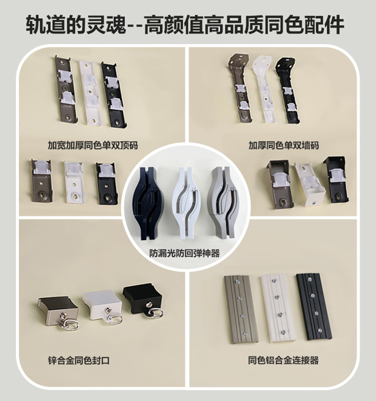 | Colores | Nano rueda blanco marfil,Nano rueda de oro champán,Nano rueda negra de moda,Rueda silenciosa de aleación blanca marfil,Rueda silenciosa de aleación de oro champán,Rueda silenciosa de aleación negra de moda,2 curvas de 90 grados (dedicado, tenga en cuenta el color),2 artefactos a prueba de fugas cruzadas (dedicado, tenga en cuenta el color) |