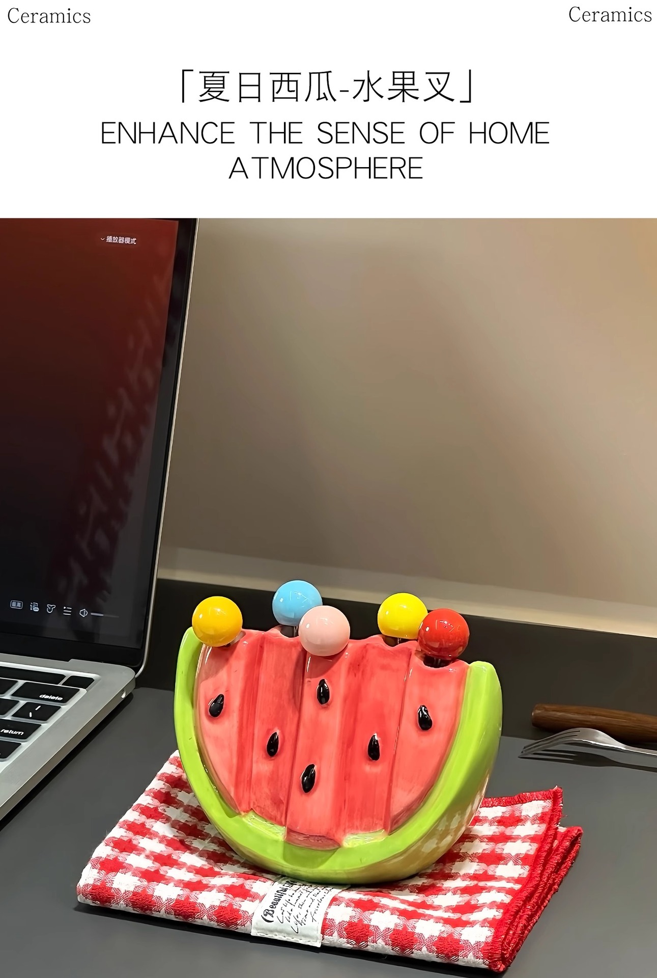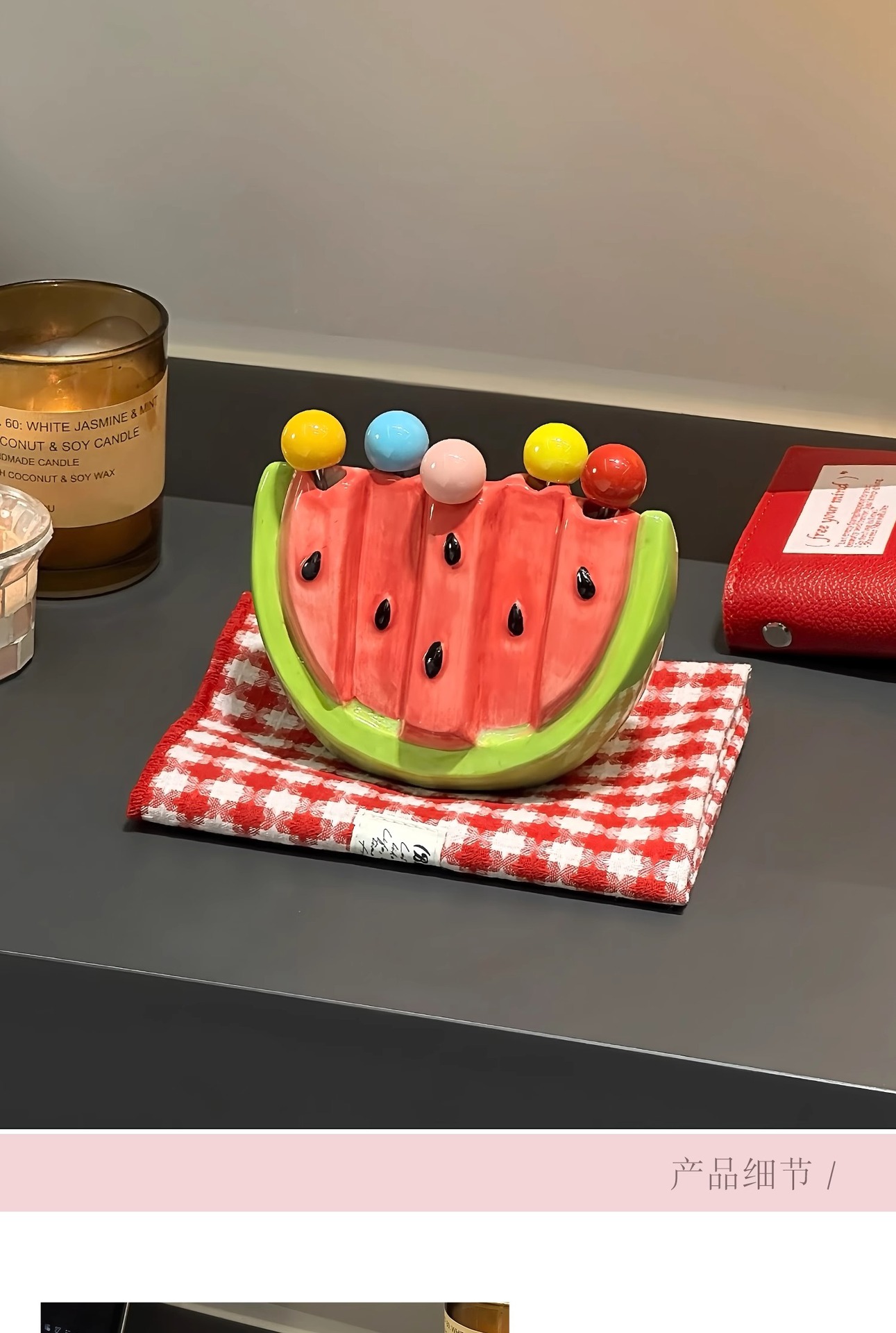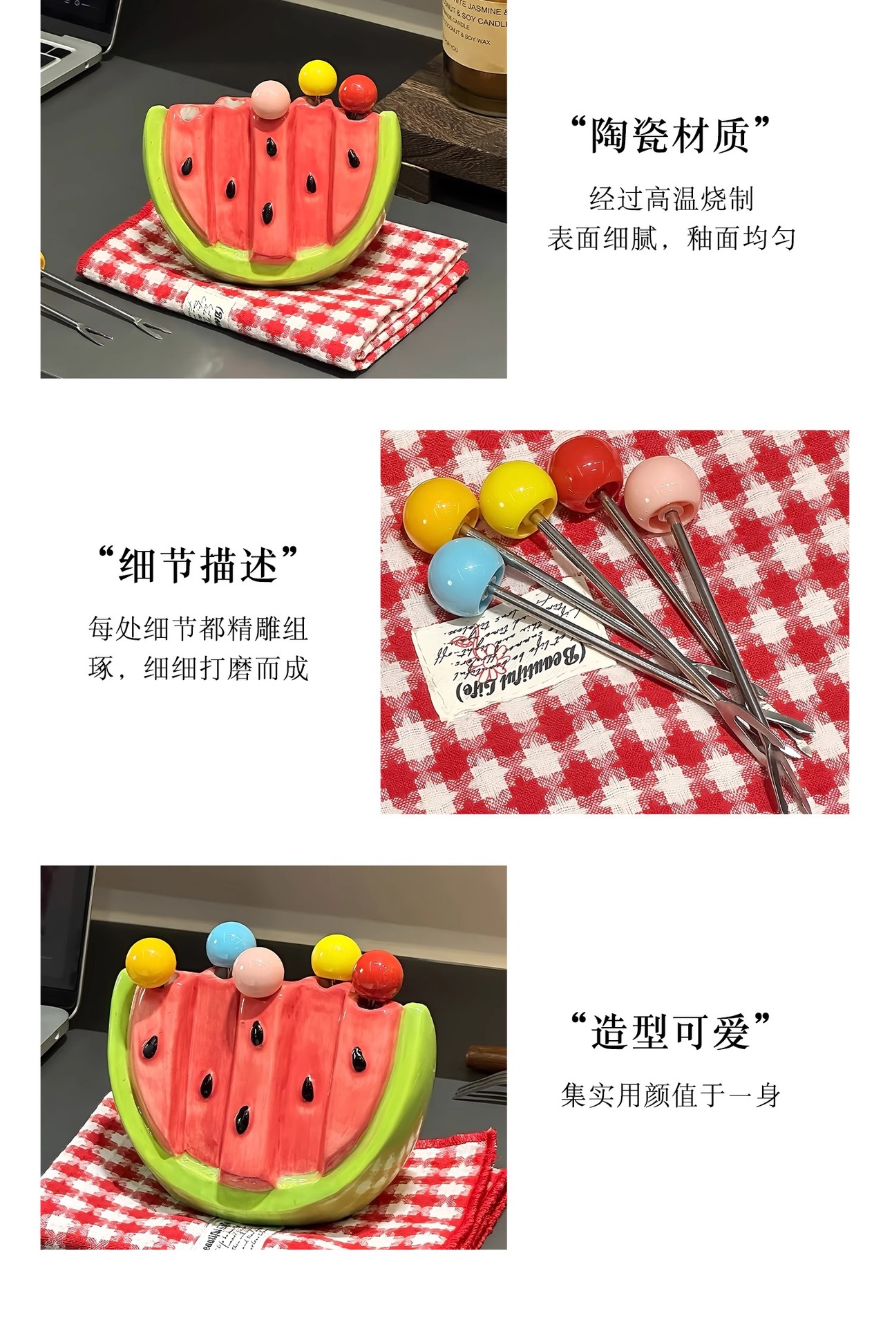 | Especificaciones | Tarro de tenedor de fruta de sandía de verano con 5 tenedores |