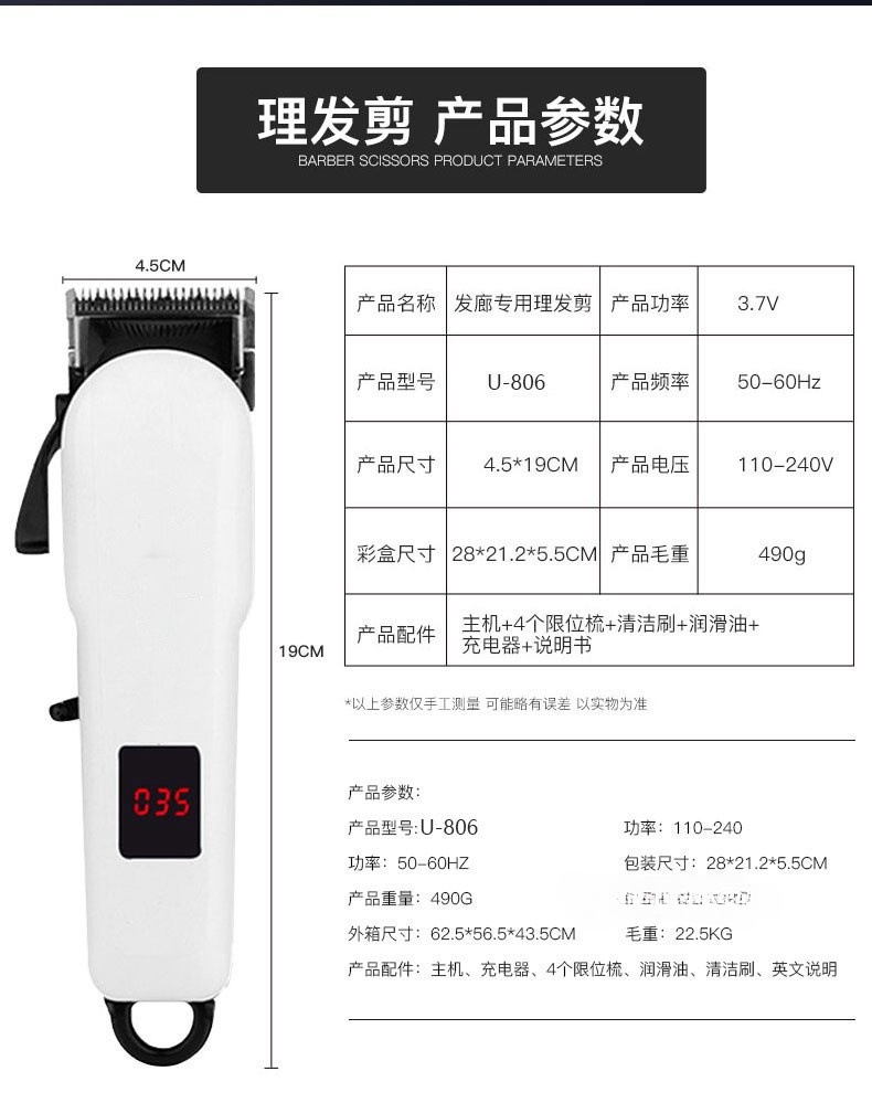 | Tamaño | Adaptador de corte eléctrico profesional 809A,809A profesional cortador eléctrico carga USB,618 cortapelos eléctricos carga USB,Cizalla eléctrica profesional de color degradado 809A Carga USB,Carga USB de cortapete eléctrico profesional 808 negro,Cizalla eléctrica profesional azul 808 carga USB,Gradiente púrpura 808 cortadoras eléctricas profesionales carga USB,Cortapelos con pantalla digital 825 dorado,Cortapelos con pantalla digital 825 plateado,Pantalla digital LCD de metal 812 |